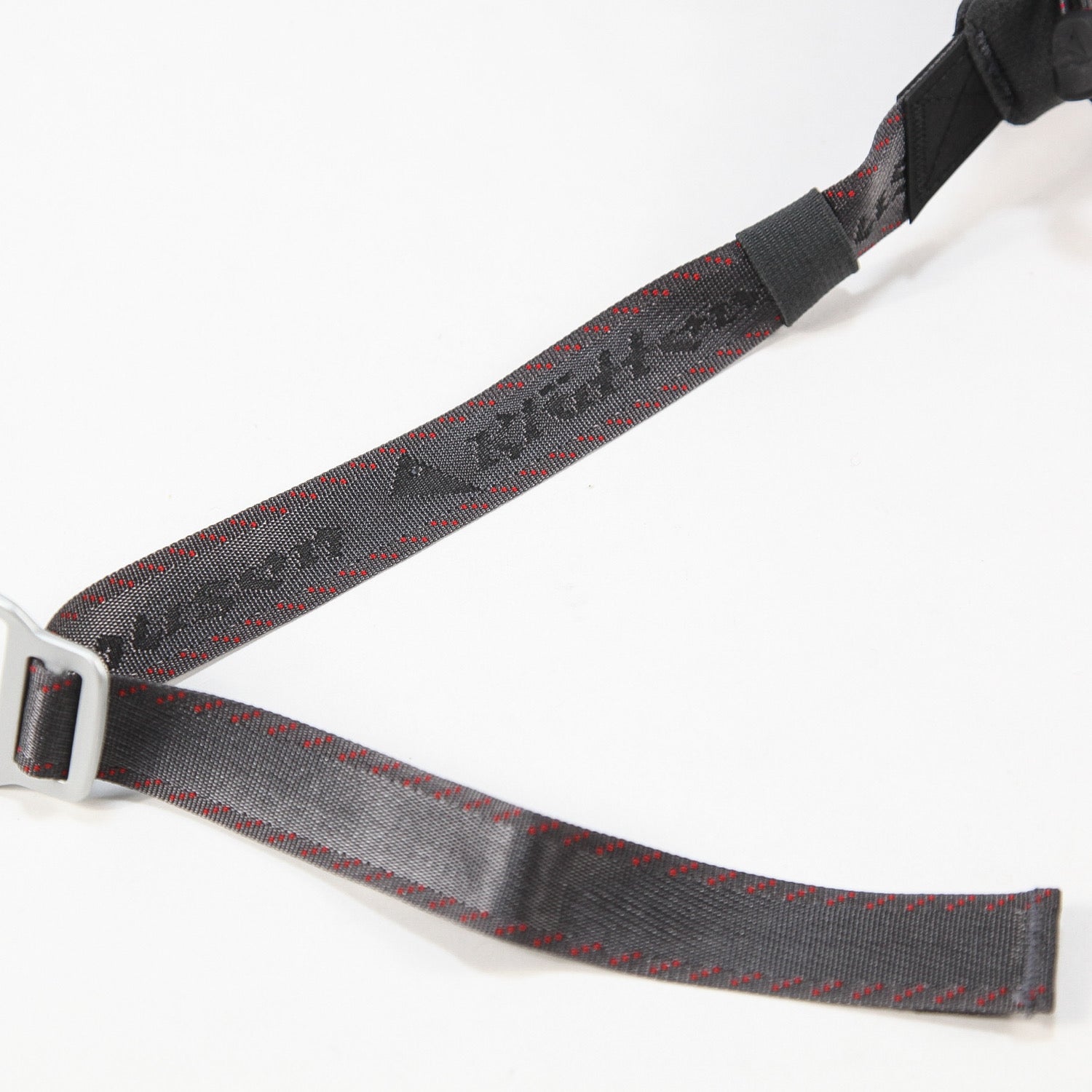 ストラップにはアルミ製のクイックリリースバックルが付属しており、ウェビングループを使って折り畳むことができます。