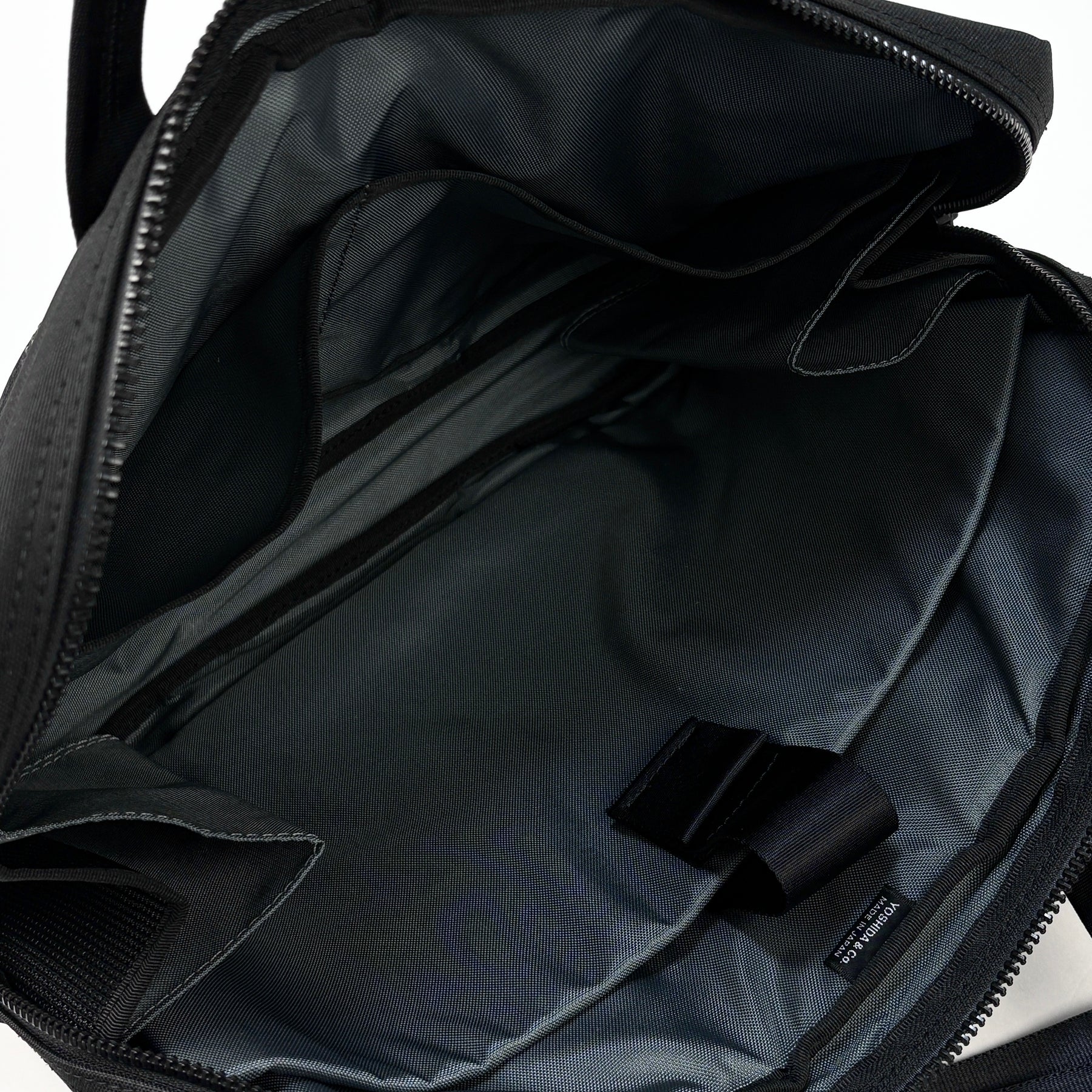 前面のファスナーポケットは内部にも様々な工夫が施された使い勝手の良い仕様で、メイン収納部内には仕切りポケット×2、PCポケットが備わっておりPCをカバーなしで持ち運ぶこともできます。