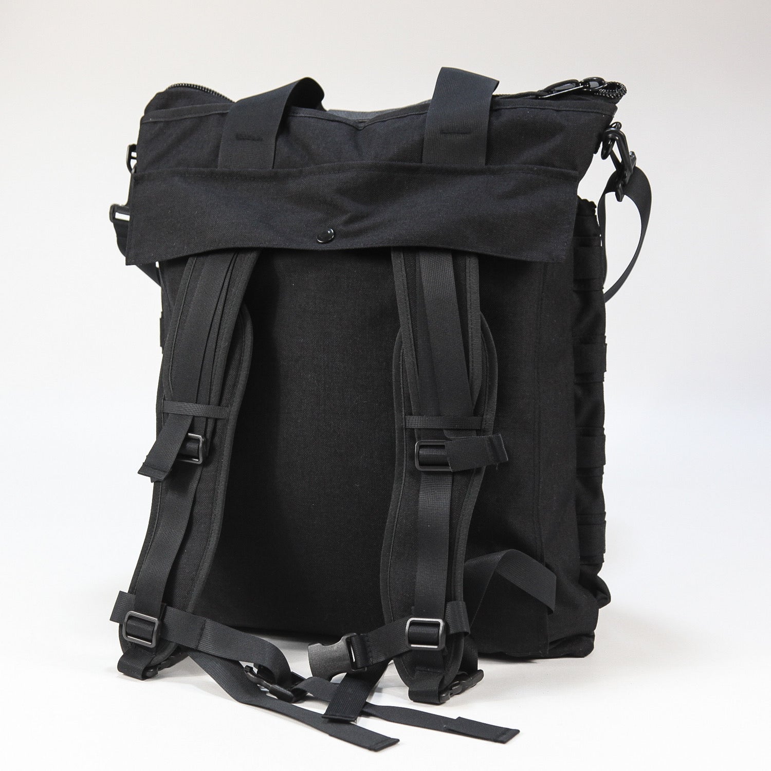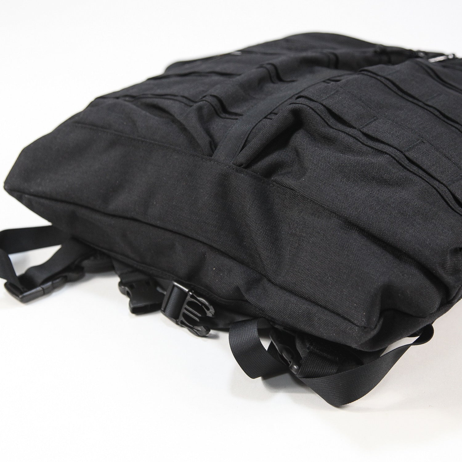 素材はCORDURAナイロンを使用し、フロント部分にはウェビングテープを施してミリタリー仕様に仕上げられています。
