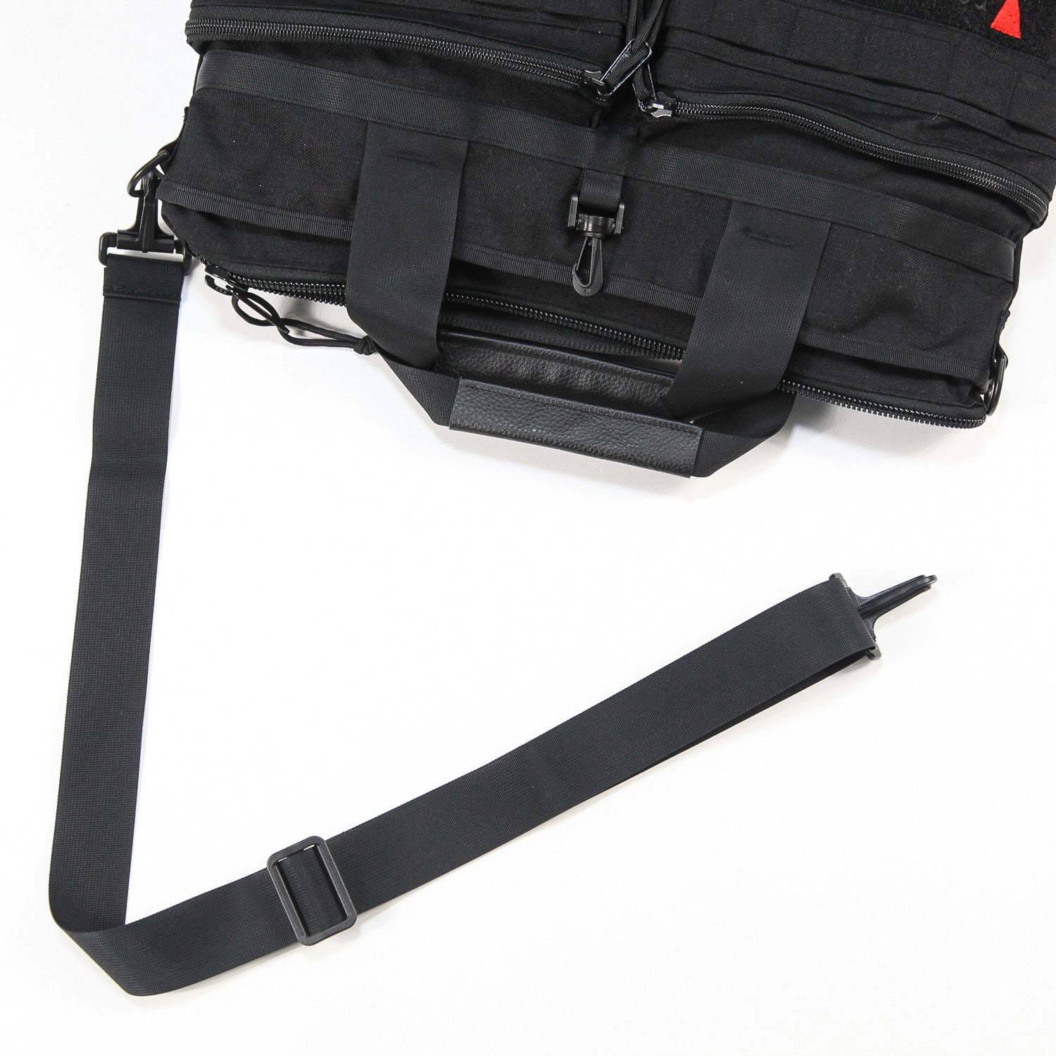 フロントにはredtriangleのロゴを刺繍したベルクロテープを配しており、10周年記念に相応しい仕上がりとなったスペシャルなバッグです。