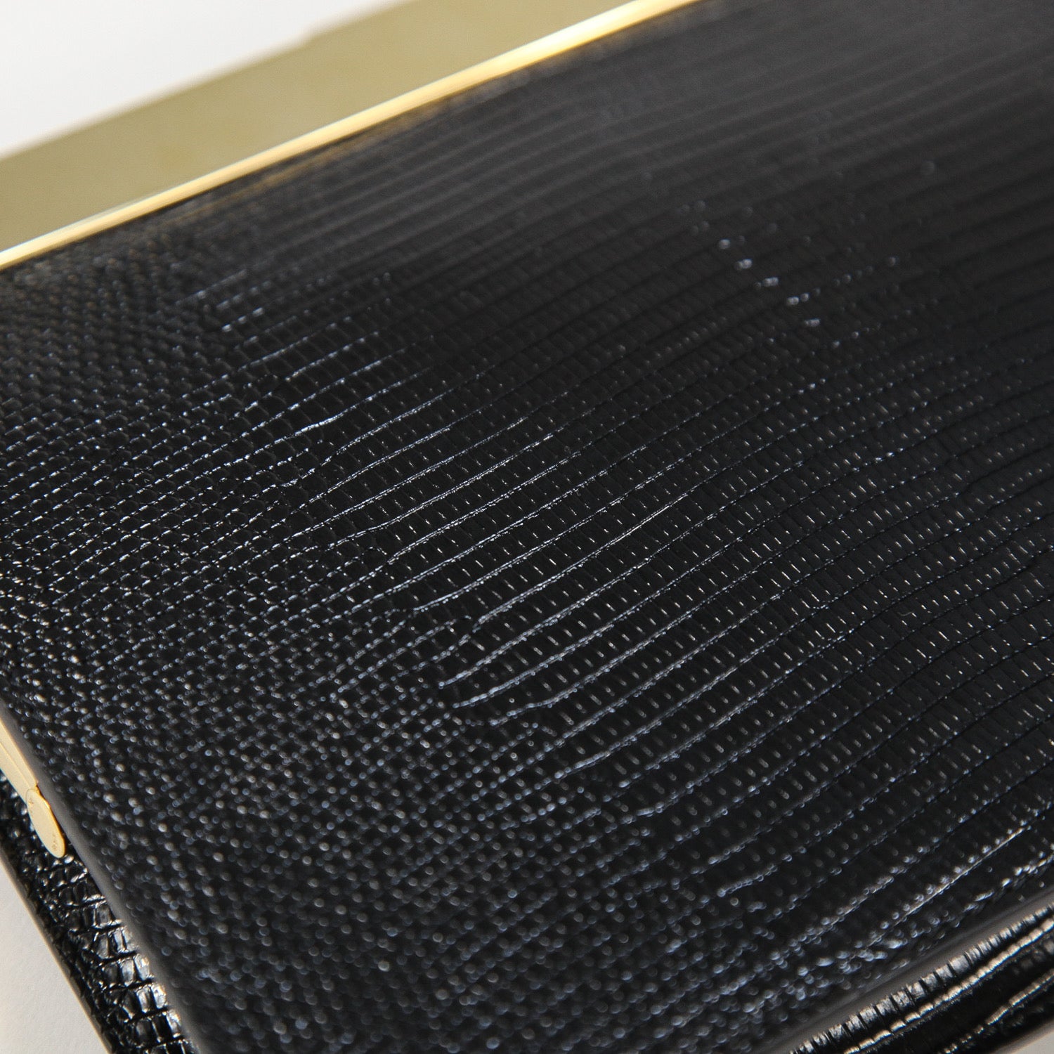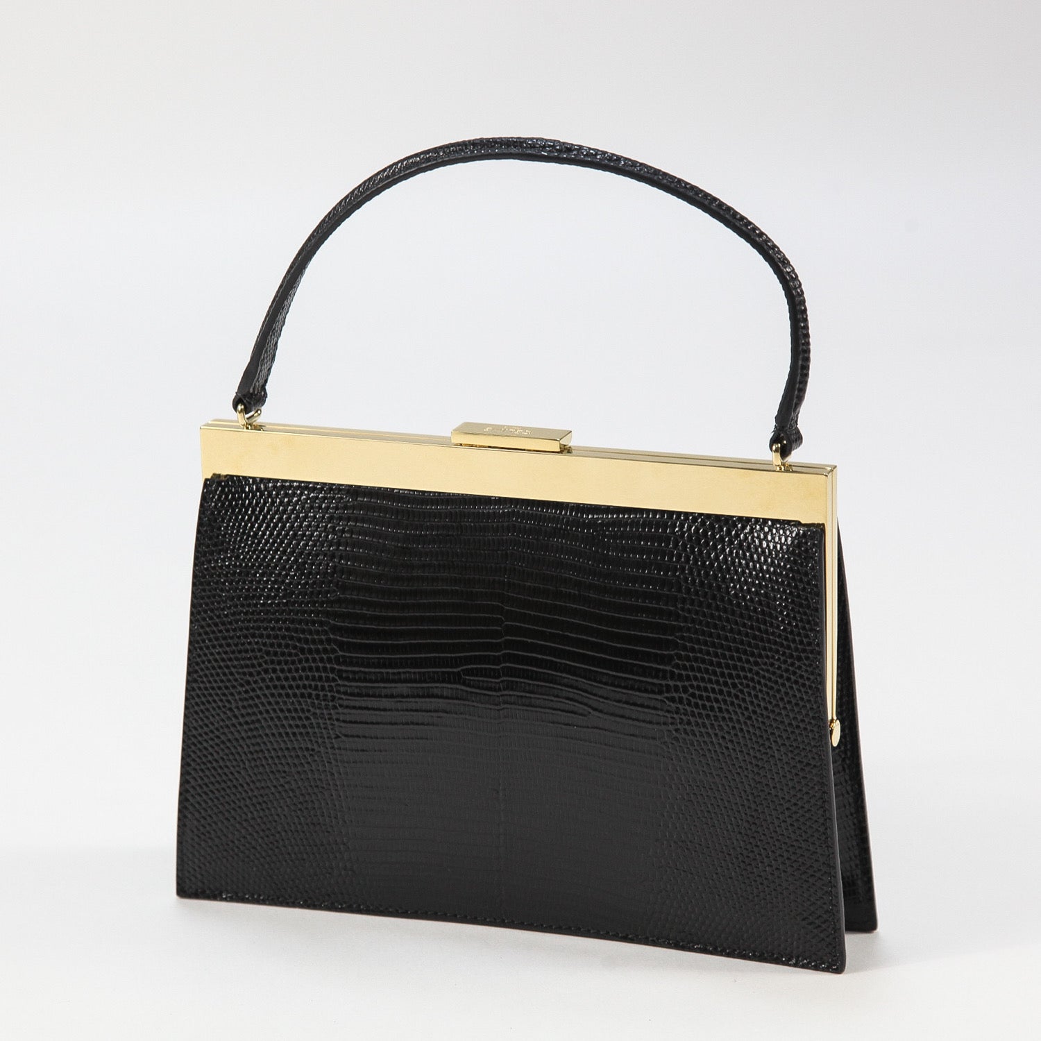 台形のフォルムにゴールドフィニッシュのパーツやクロージャーが良く映えるデザインで、高級感を漂わせる仕上がり。