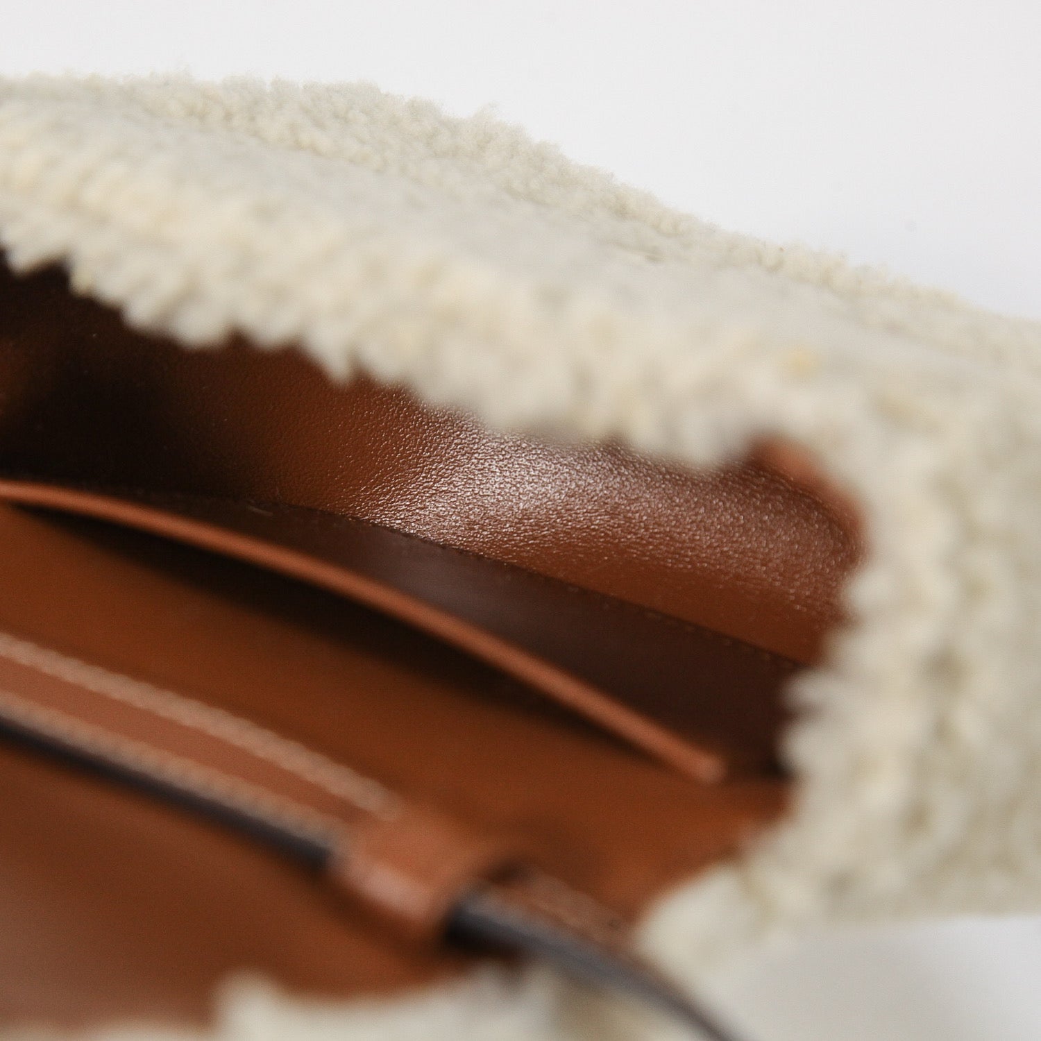 ボディ全体に上質なシアリングをまとわせることでレザーとの質感のコントラストが生まれ、”トリオンフ”がより印象的に映える仕上がり。