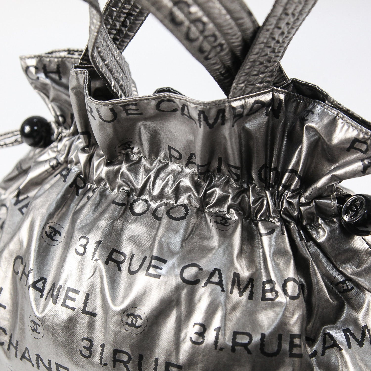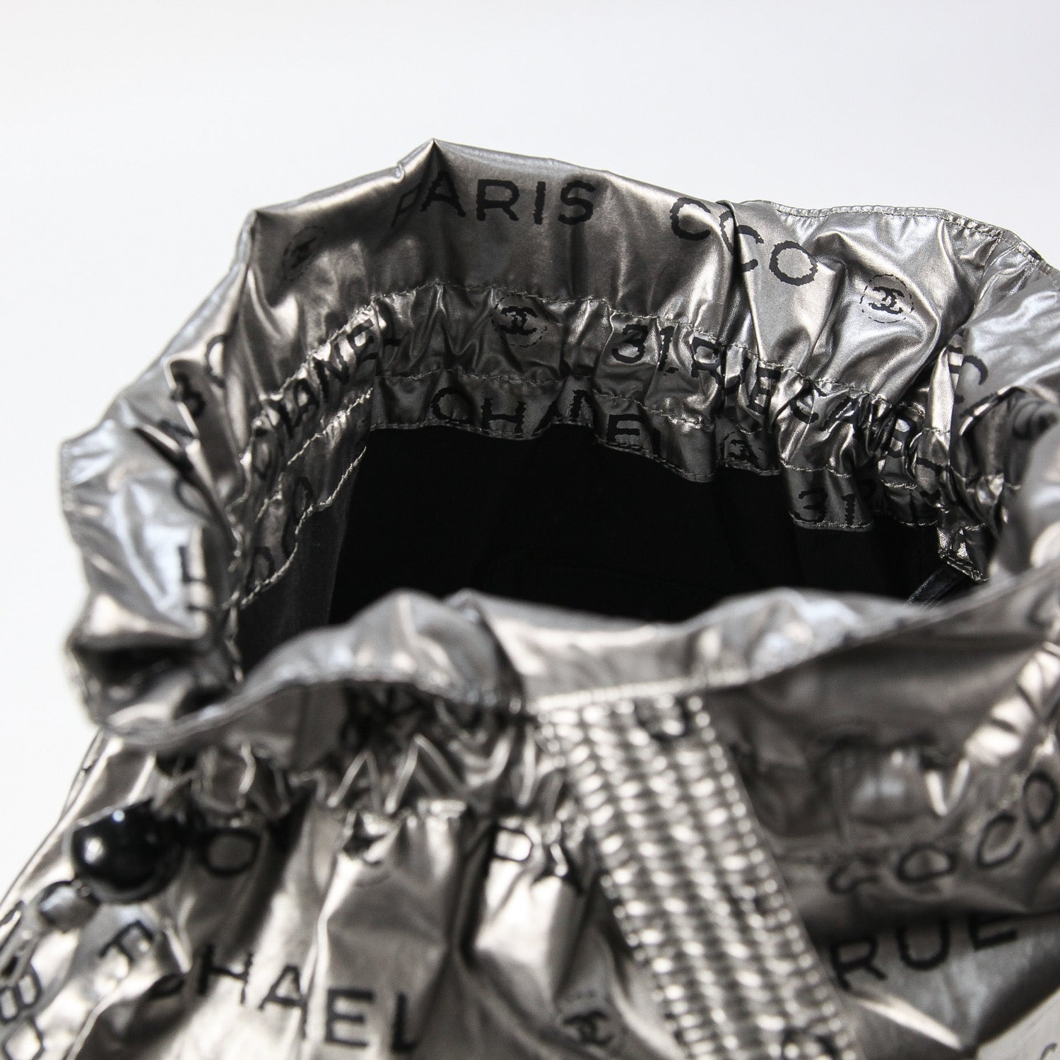全体にココマークやロゴ、文字などがプリントされたインパクトのあるデザインで、カジュアルさとラグジュアリーさを併せ持った仕上がり。