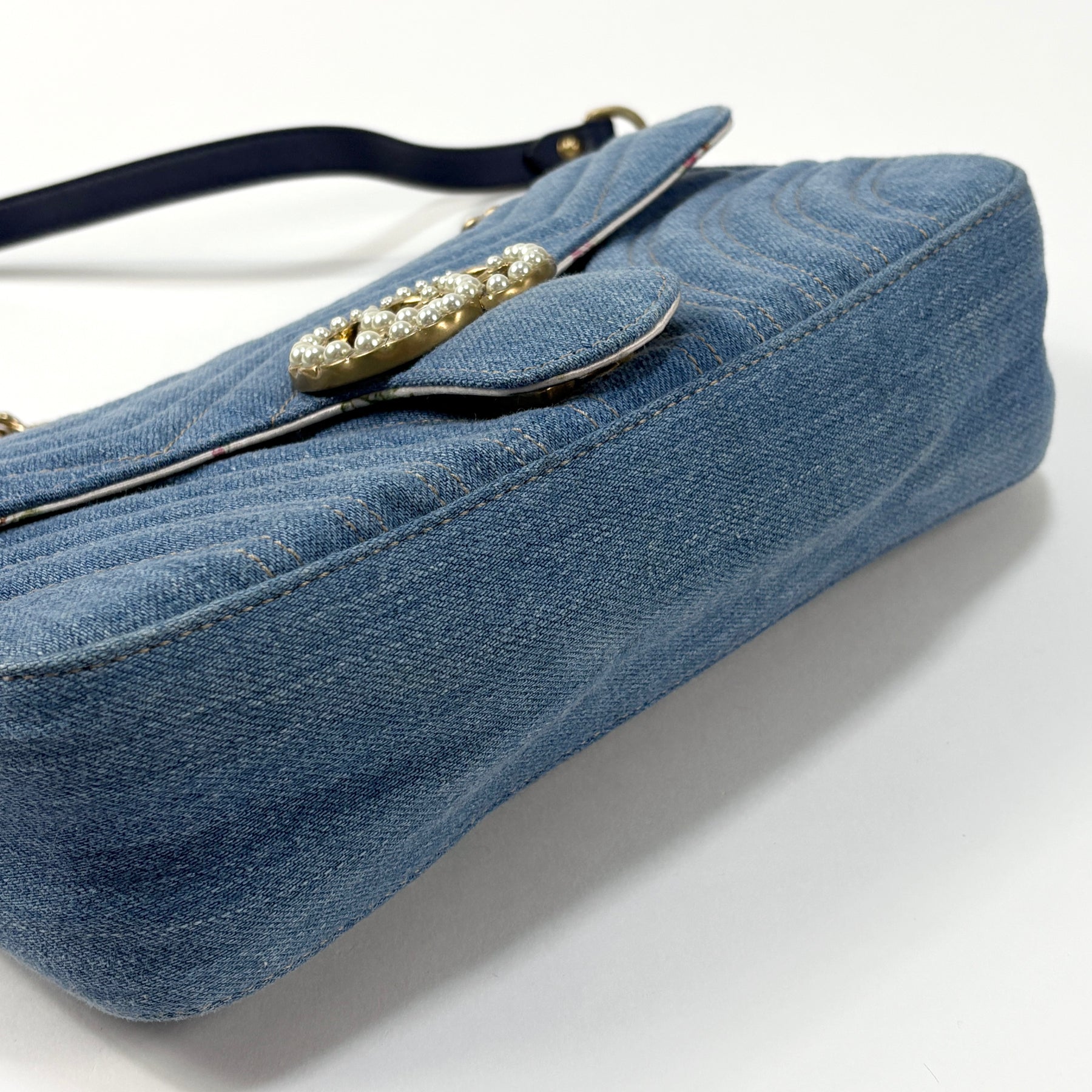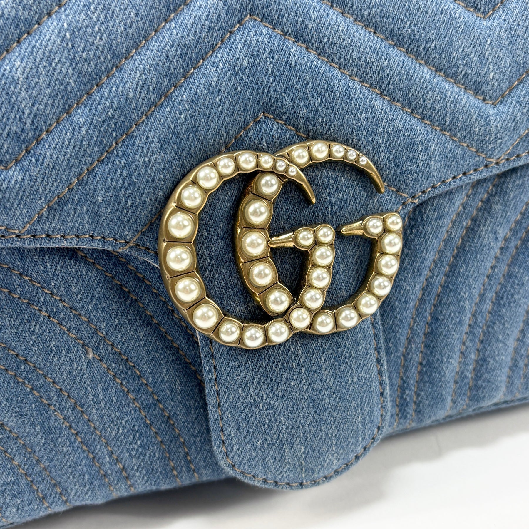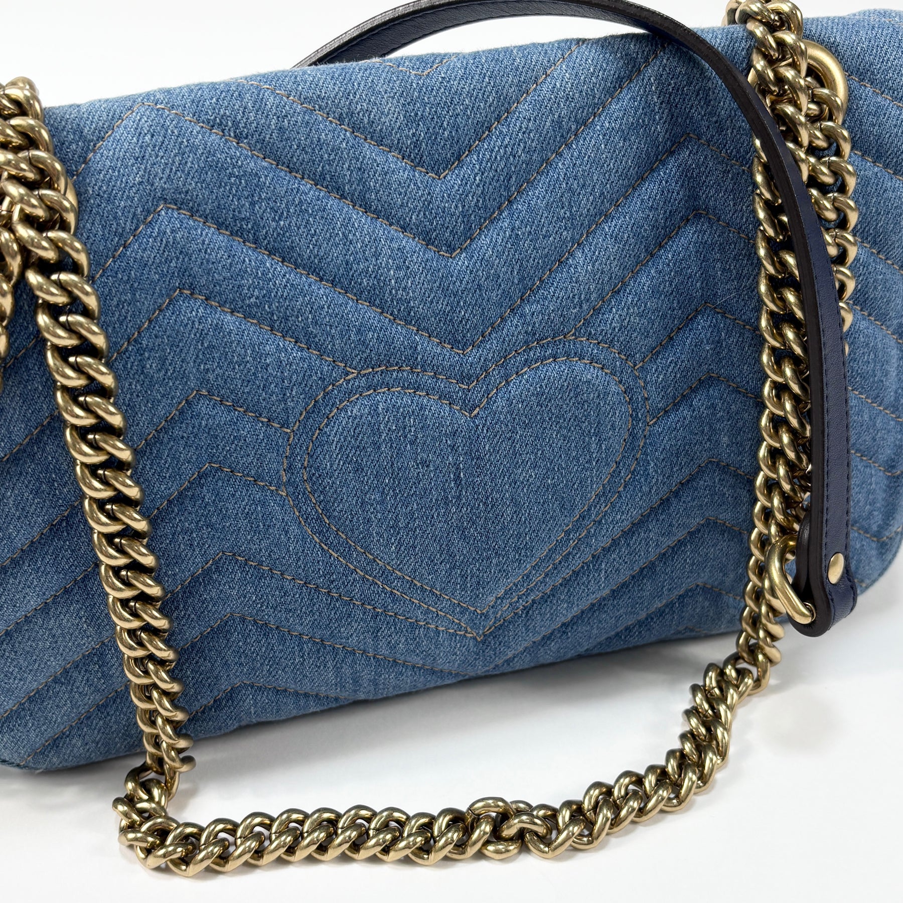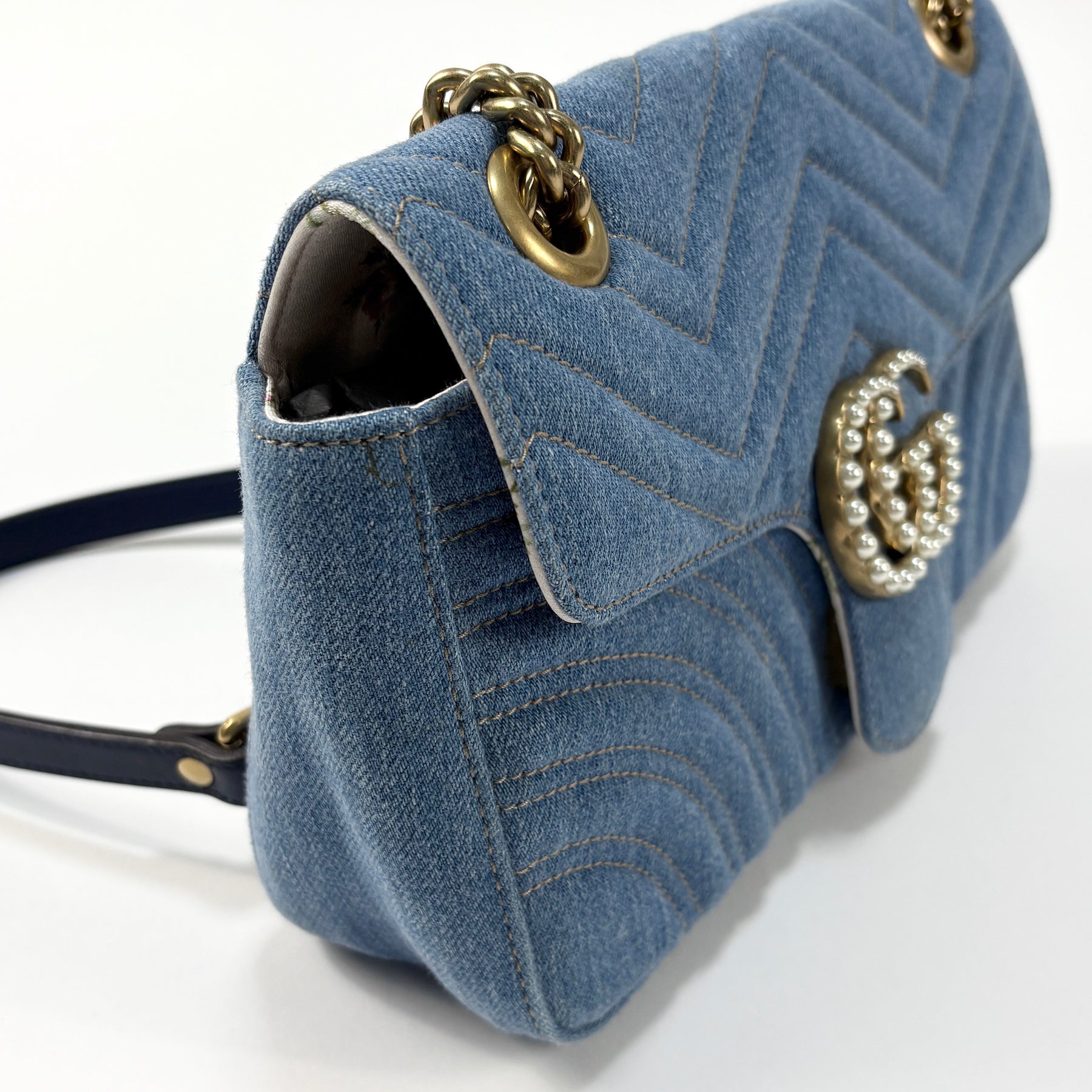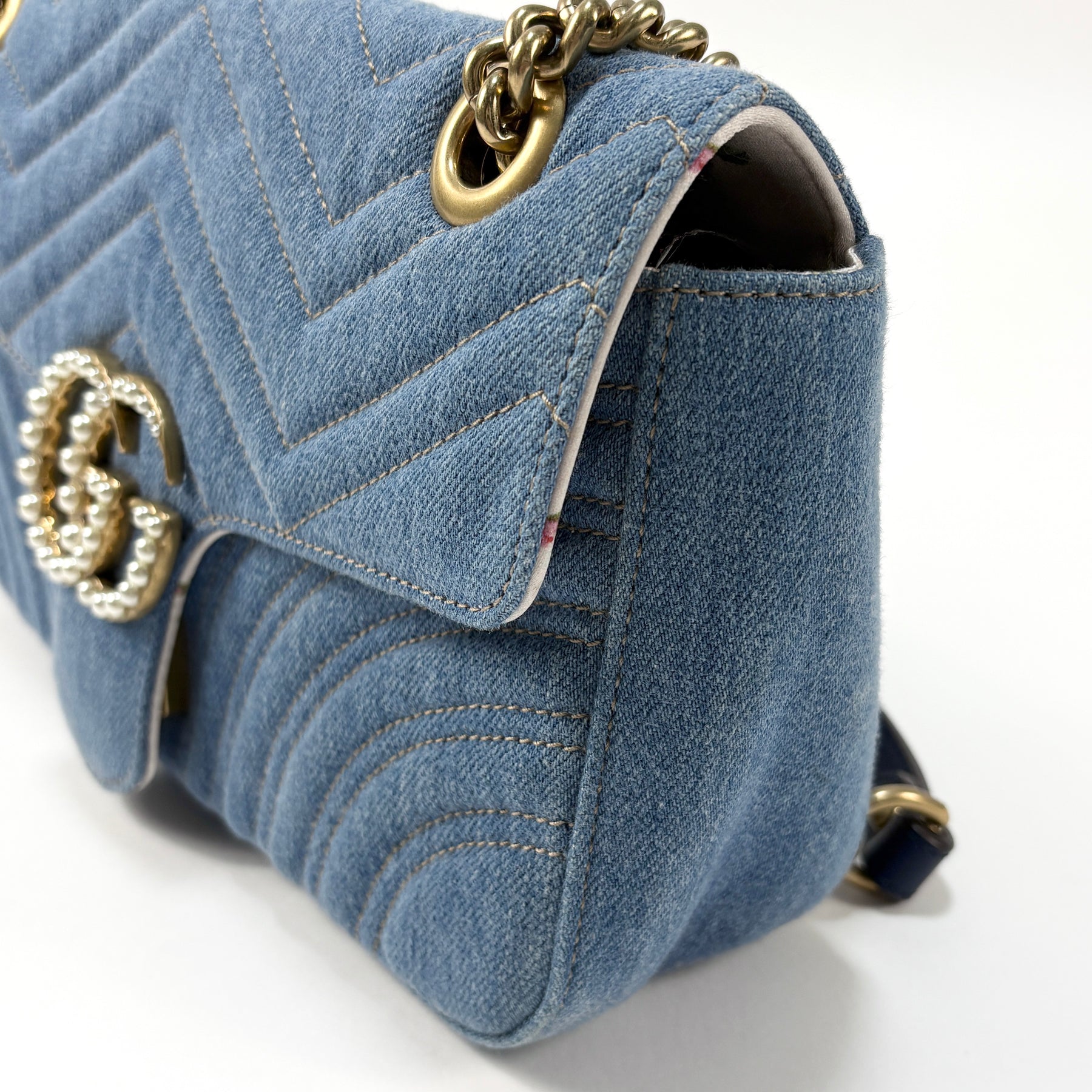 2017SS 日本限定 GGマーモント デニム チェーンショルダーバッグ スモール 443497 498879 / IO21747467
