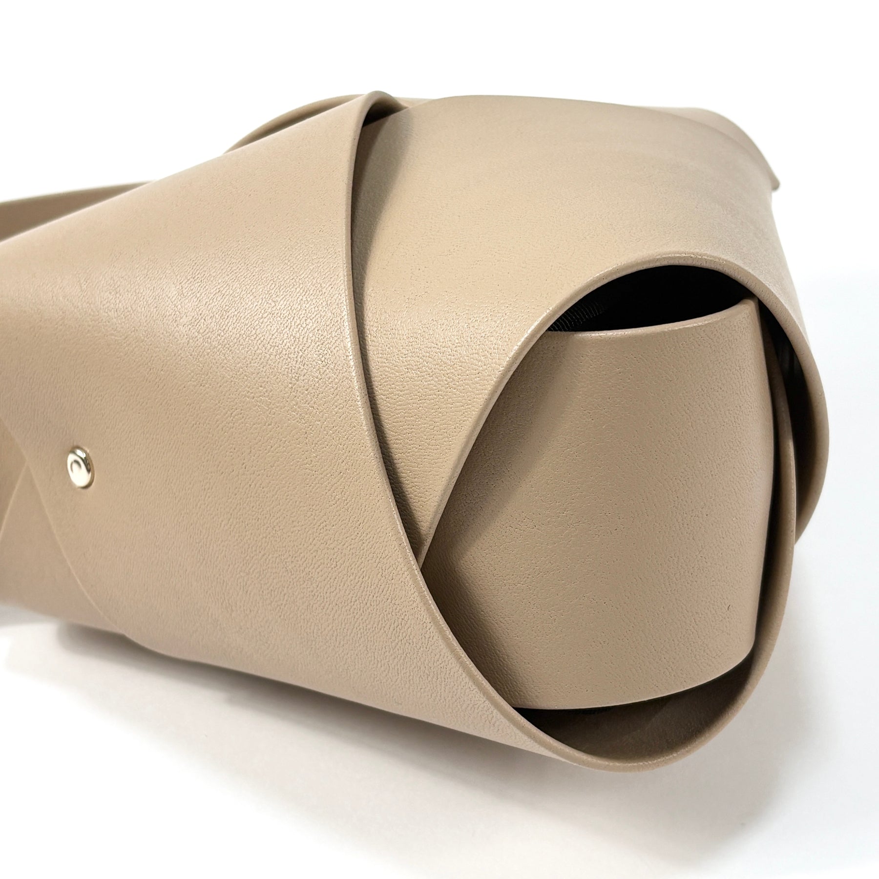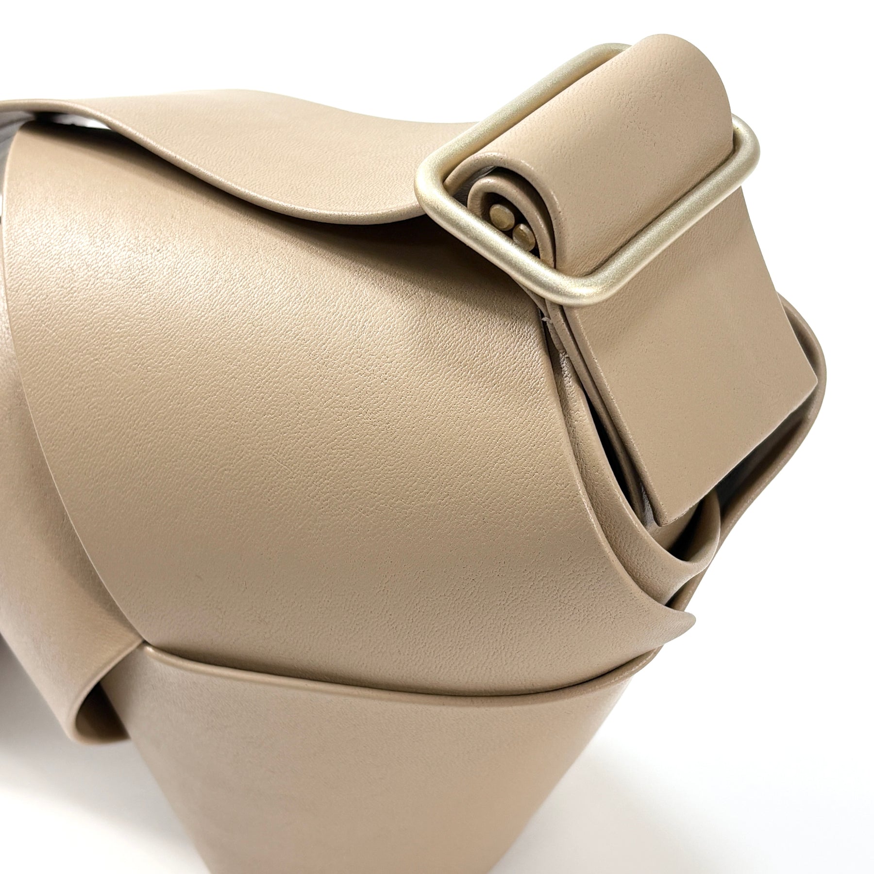 帯を組み合わせる事で生まれる、おむすびのようなシルエットが特徴のハンドバッグ。