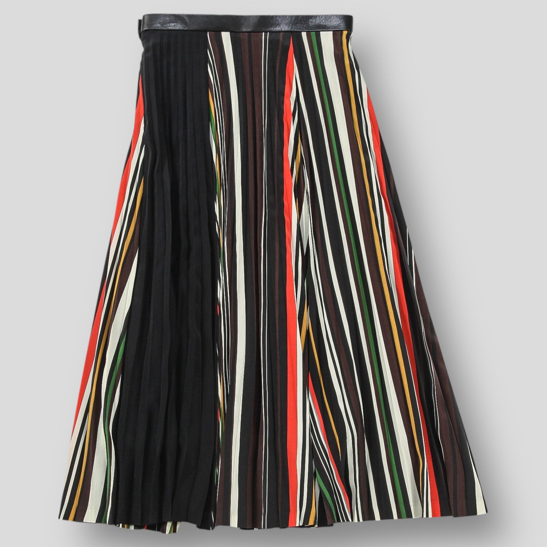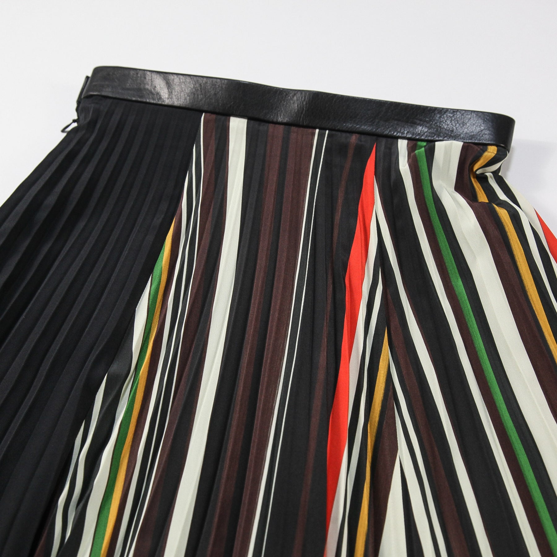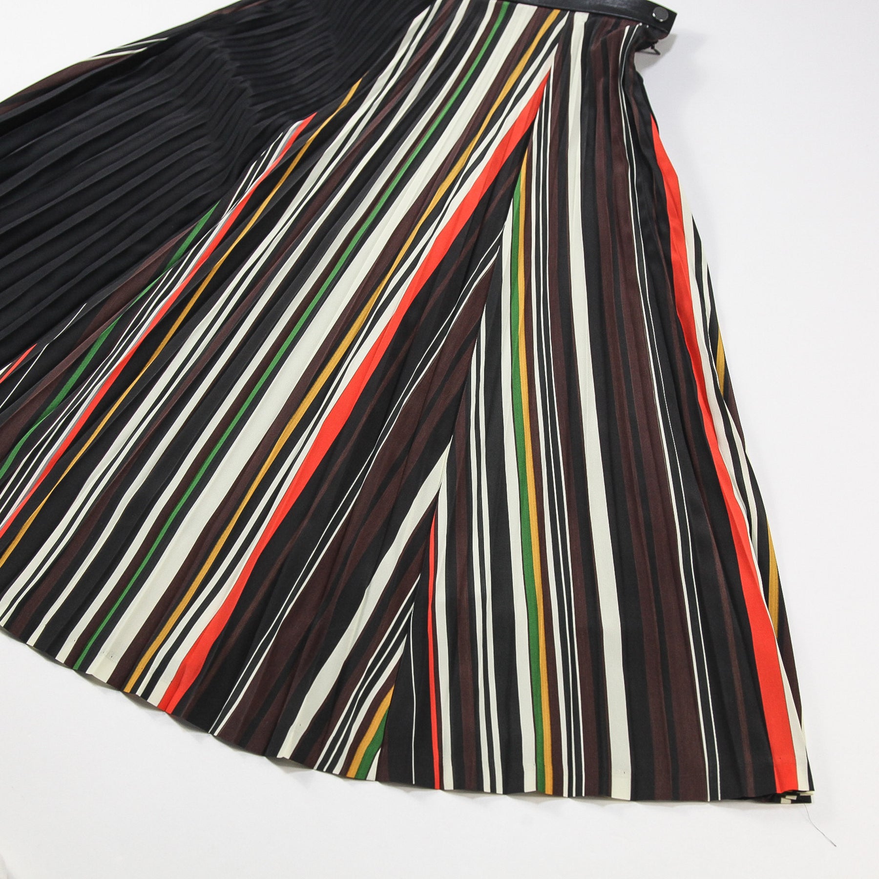 マルチカラーが映える、ボーダー柄のプリーツスカート。