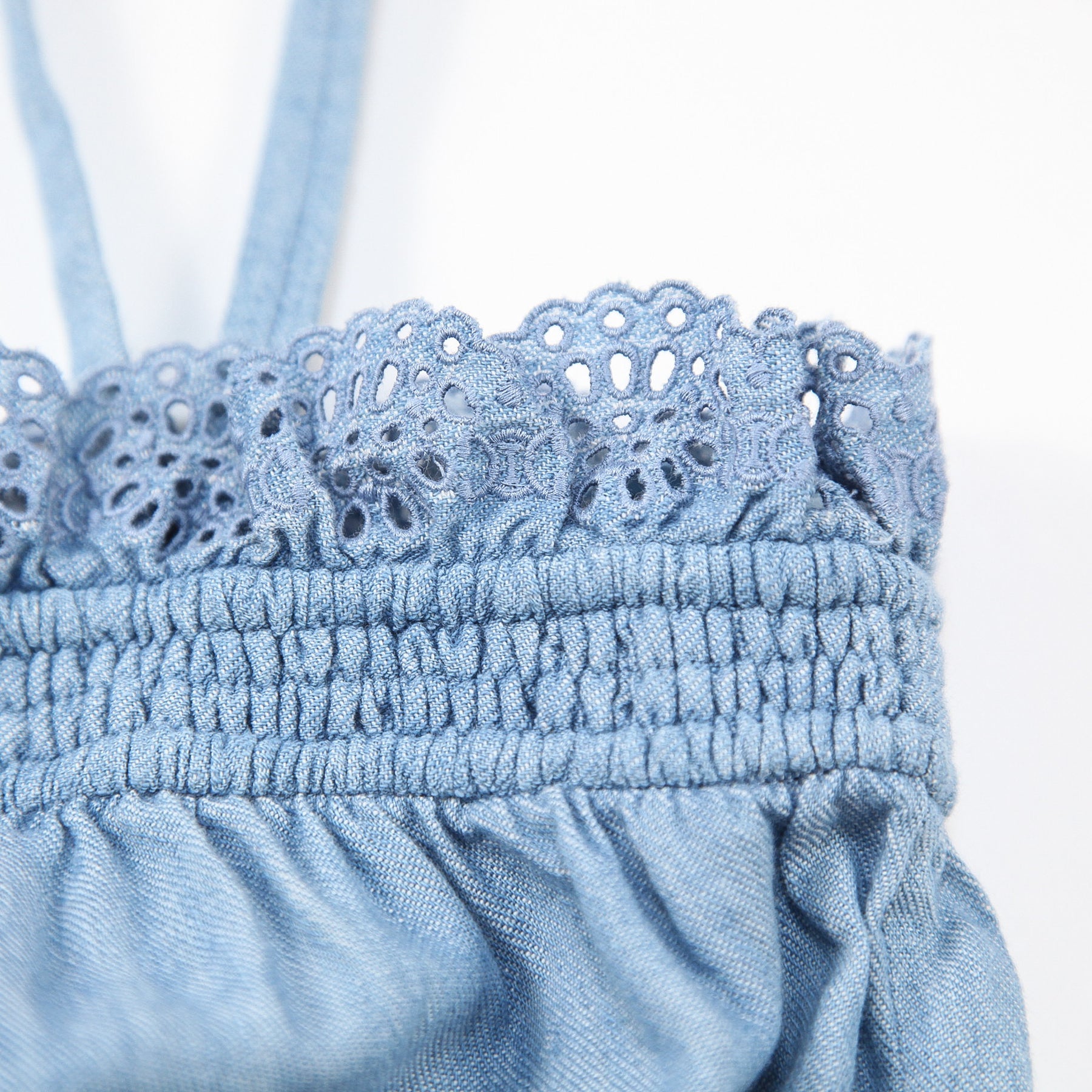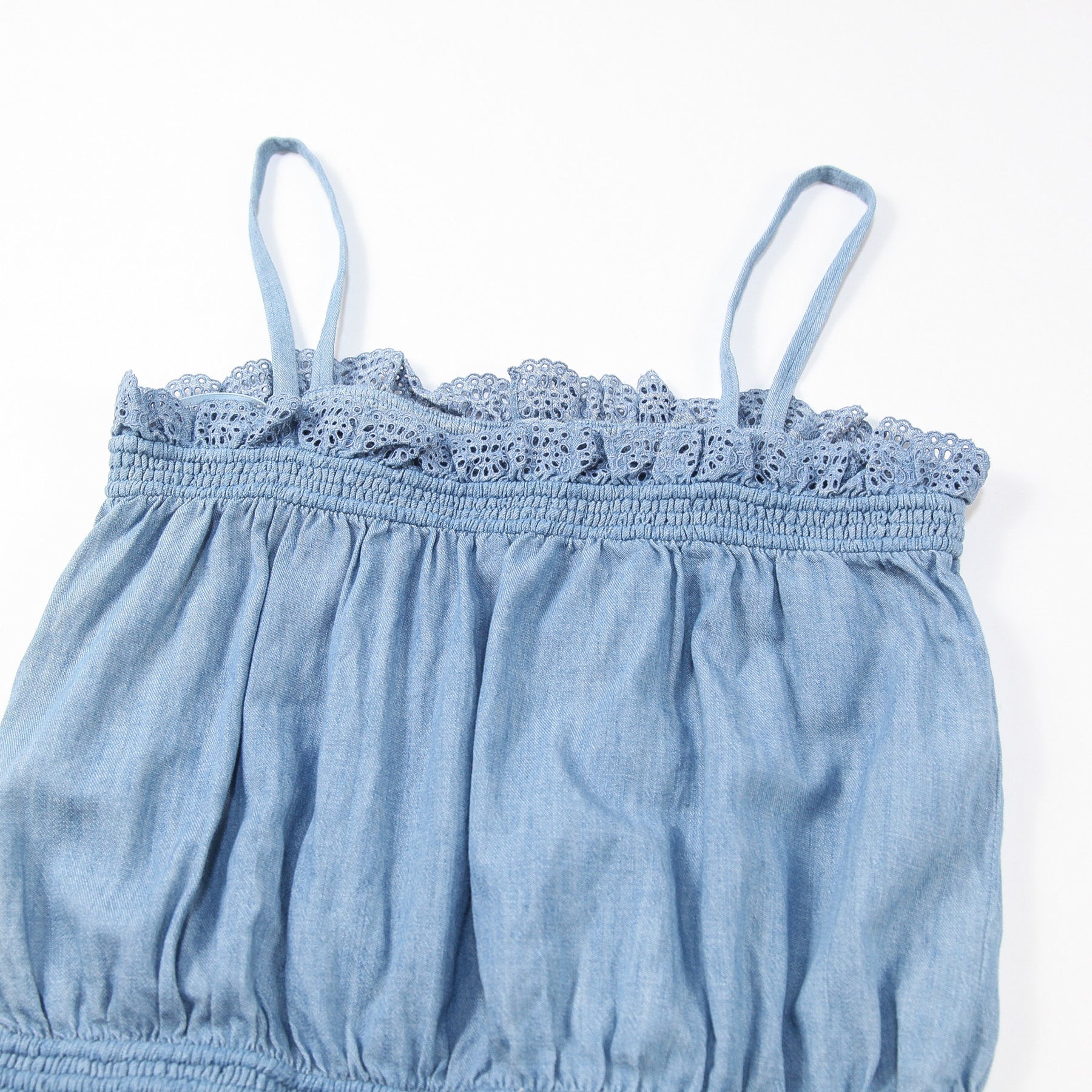 胸元のトップにはレースをあしらい、ウエストはゴムと調整のドローストリングが付きます。