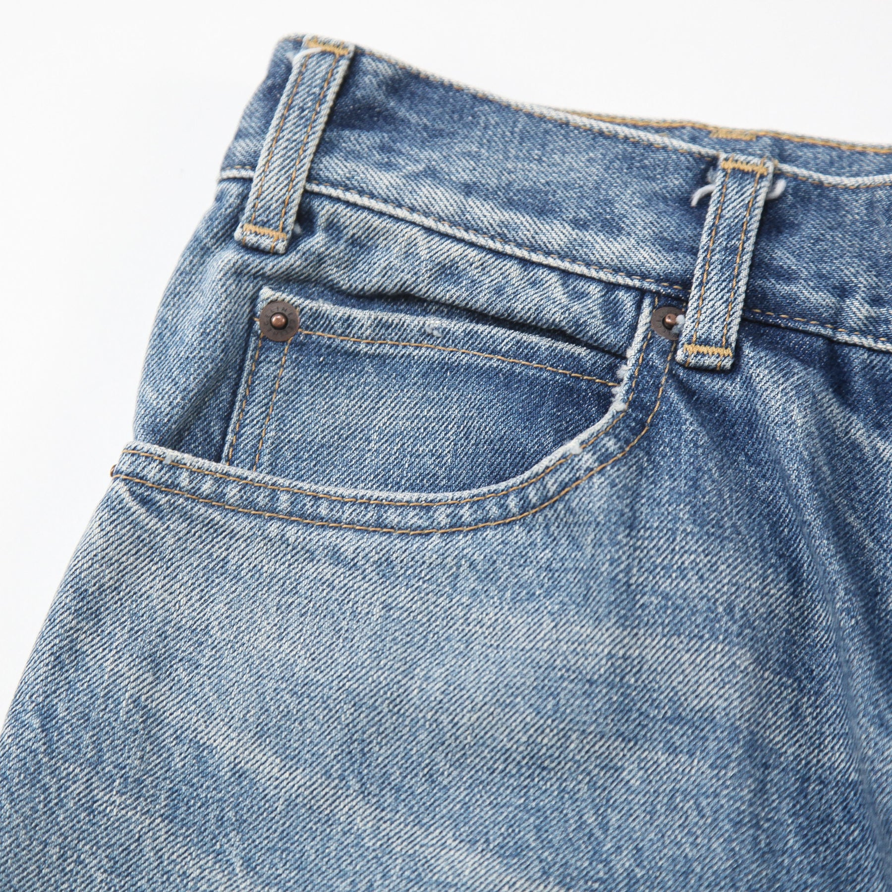 リアルなヴィンテージ感のある色落ちを表現したユニオンウォッシュ仕上げで、裾のダメージ加工が特徴的なデザイン。