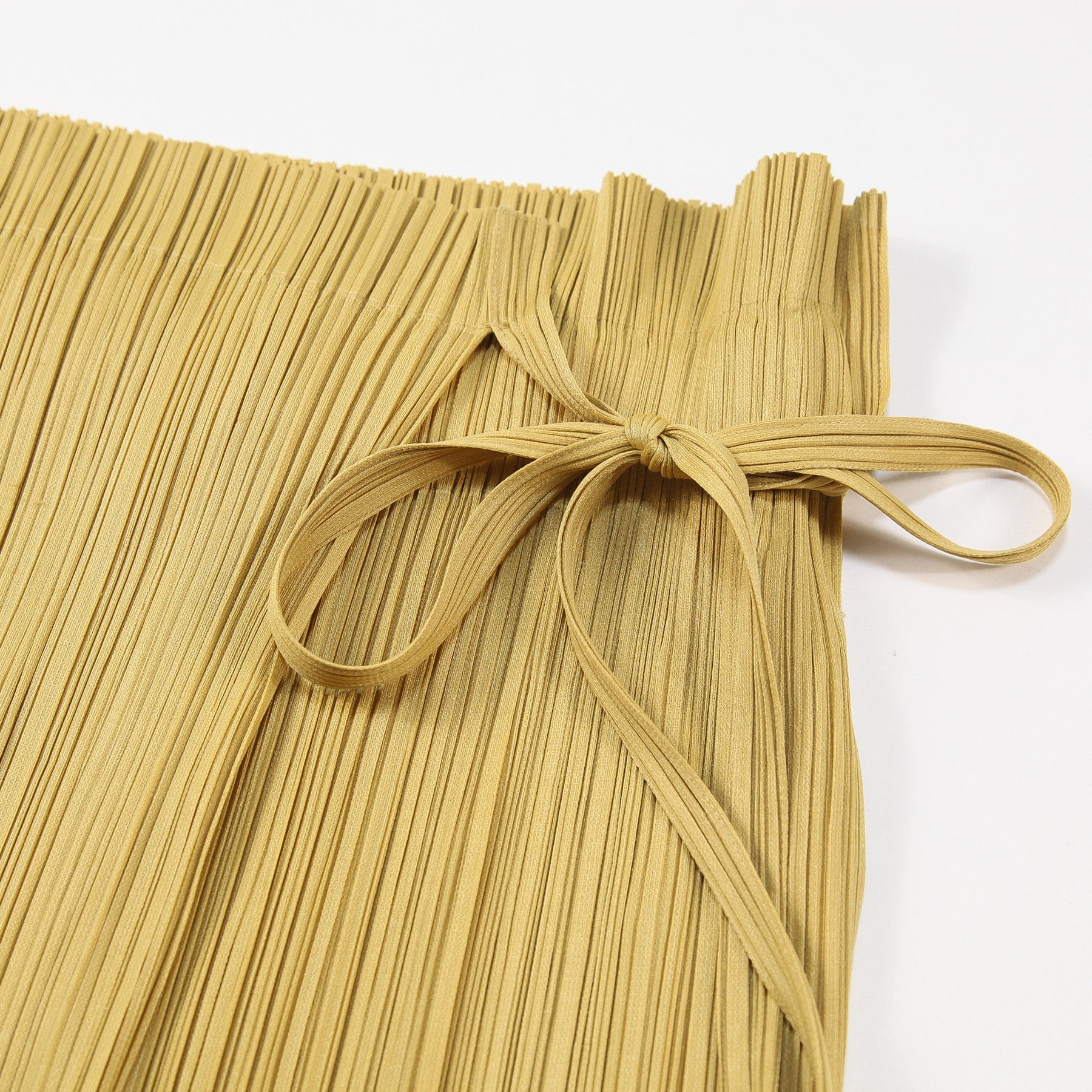 ウエストゴムで伸縮性があるので履き心地も良く、紐を結んでアクセントを加える事が可能です。