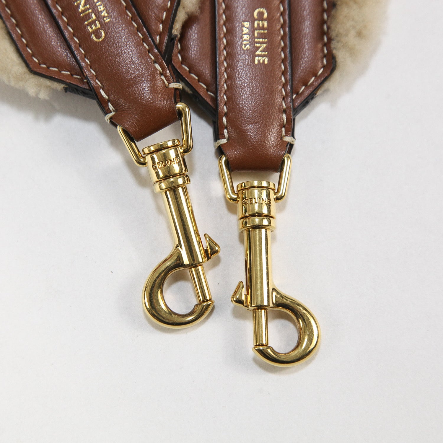 高級感のあるシアリング/カーフスキンのトリミングで、ゴールドのフックとパーツをあしらったラグジュアリーな仕上がり。