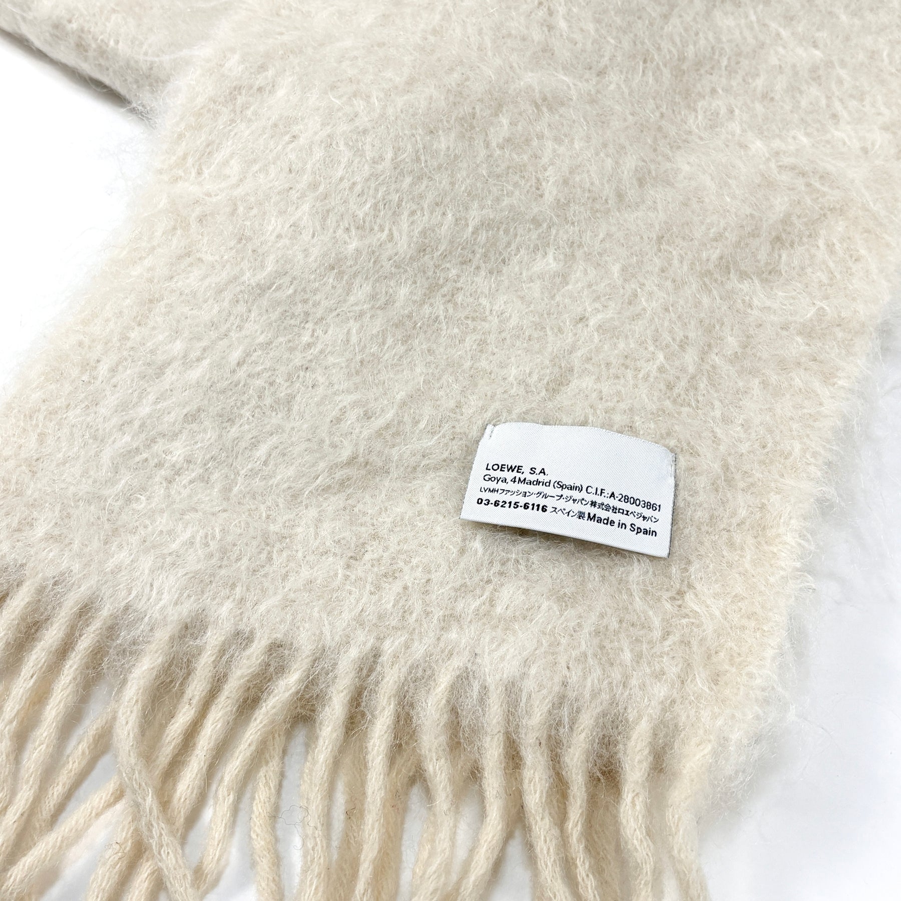 毛足が長く肌触りの柔らかなウールモヘア素材を使用しており、両端はフリンジでアクセントになったデザイン。