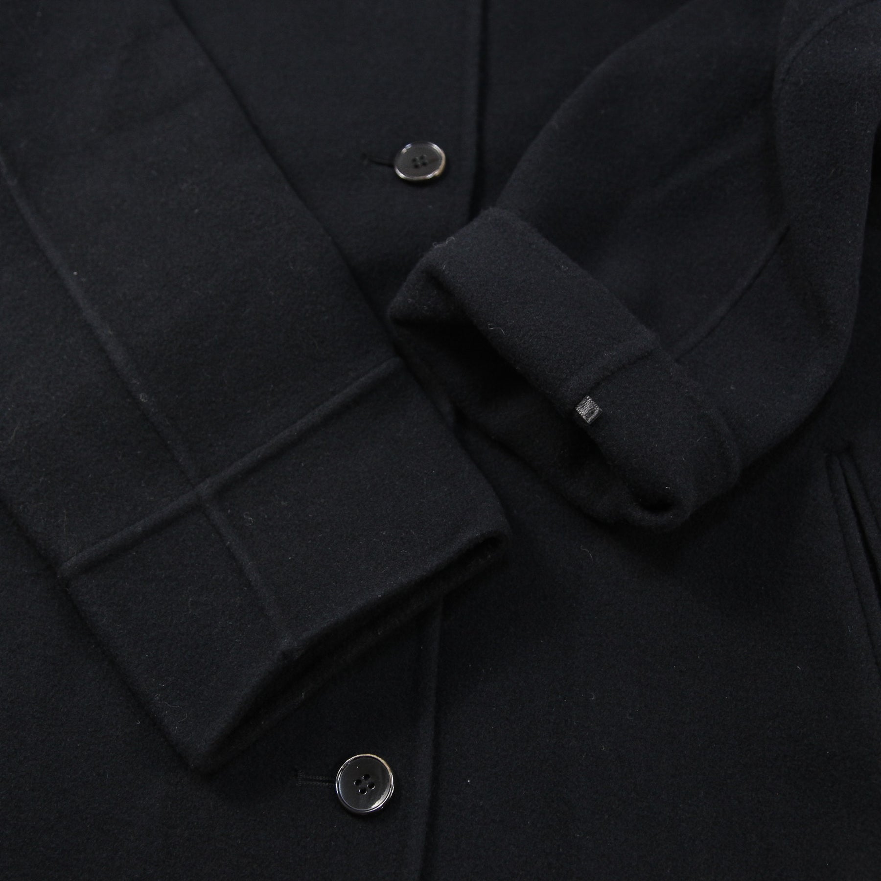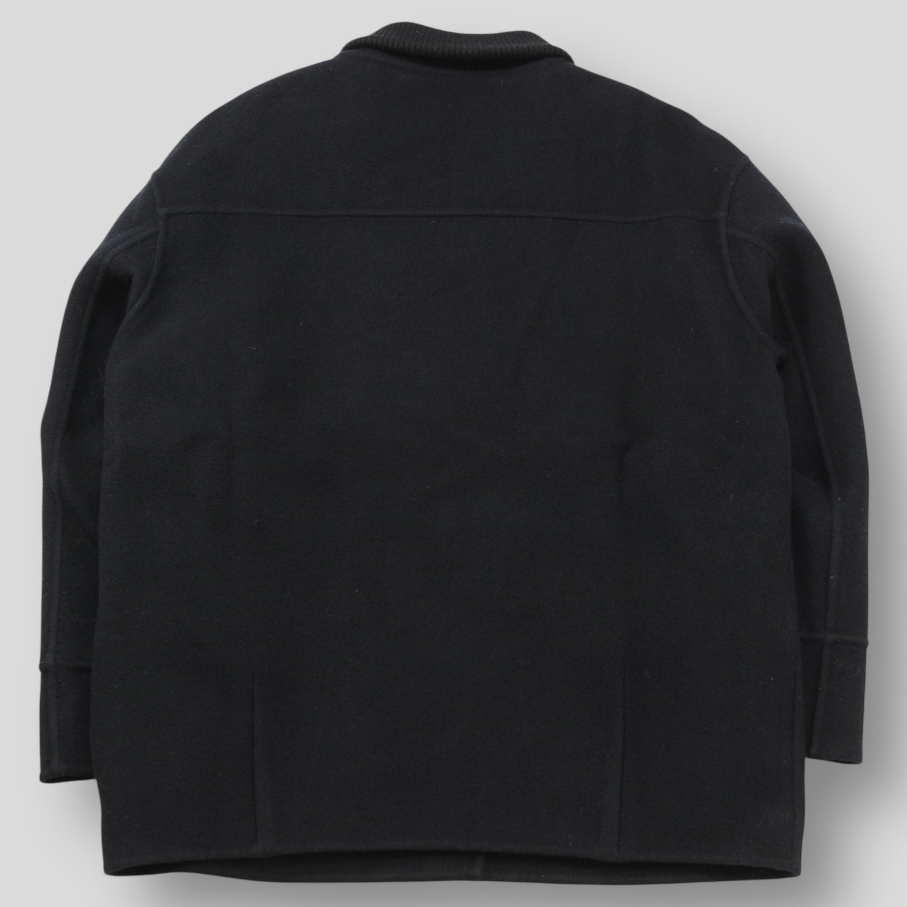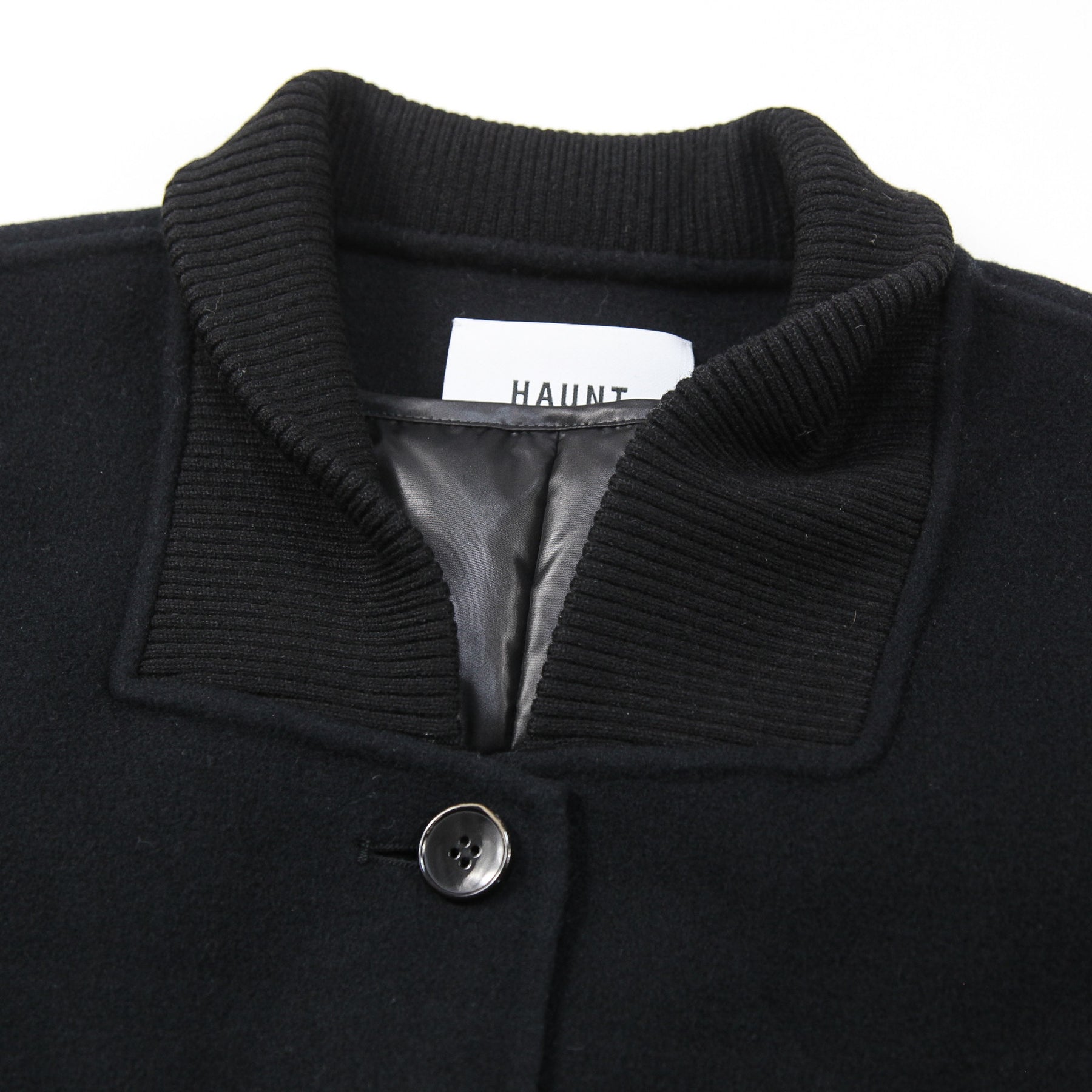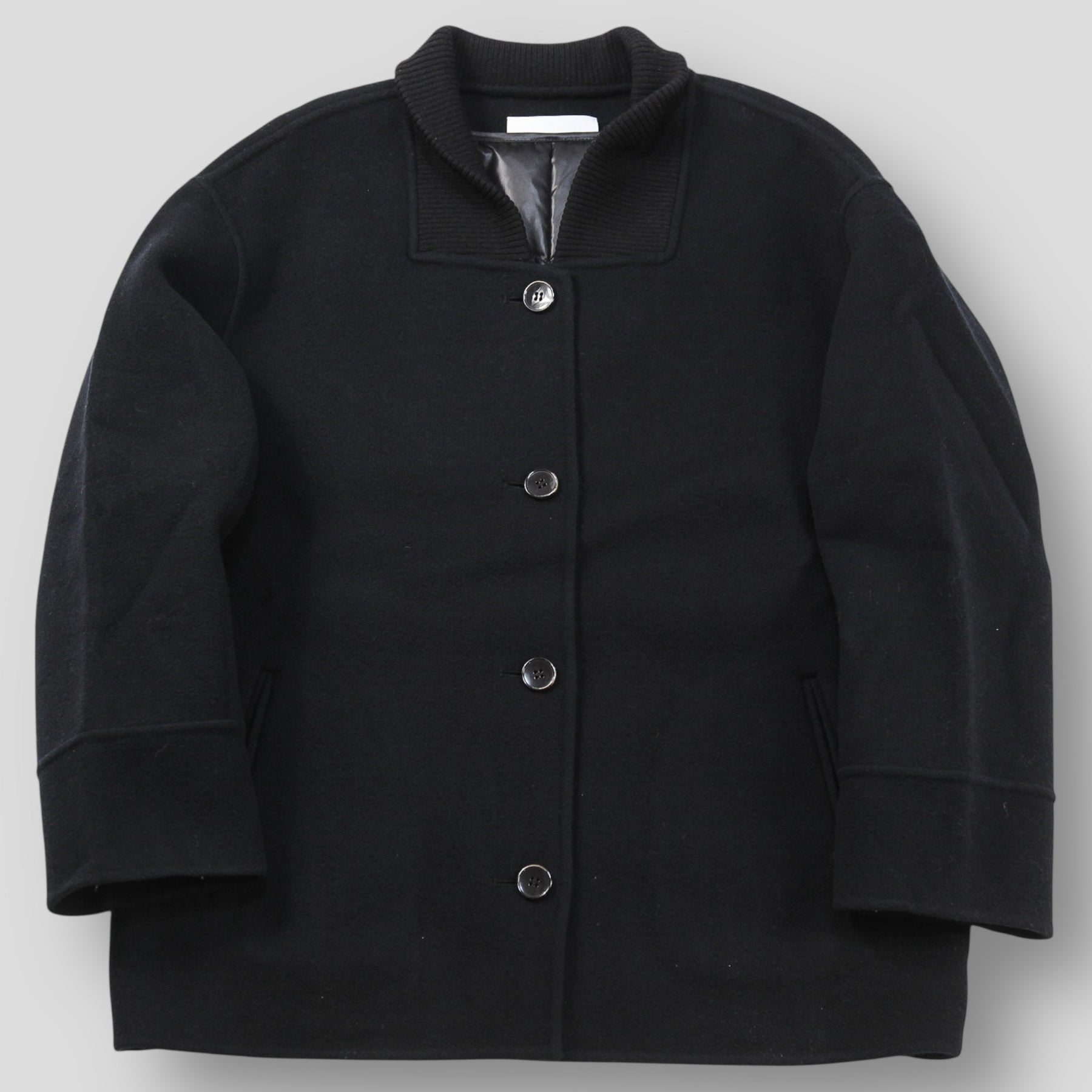 上質なウール/ナイロン混紡の素材を使用したしなやかな素材感で、襟部分のリブの高さやミニマルなシルエットが特徴的。
