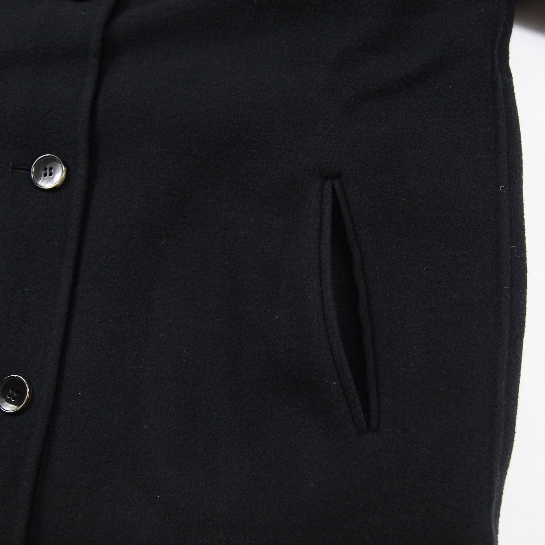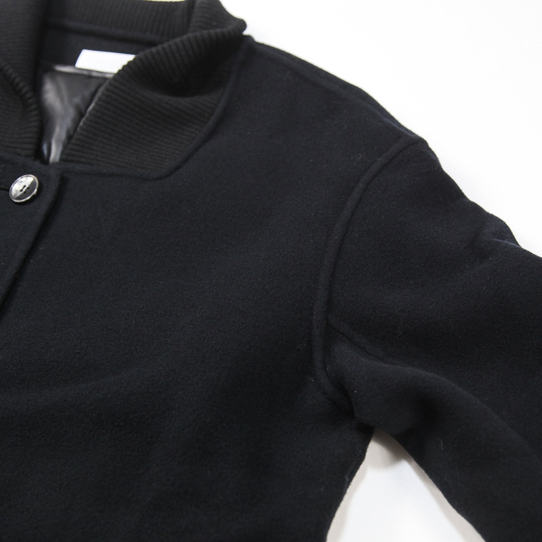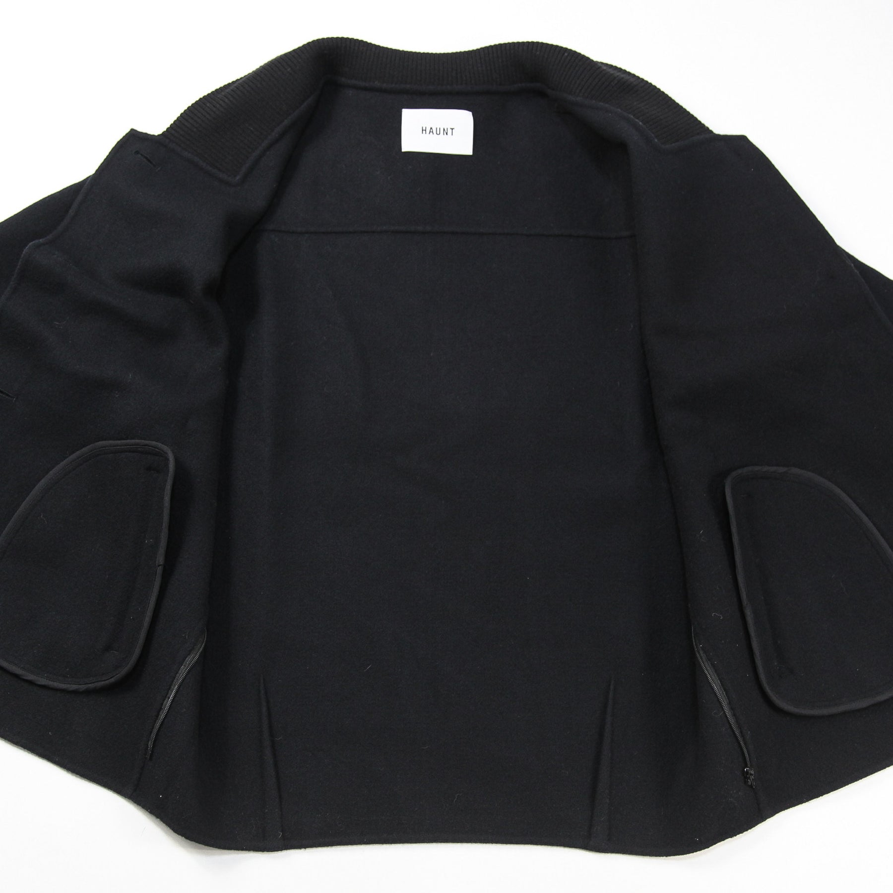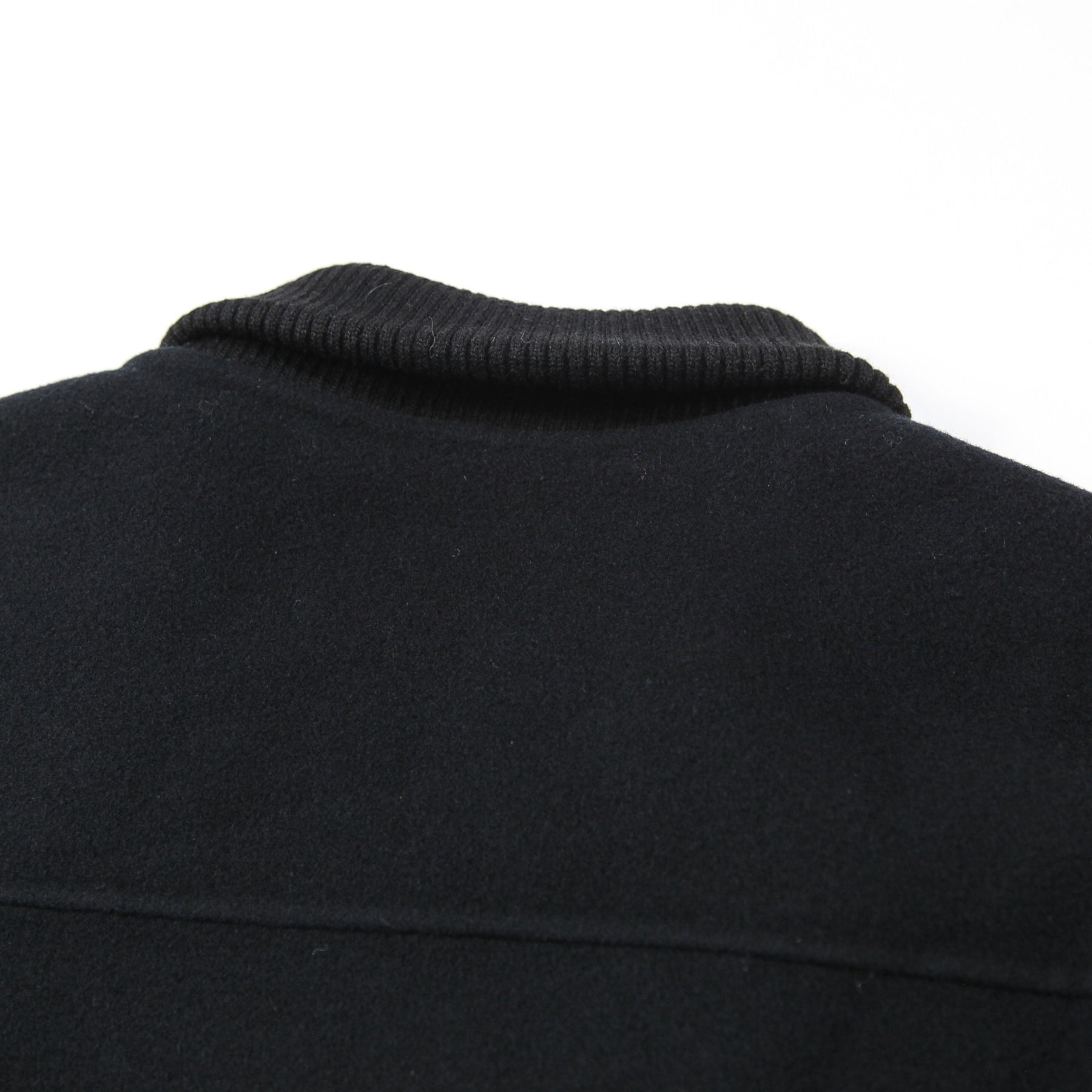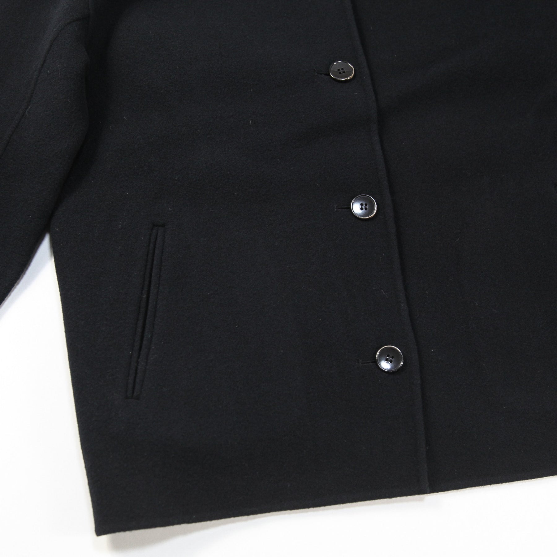 上質なウール/ナイロン混紡の素材を使用したしなやかな素材感で、襟部分のリブの高さやミニマルなシルエットが特徴的。