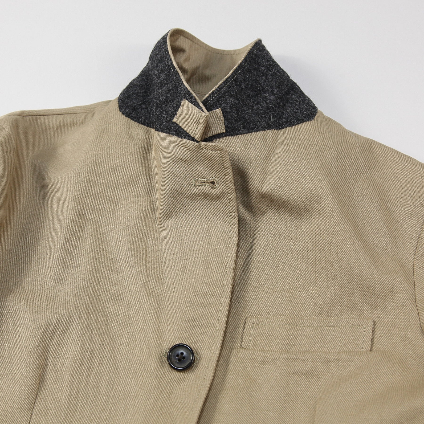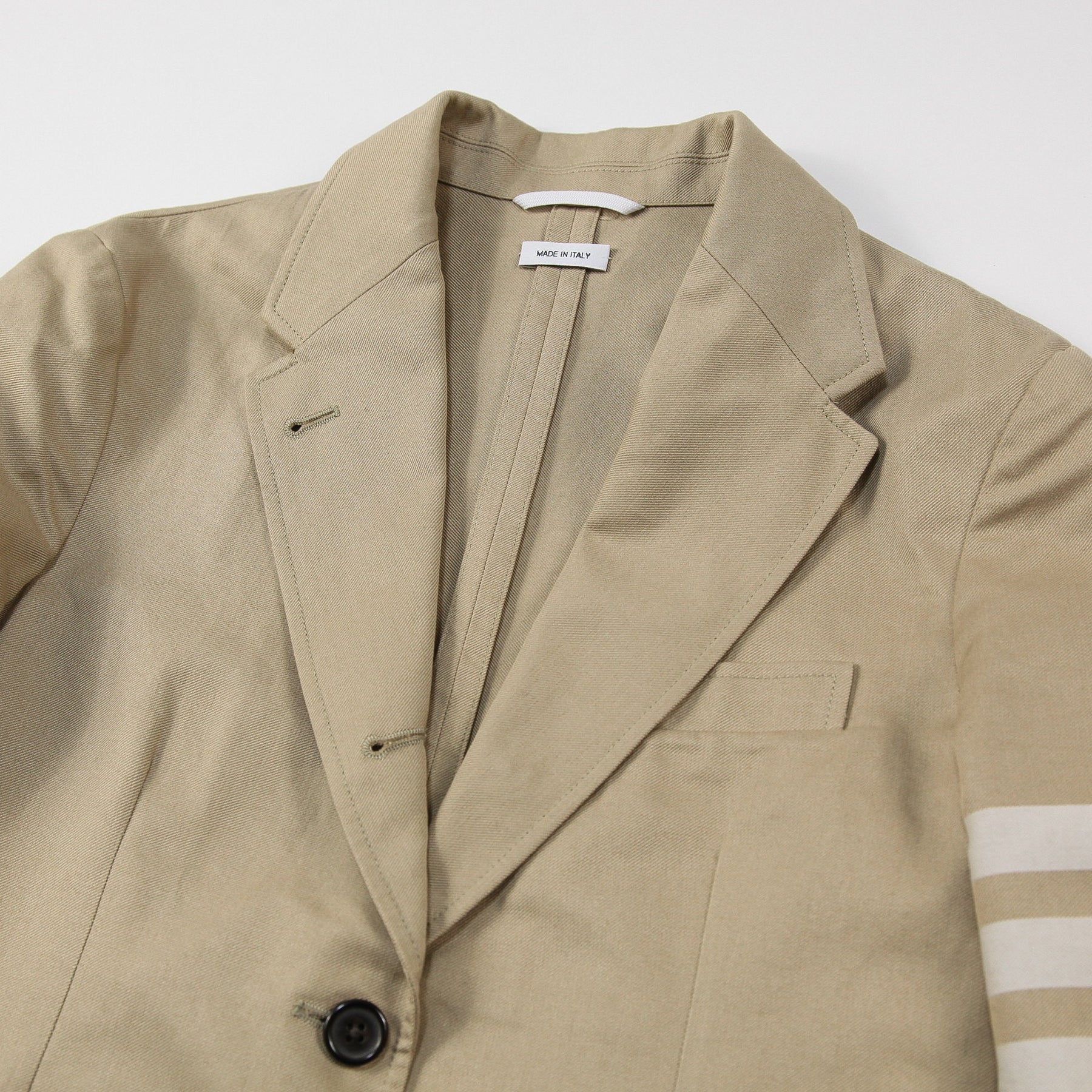 上質なコットンツイル素材を使用した、3ボタンのテーラードジャケット。