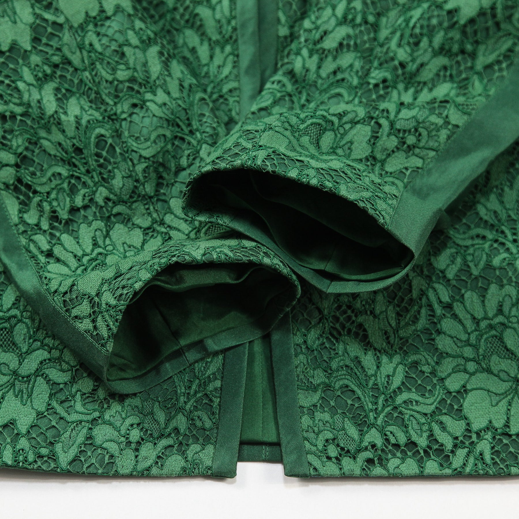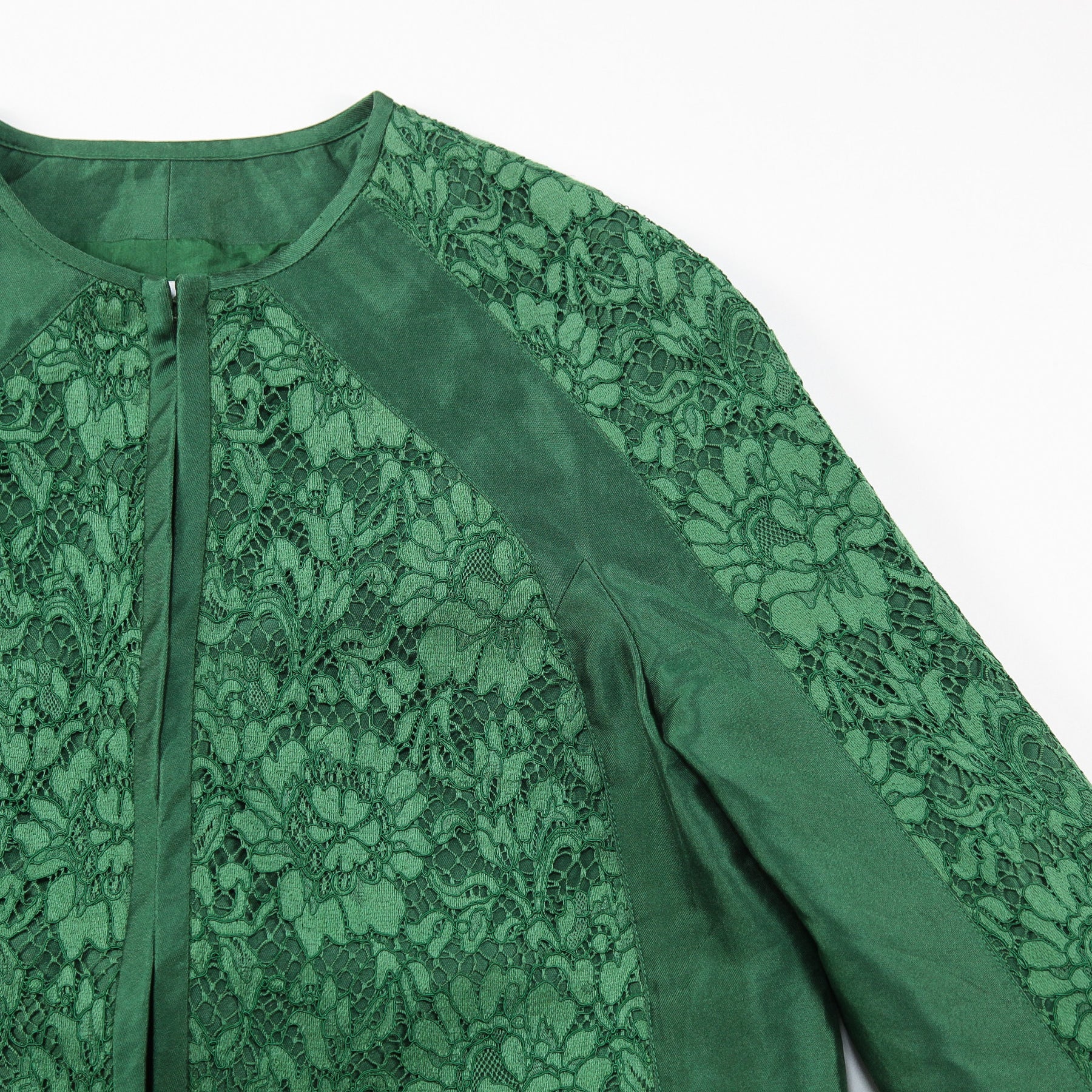 上質なシルクレースを用いたフラワーレースを全面にあしらった、ノーカラージャケット。