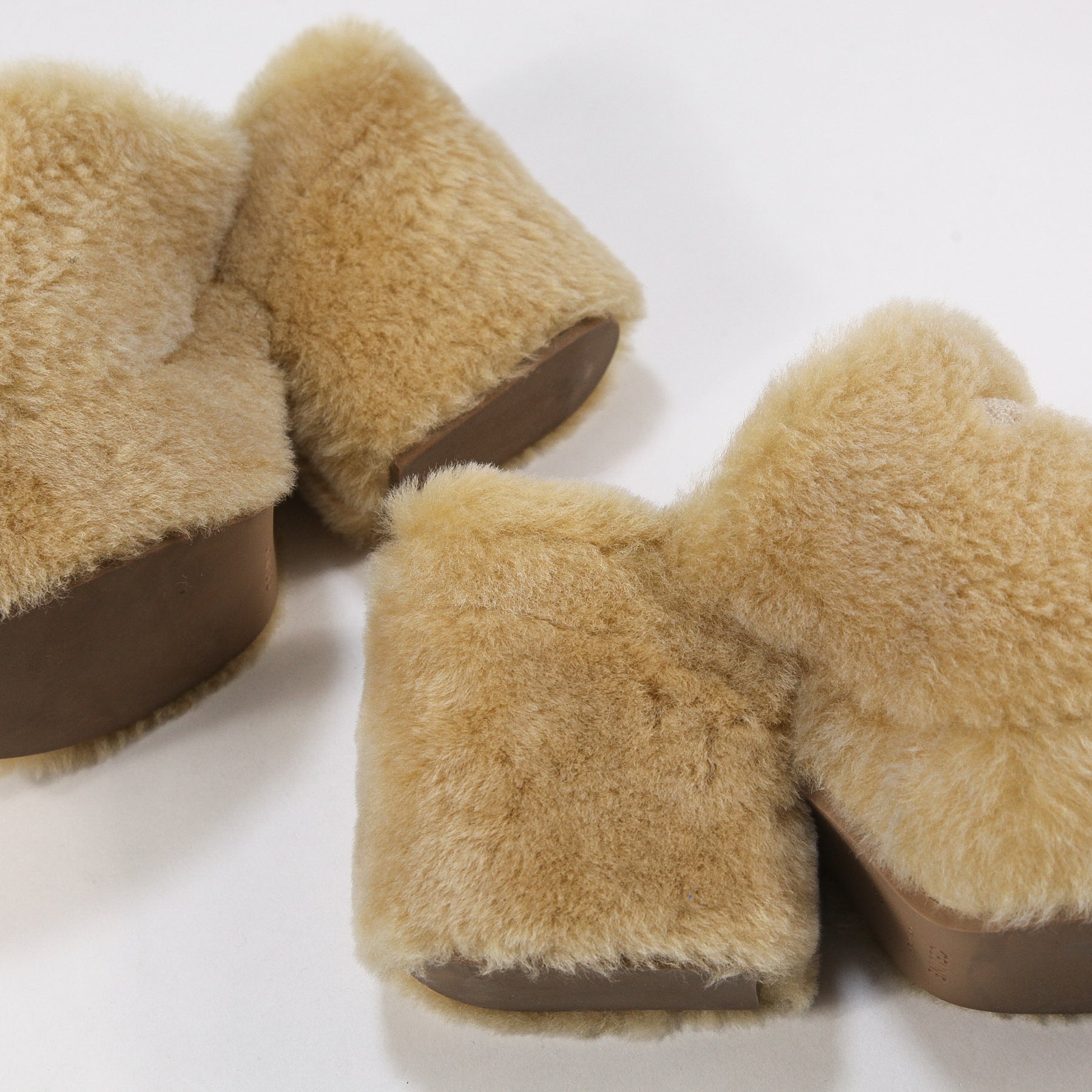 アッパー全体をシアリングで覆った「エレナ ミュール」の、2024AWシーズナブルモデル。