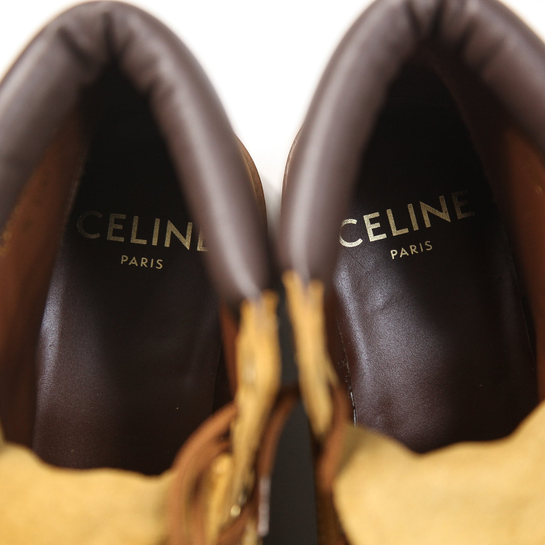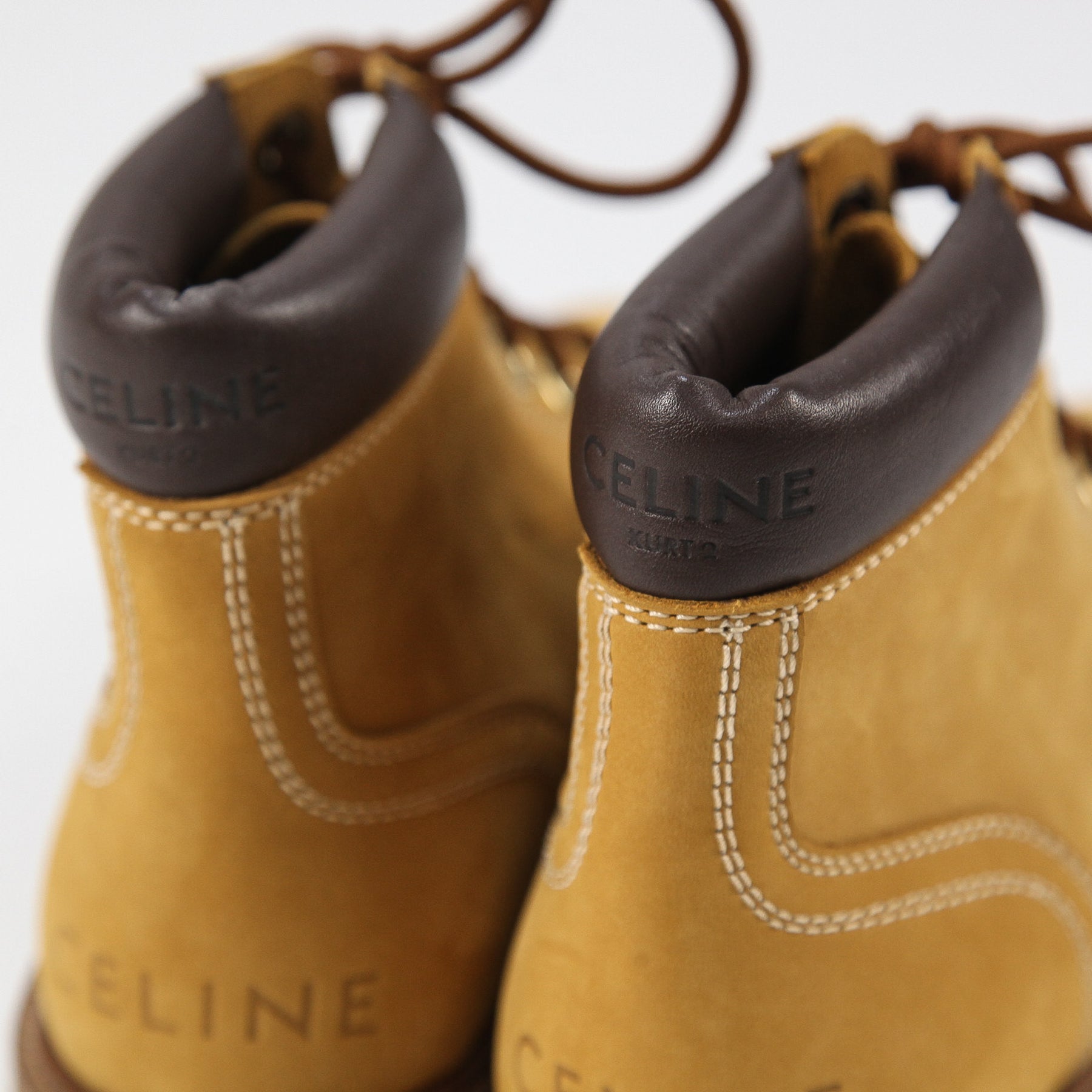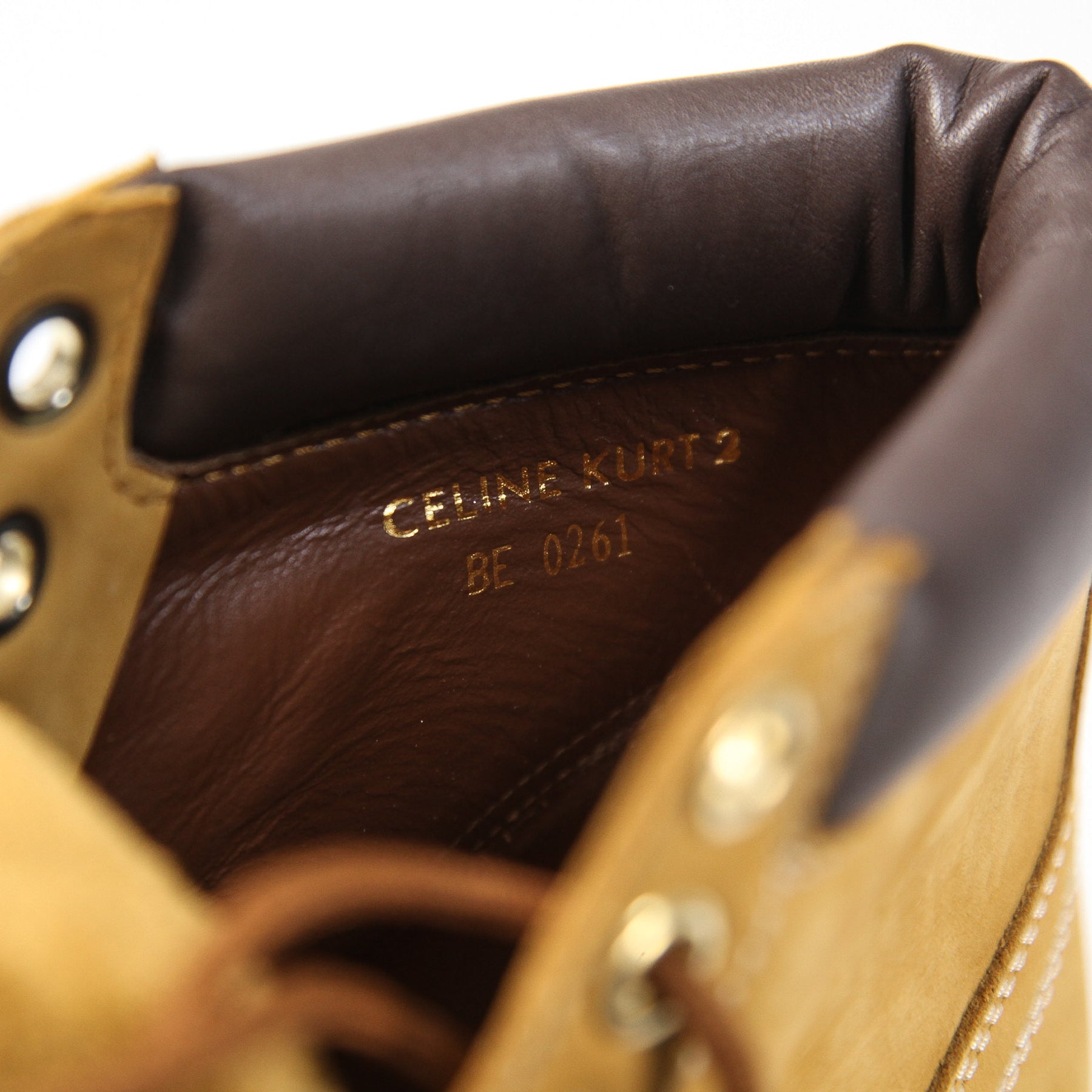 履き口かかと部分と内側には「CELINE KURT 2」のサインが刻印されており、ヒール部分にはCELINEのシグネチャーがエンボス加工で施されています。