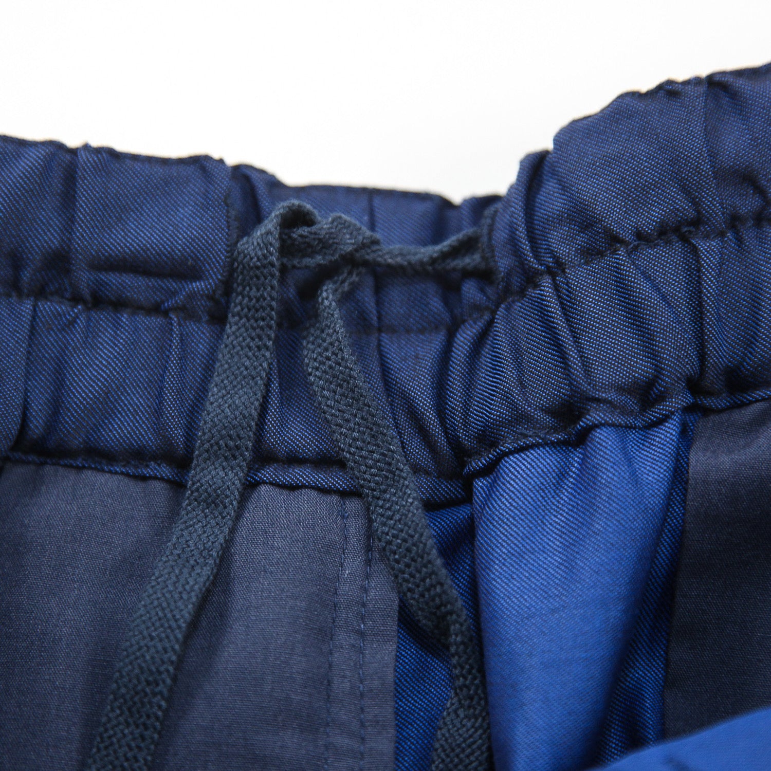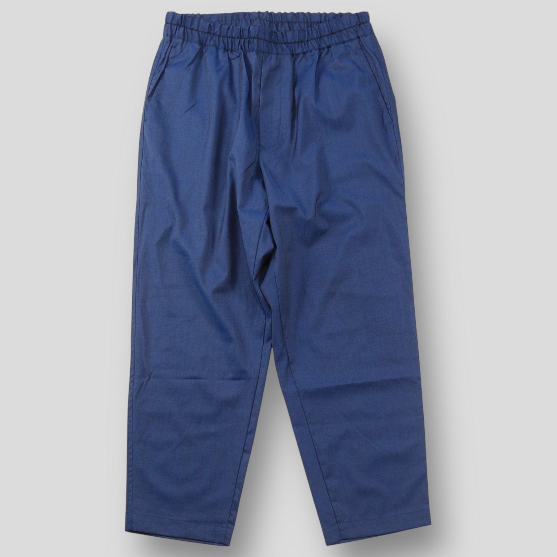 ウエストゴム+ドローコードを配したイージー仕様で、ワタリとヒップに余裕を持たせて裾にかけて強めのテーパードを効かせたシルエット。