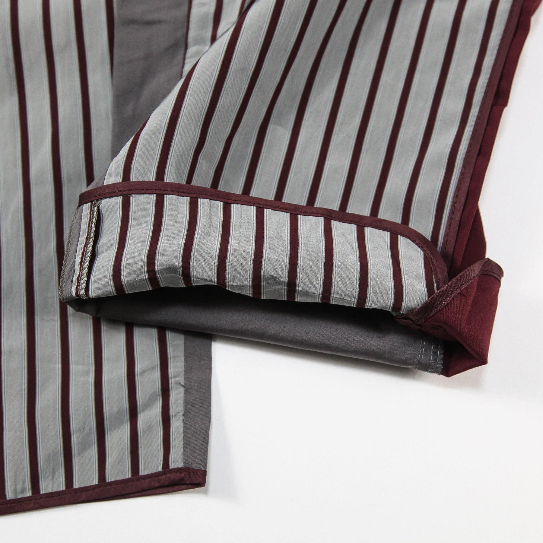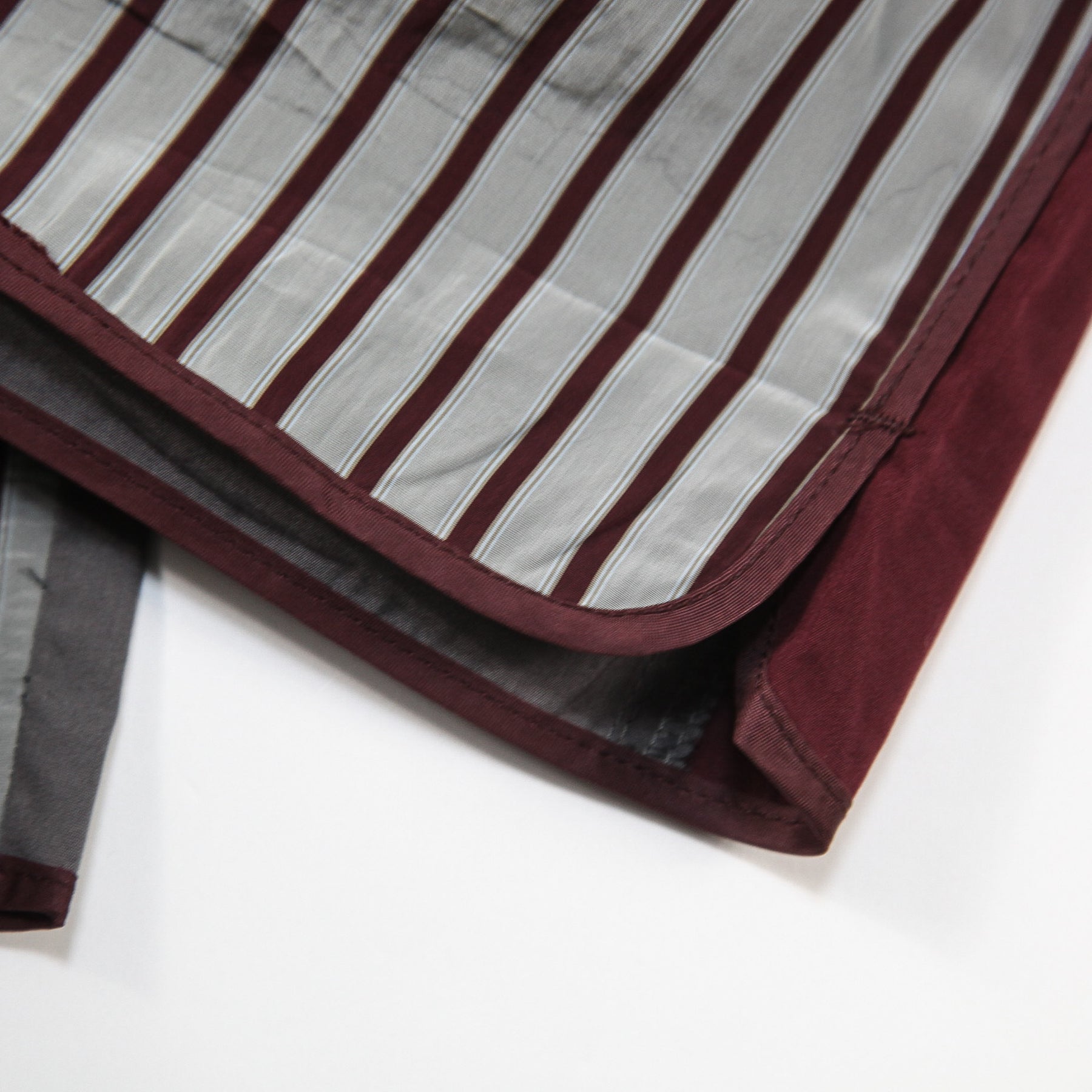 素材にはコットン/ヴィスコース/ポリエステル混紡のスポーティーな質感で、フロントはストライプ、バックは無地に切り替えたコントラストの効いたデザイン。