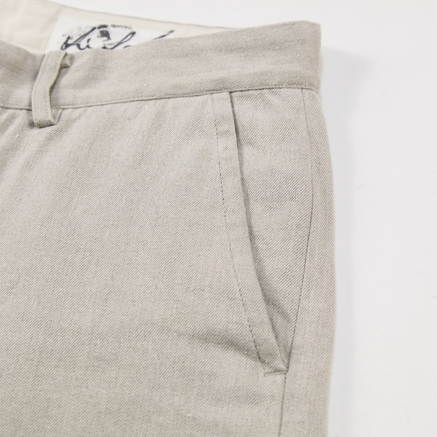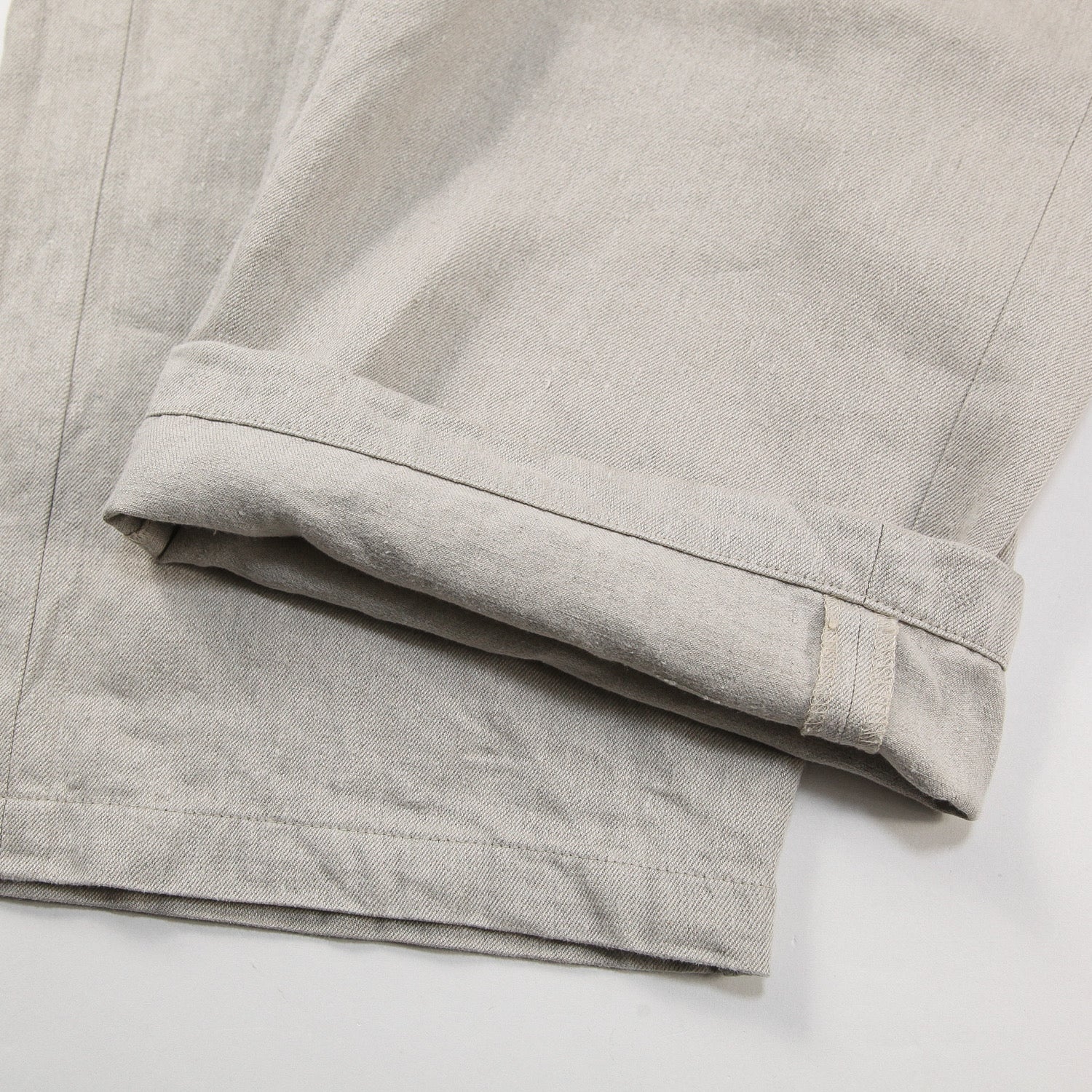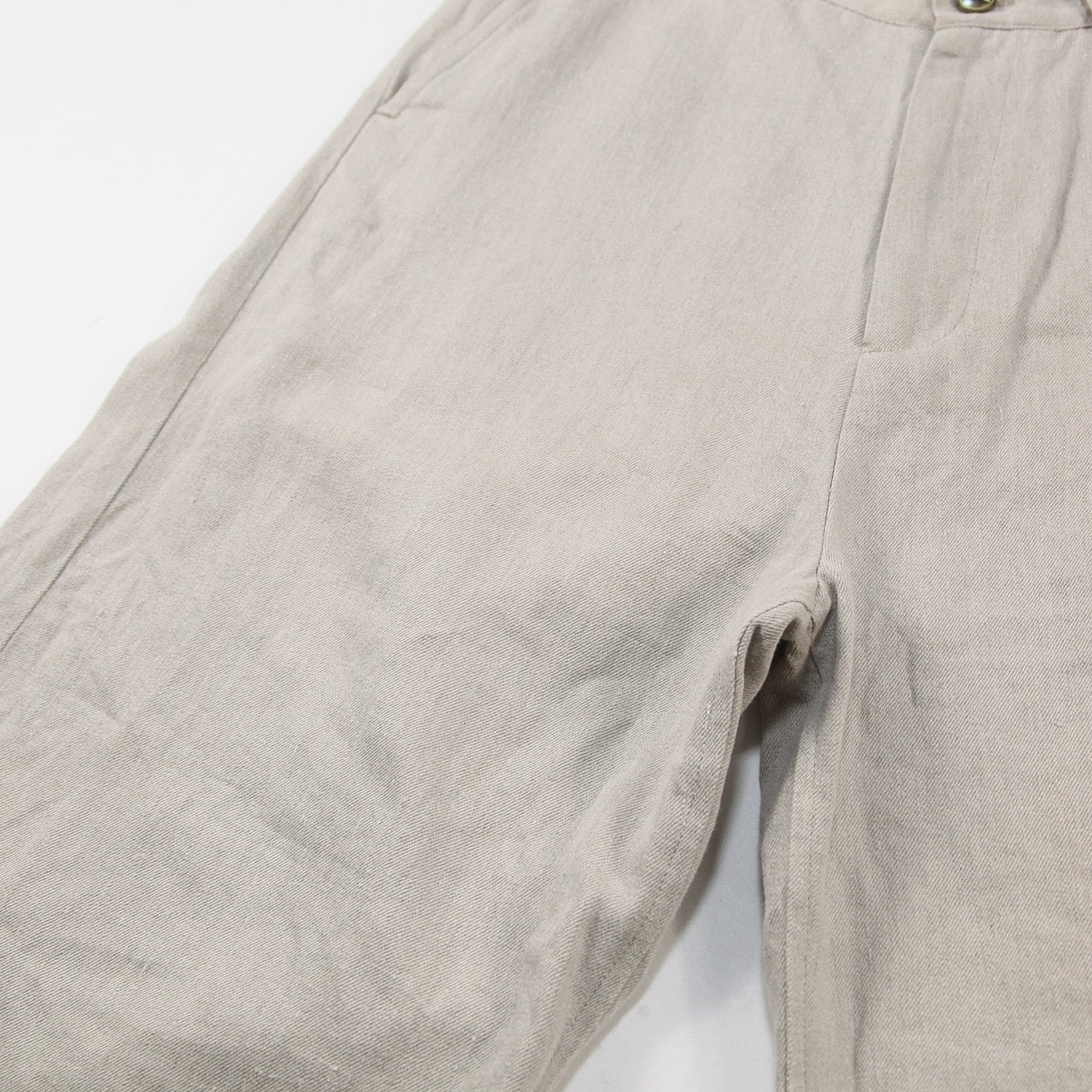 しっかりとした厚みのあるリネンデニムを使用しており、履きこむ毎に味わいが増す素材感です。