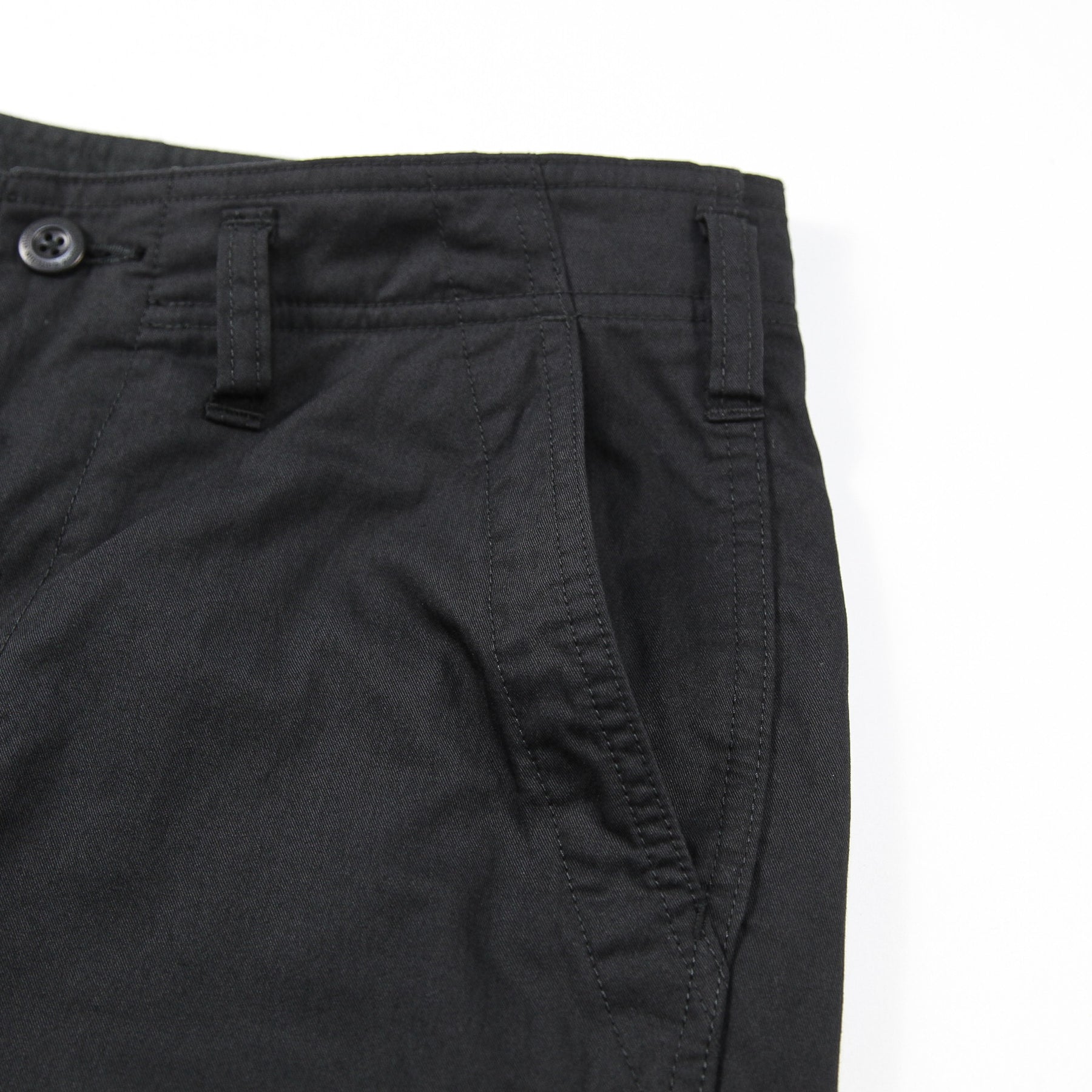 マチ付きのカーゴポケットを搭載し、隠しボタンにすることでスッキリとしたデザインに仕上げています。