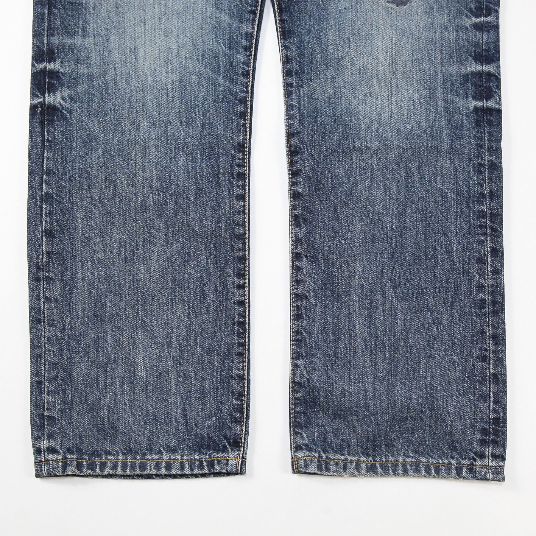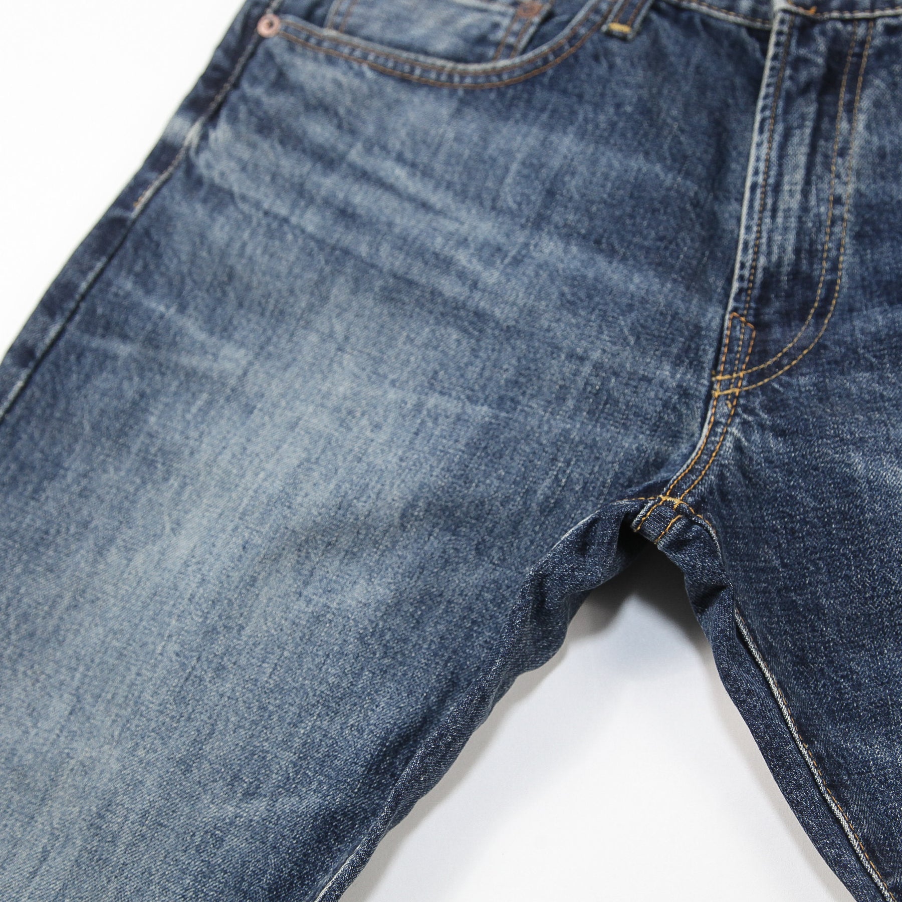リングスパンコットン糸を使用し、インディゴでロープ染めを施したノンストレッチジーンズ。