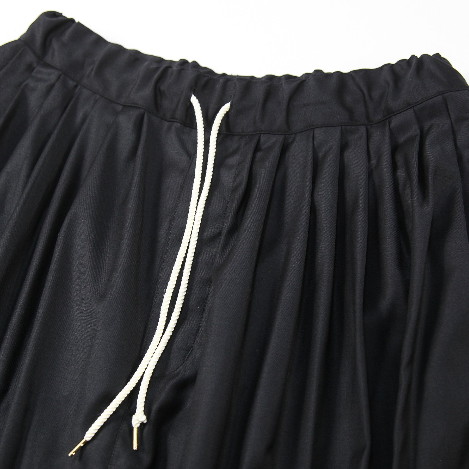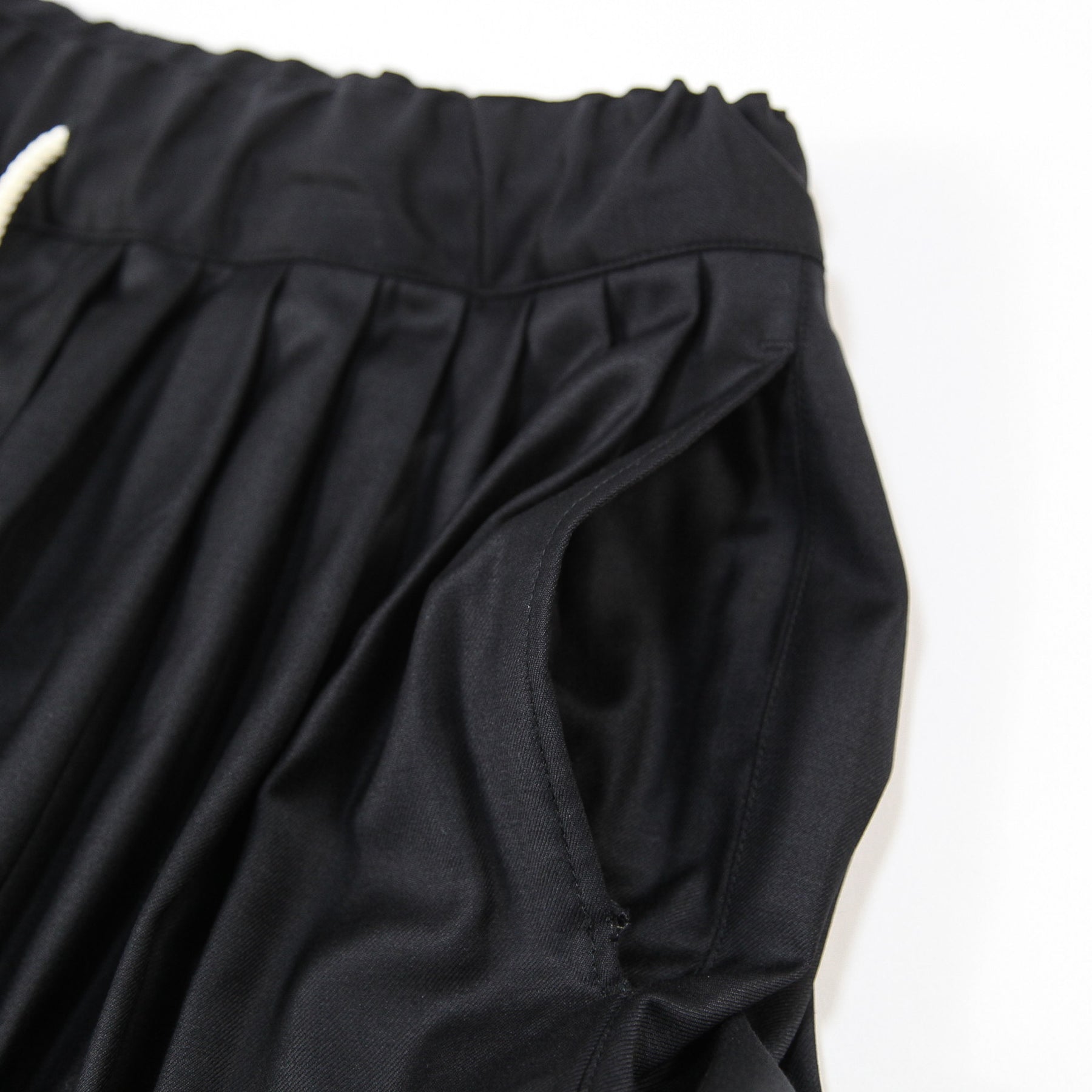 ドレープが綺麗に出るウール/シルク混紡の生地を使用しており、裾にはドローコードを入れてるのでシルエットや丈を調整する事が出来ます。