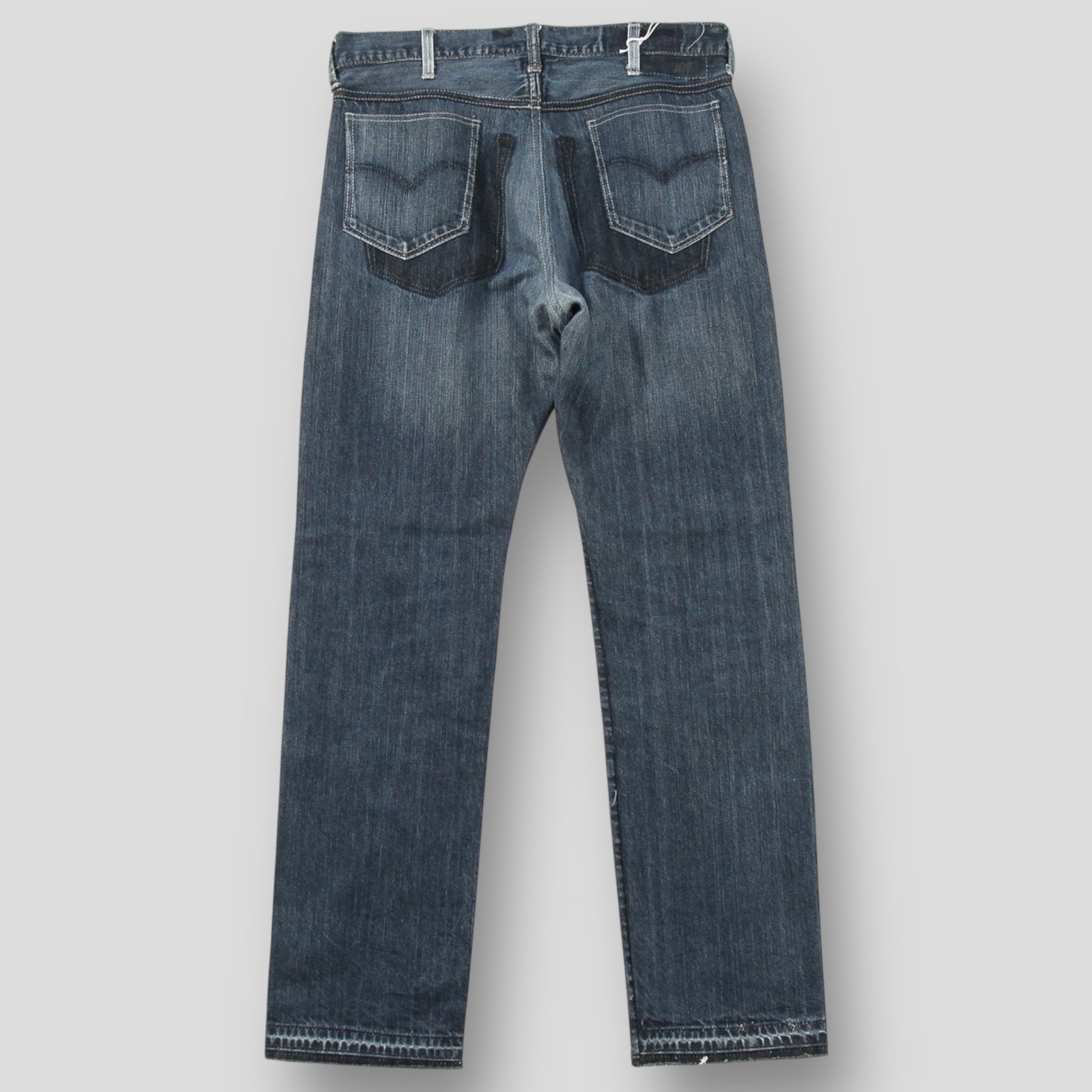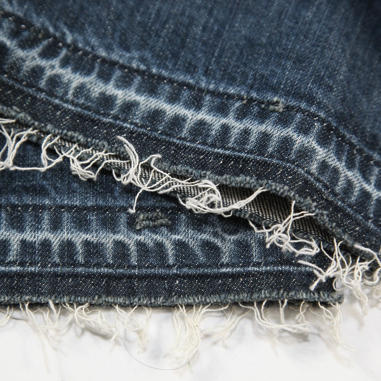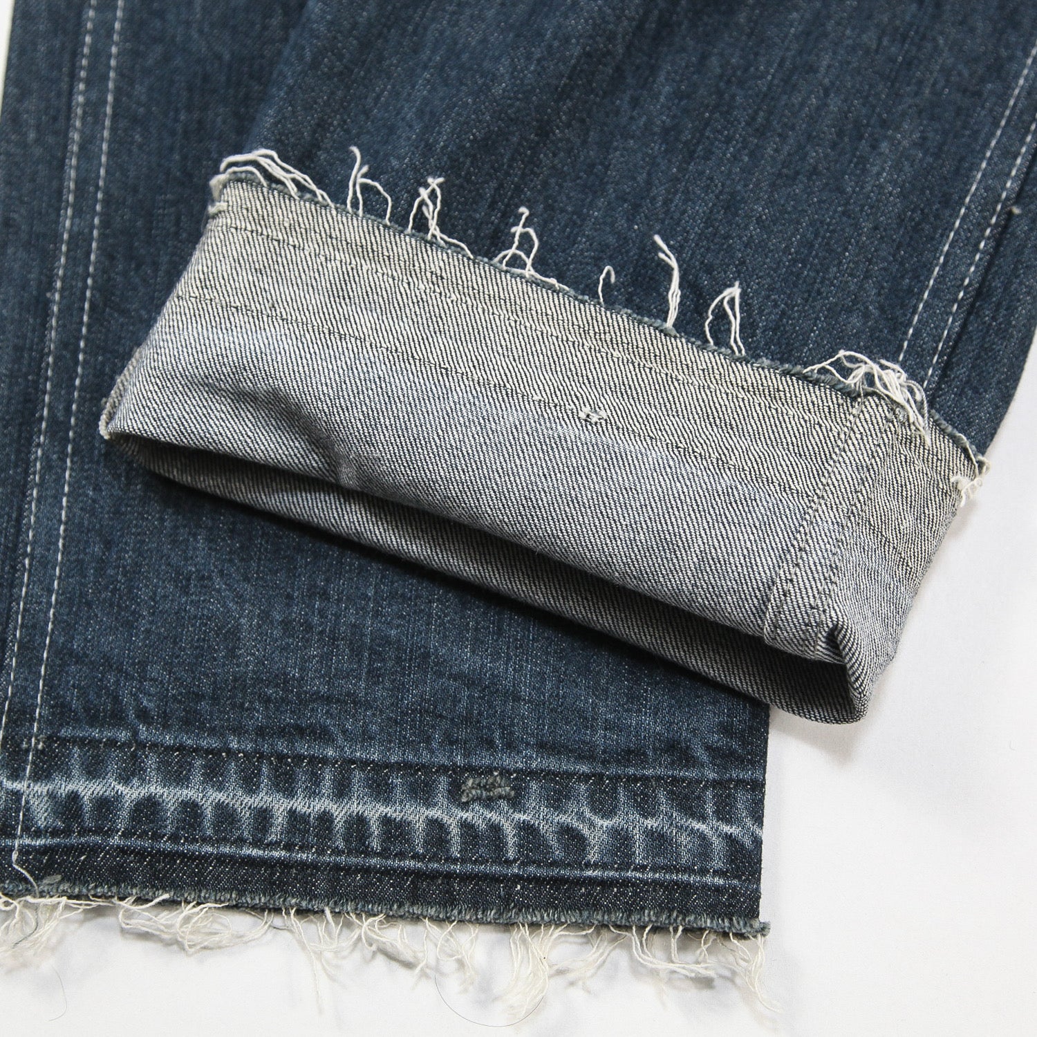 ヨーロッパヴィンテージならではの縦落ち感が特徴的な再構築ジーンズです。