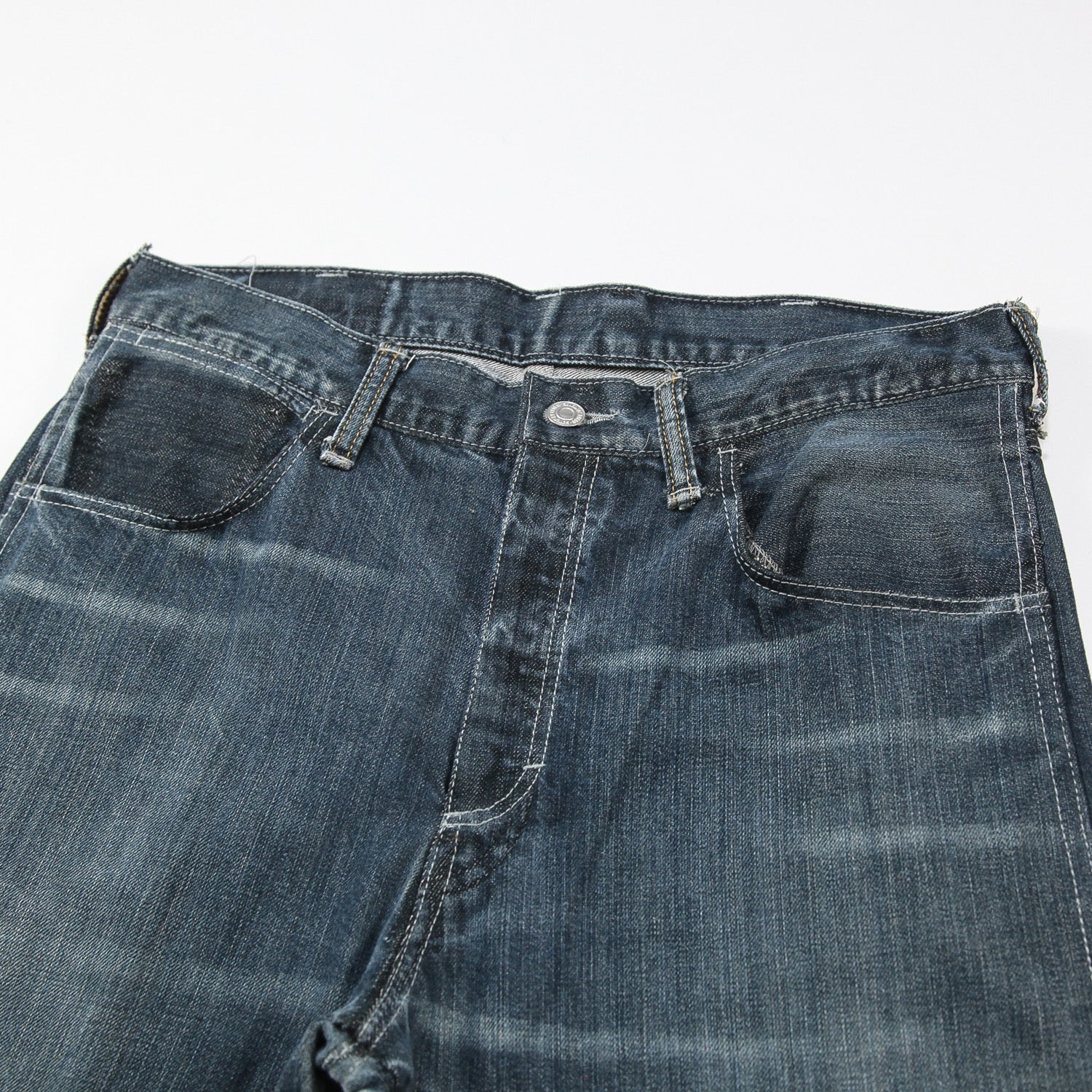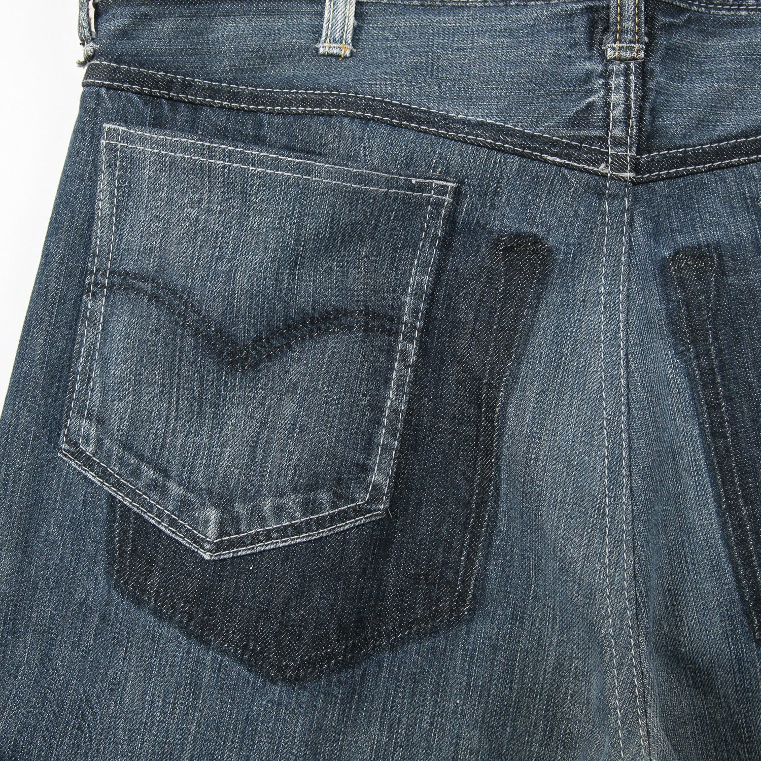 ヨーロッパのヴィンテージのデニムパンツを解体し、それぞれのパーツを生地として捉え、新たなディテールとシルエットに仕上げたデニムパンツ。