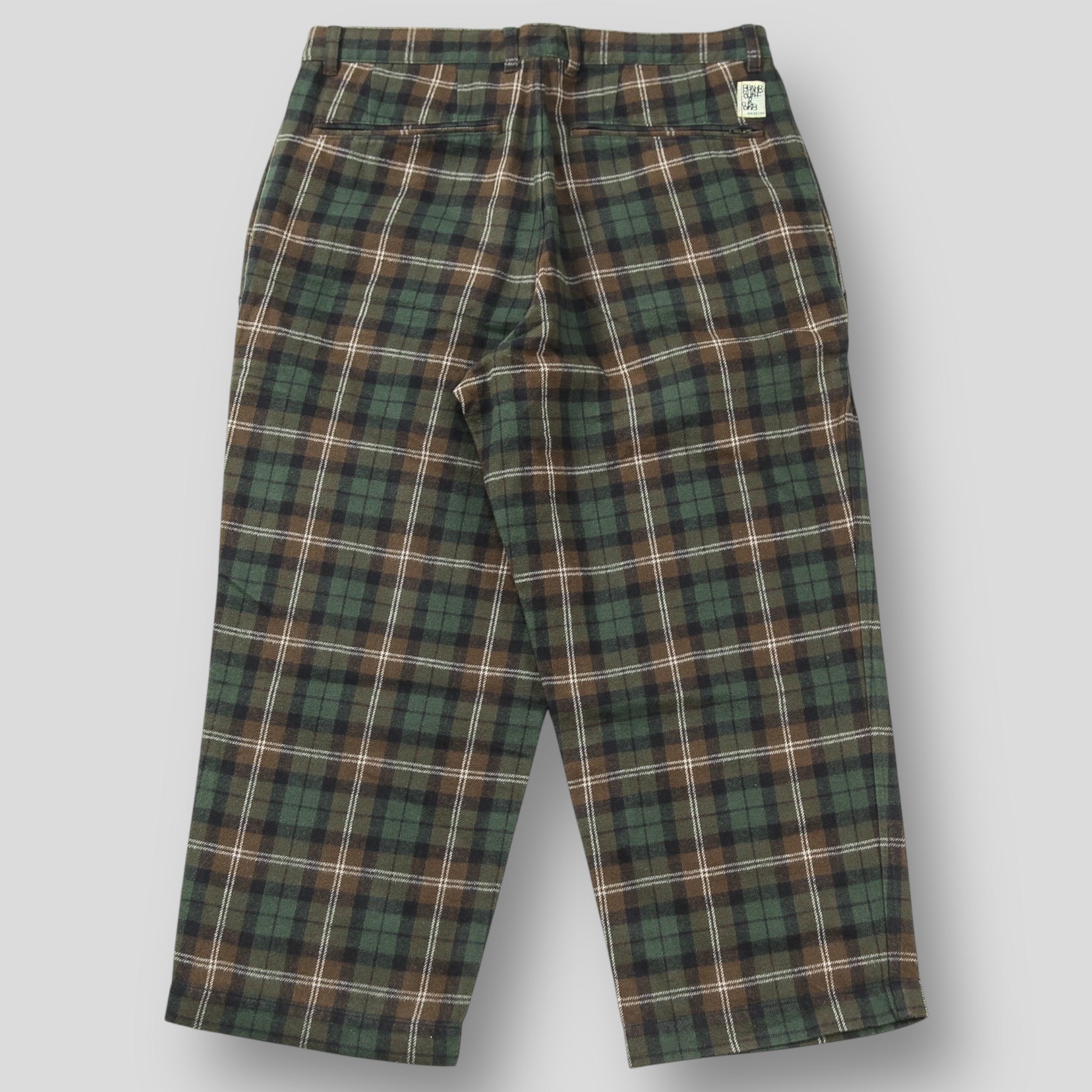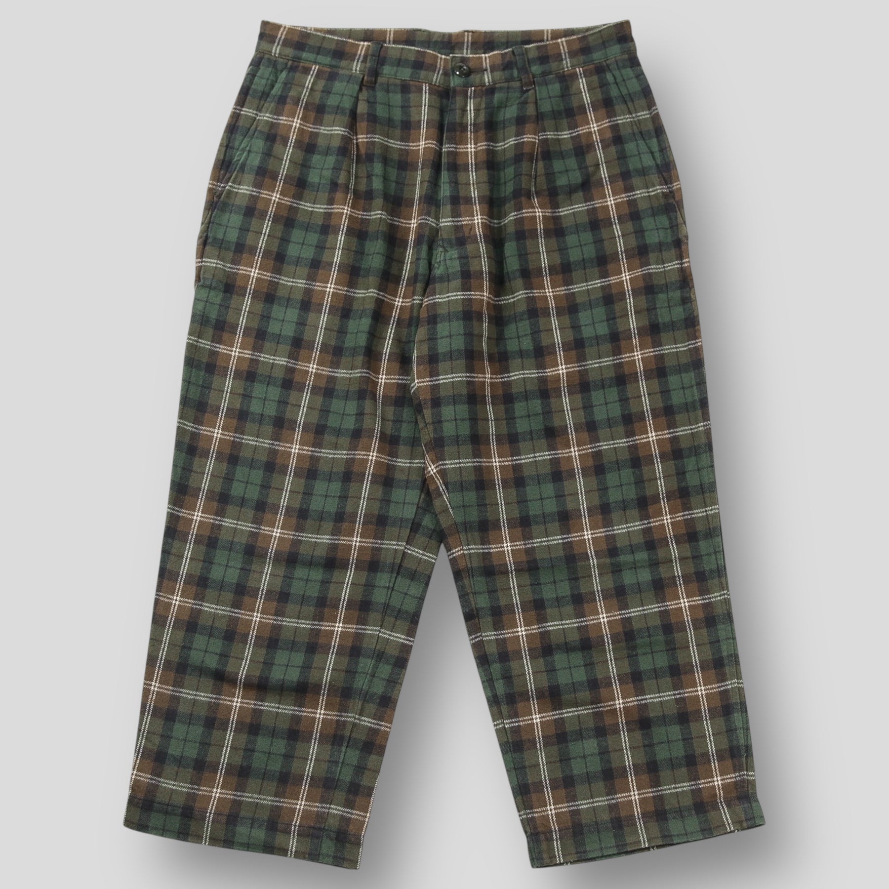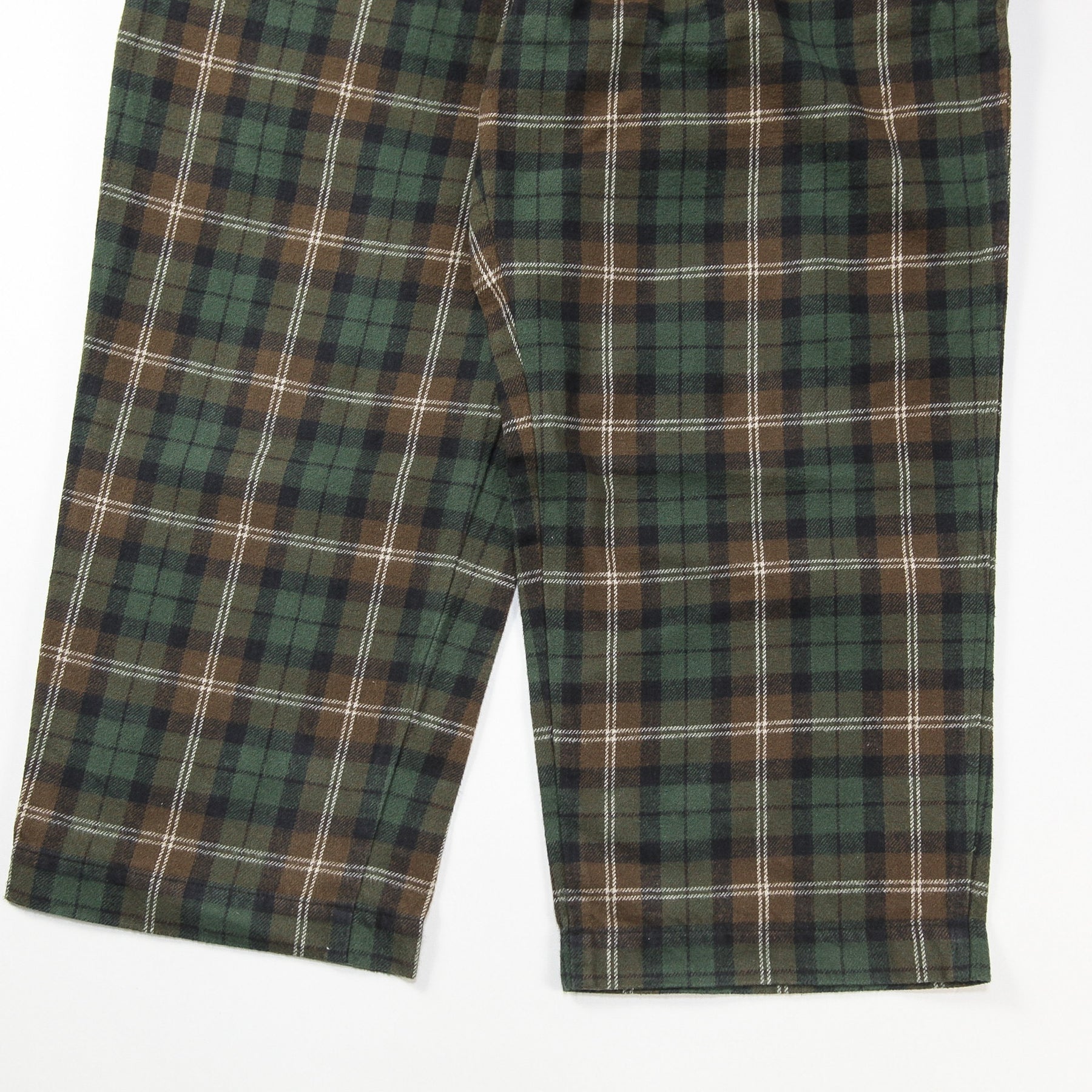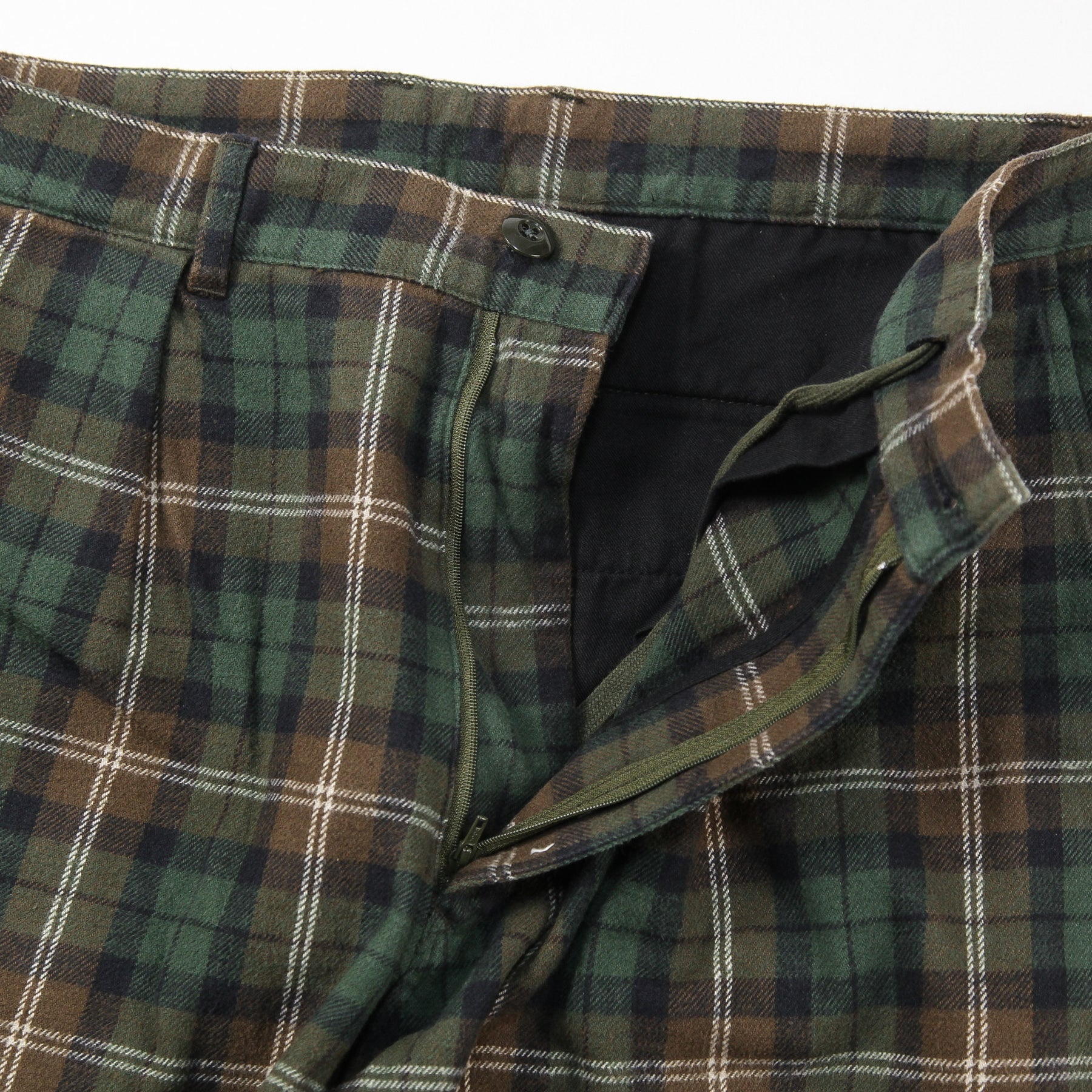 柔らかく程よく起毛したコットンフランネル素材を使用し、落ち着いた配色で仕上げられたチェックパターンが特徴的なパンツ。