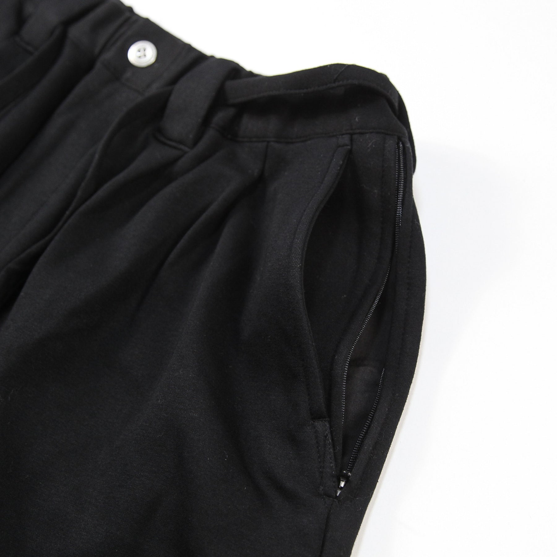 深めに設定された股上に2本のダーツと膝のタックで立体感とゆとりを持たせ、裾をテーパードさせて立体的なバルーン型シルエットで仕上げられた、TBPRの定番パンツ。