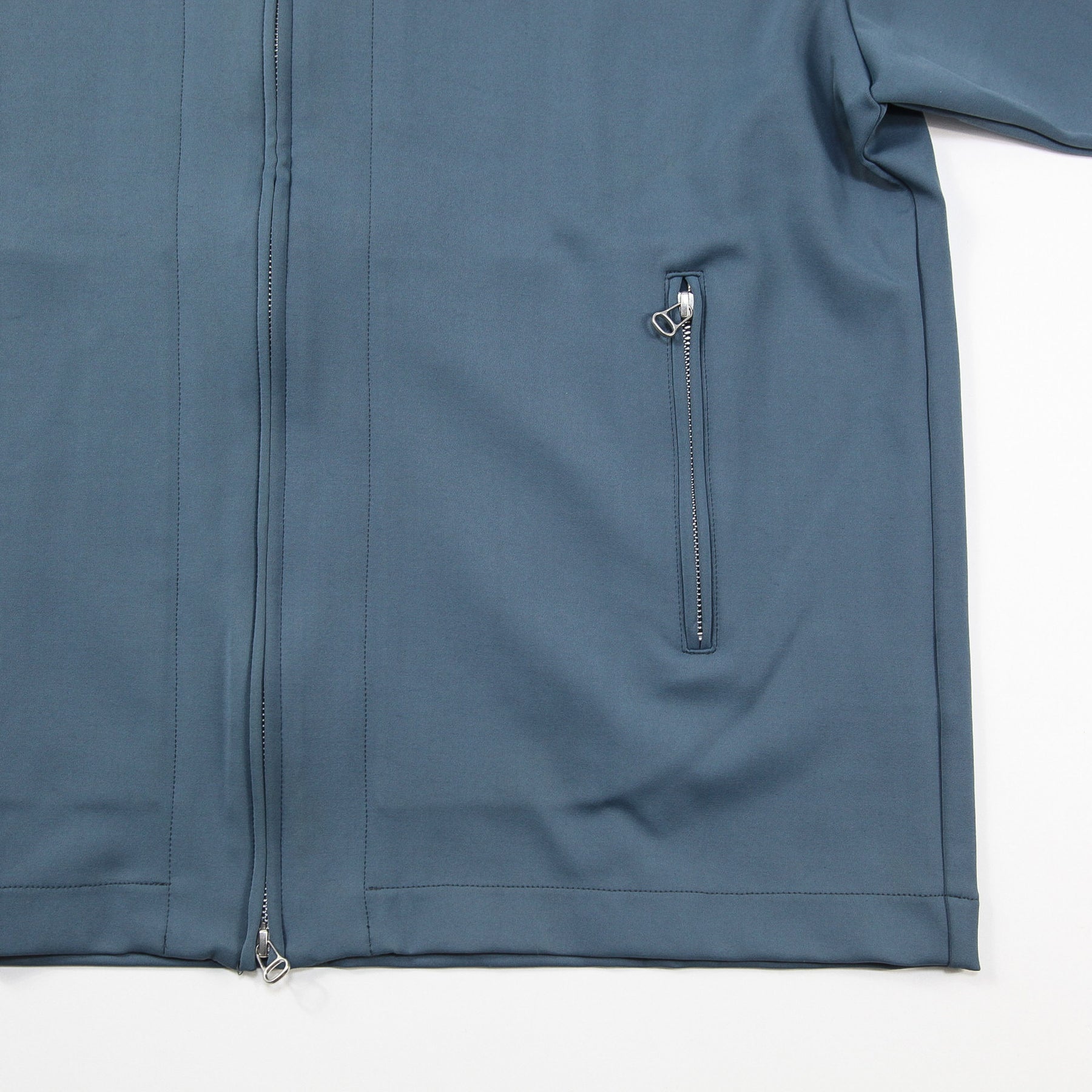 素材には一般的なナイロンポリウレタンとは一線を画す、滑らかな肌触りと上品な落ち感が特徴的な生地を使用しており、しなやかで中肉厚な素材感が特徴的。