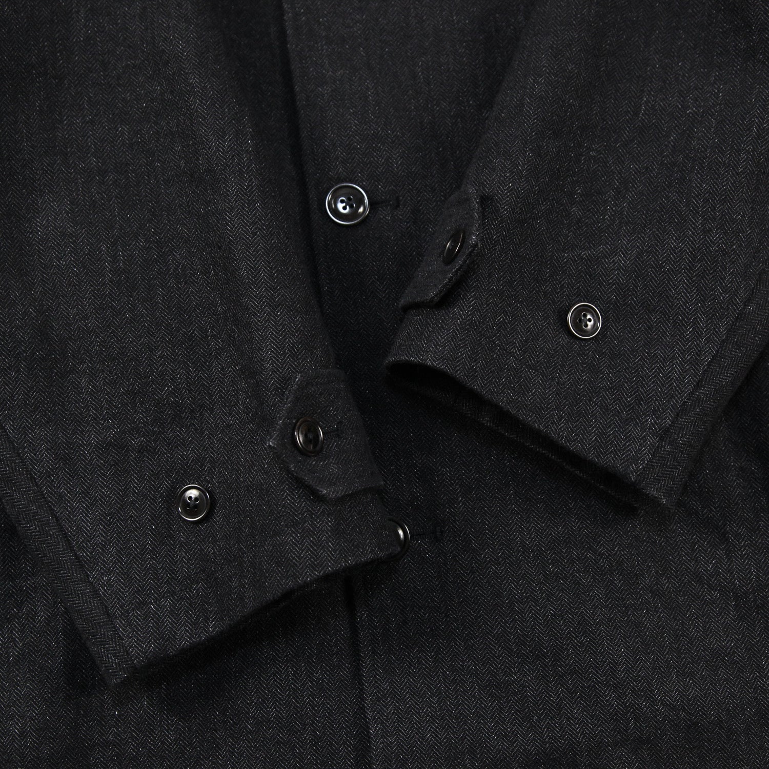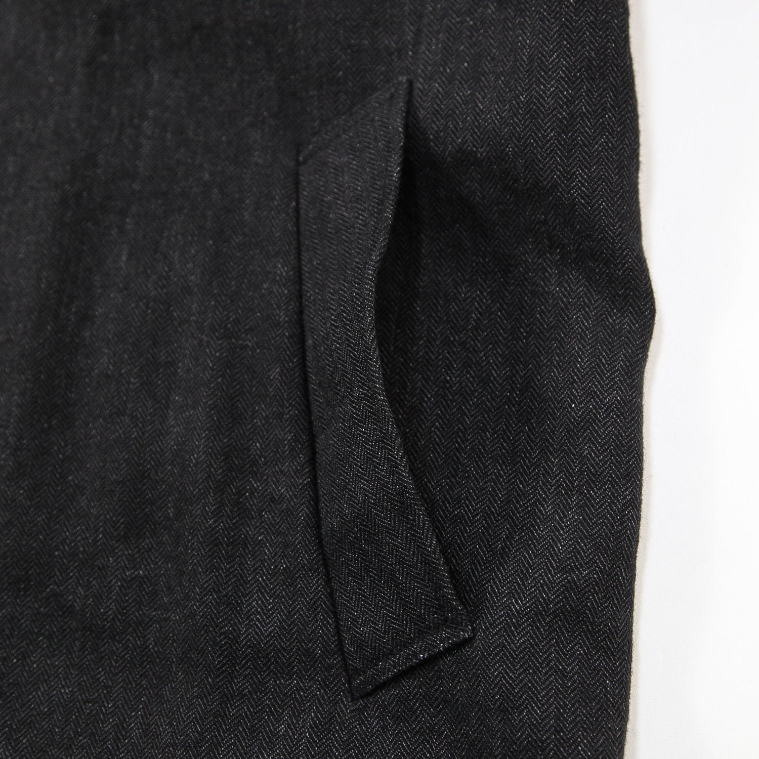色も退色した様な色合いのタテリネンとケンピライクな表情のヨコウールで織り上げているので、深みある絶妙な黒に仕上がってます。