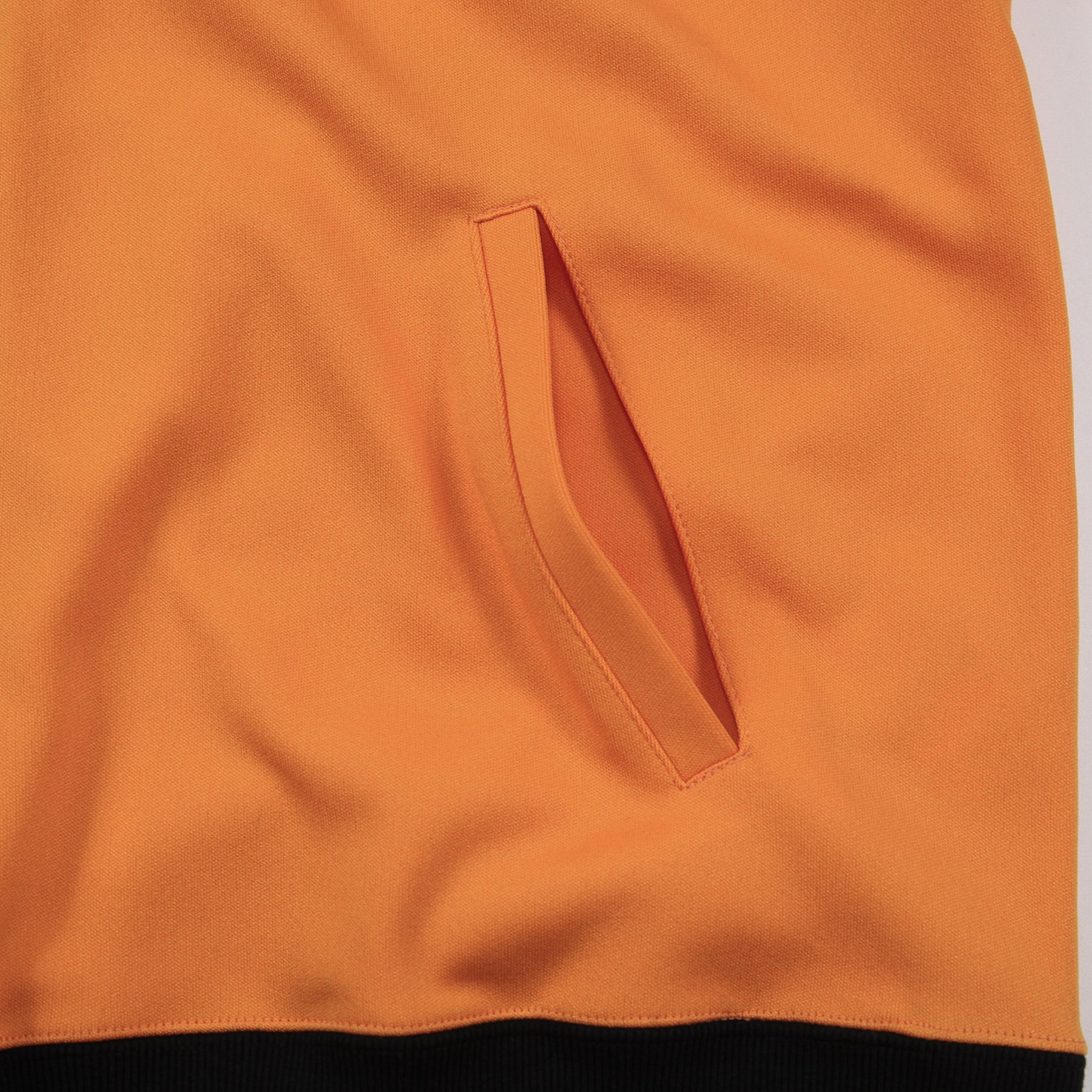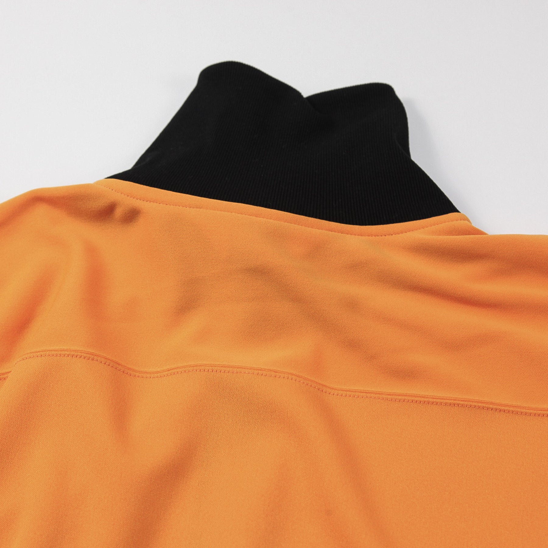どの角度から見ても美しくなるように切り替え位置を計算しており、鮮やかなオレンジボディに襟と袖、裾リブのコントラストが綺麗な一品です。