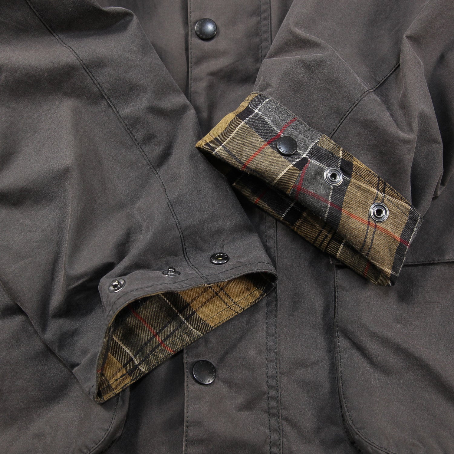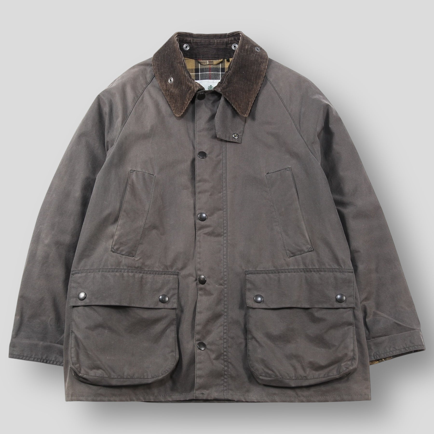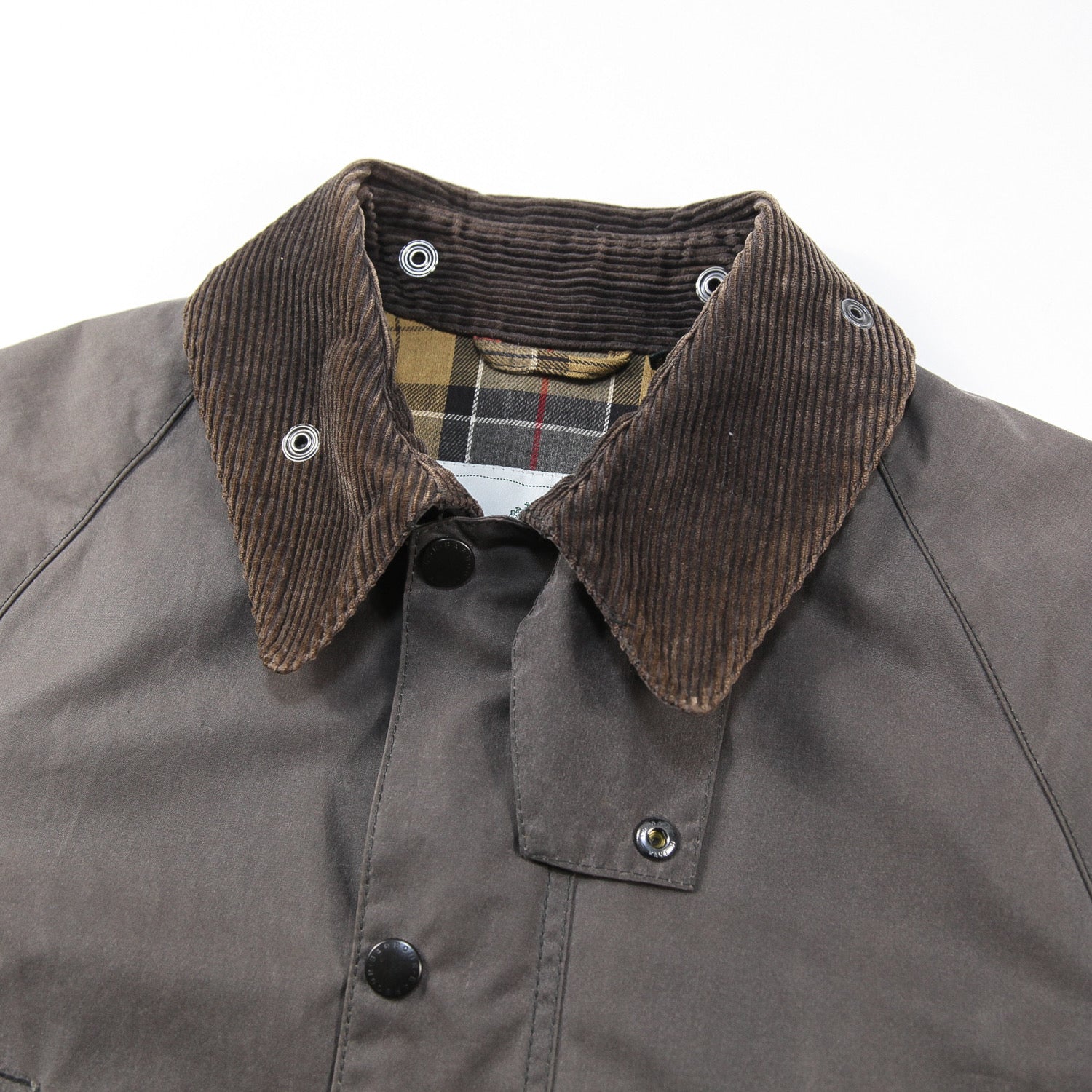 ショルダー部分はきれいなシルエットを演出するラグランスリーブ仕様で、裏地にはバブアーの伝統の証であるハウスタータンチェックがあしらわれています。