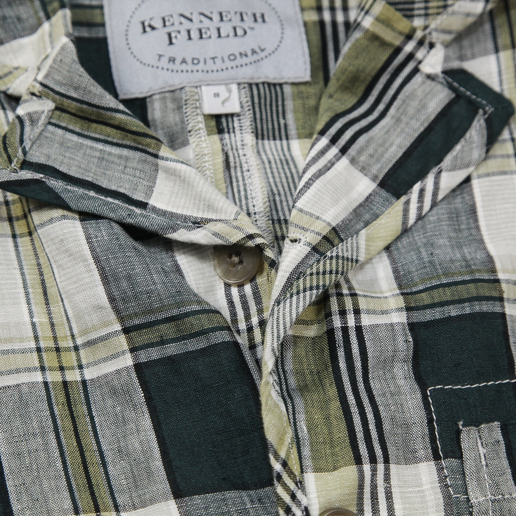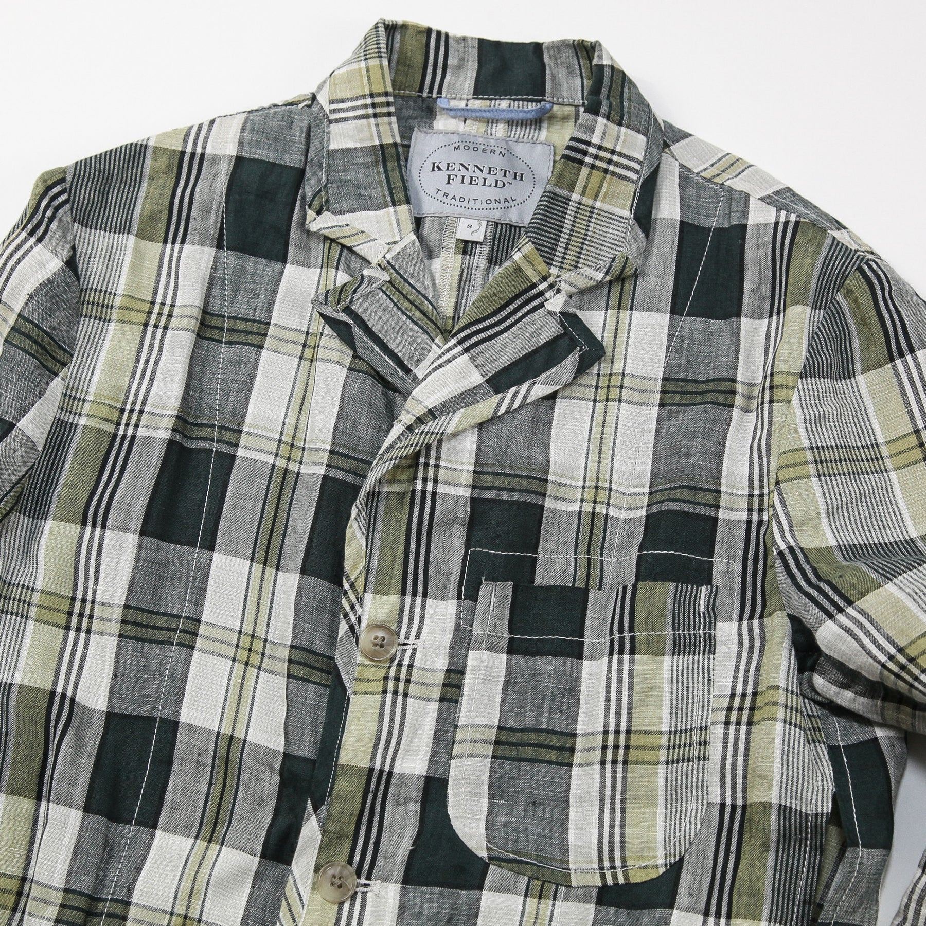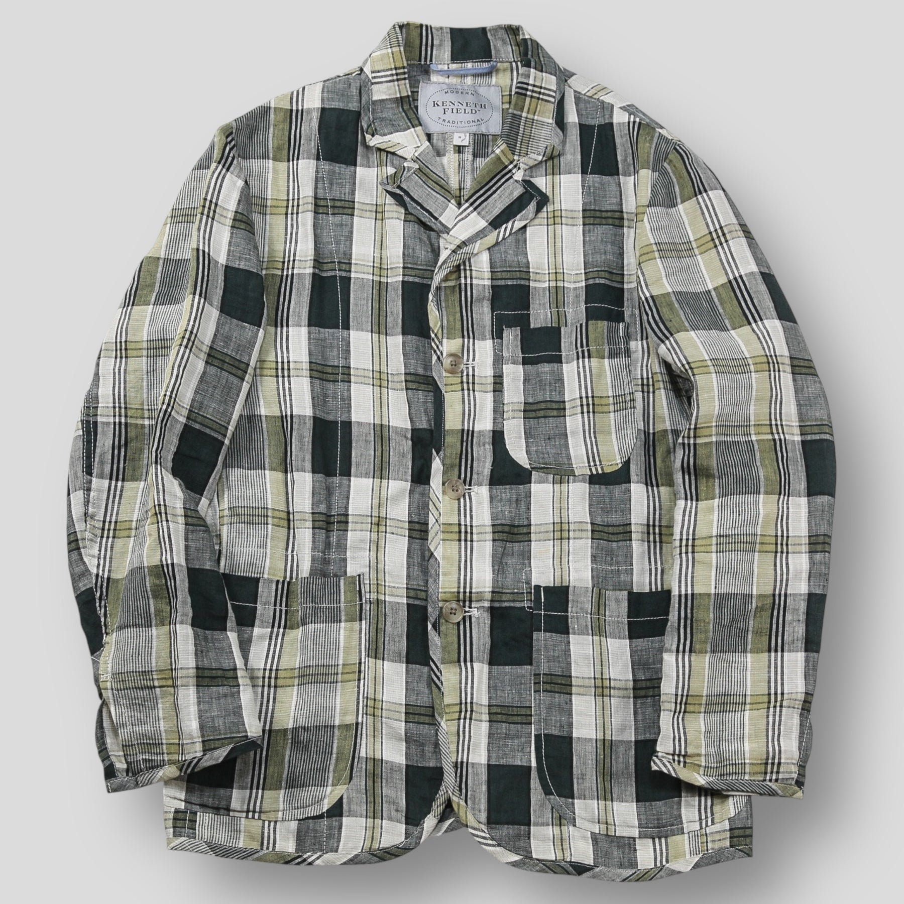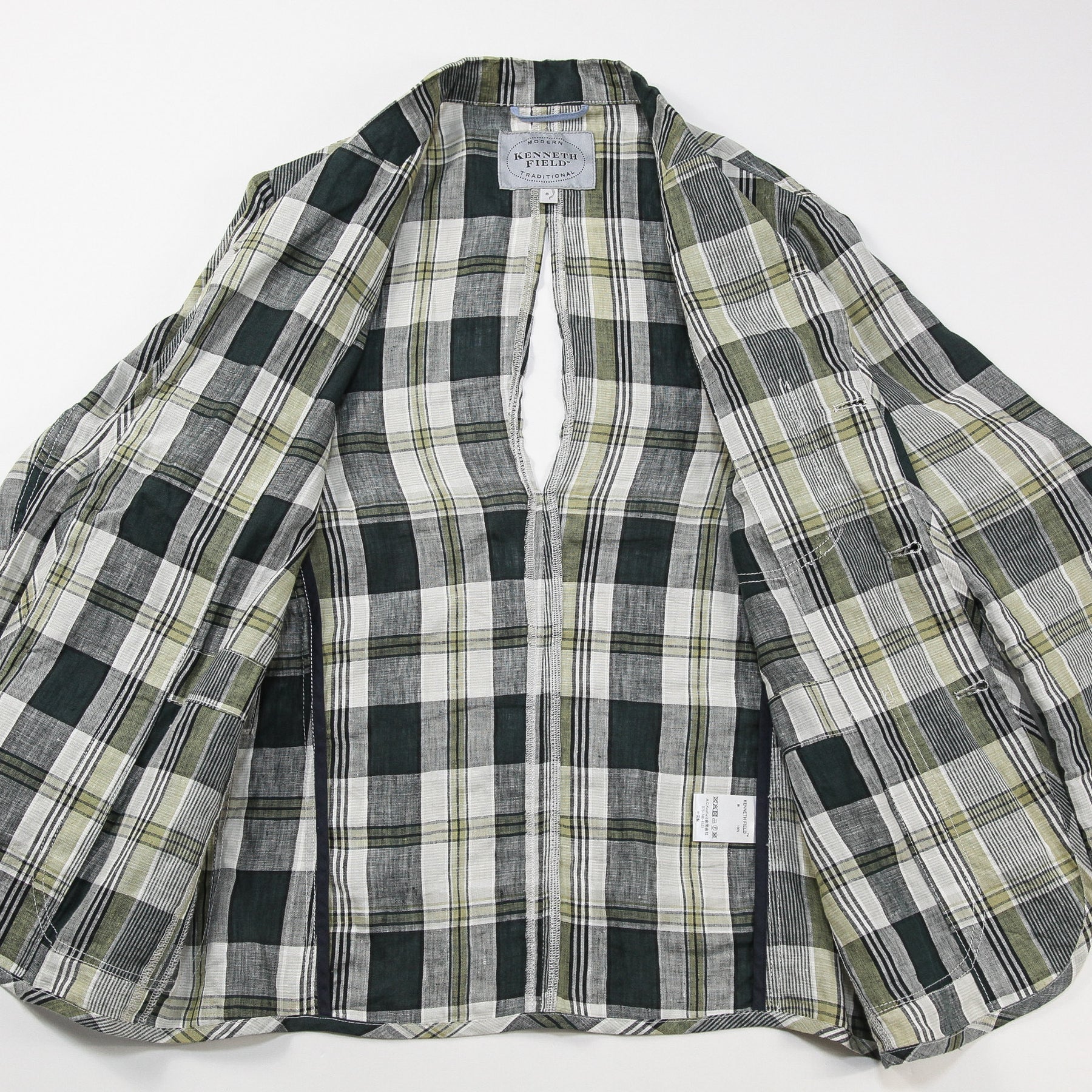 上質なリネン素材を使用した、軽快なマドラスチェック柄のジャケット。