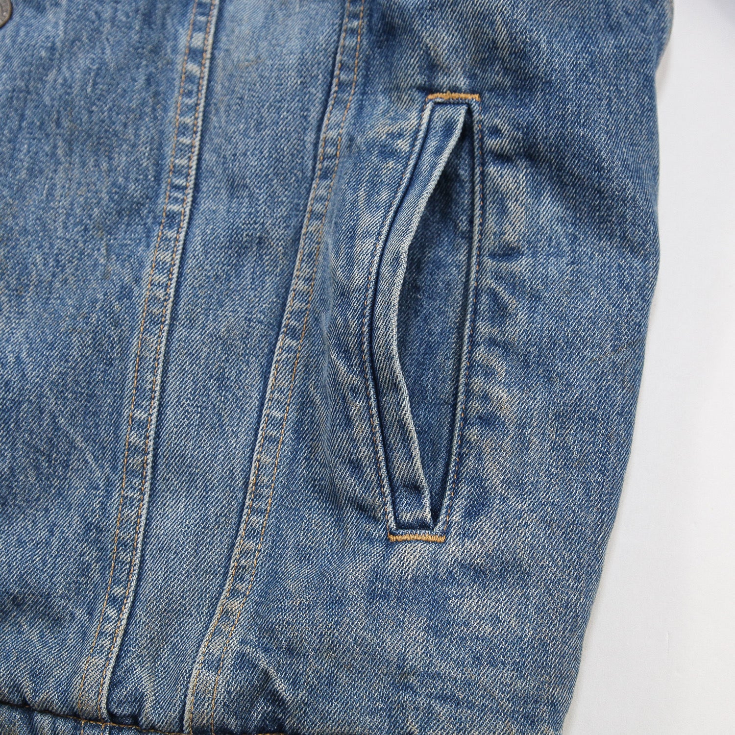 耐久性のあるコーンデニムを使用し、裏地にはふわふわのシェルパをあしらい保温性を高めています。