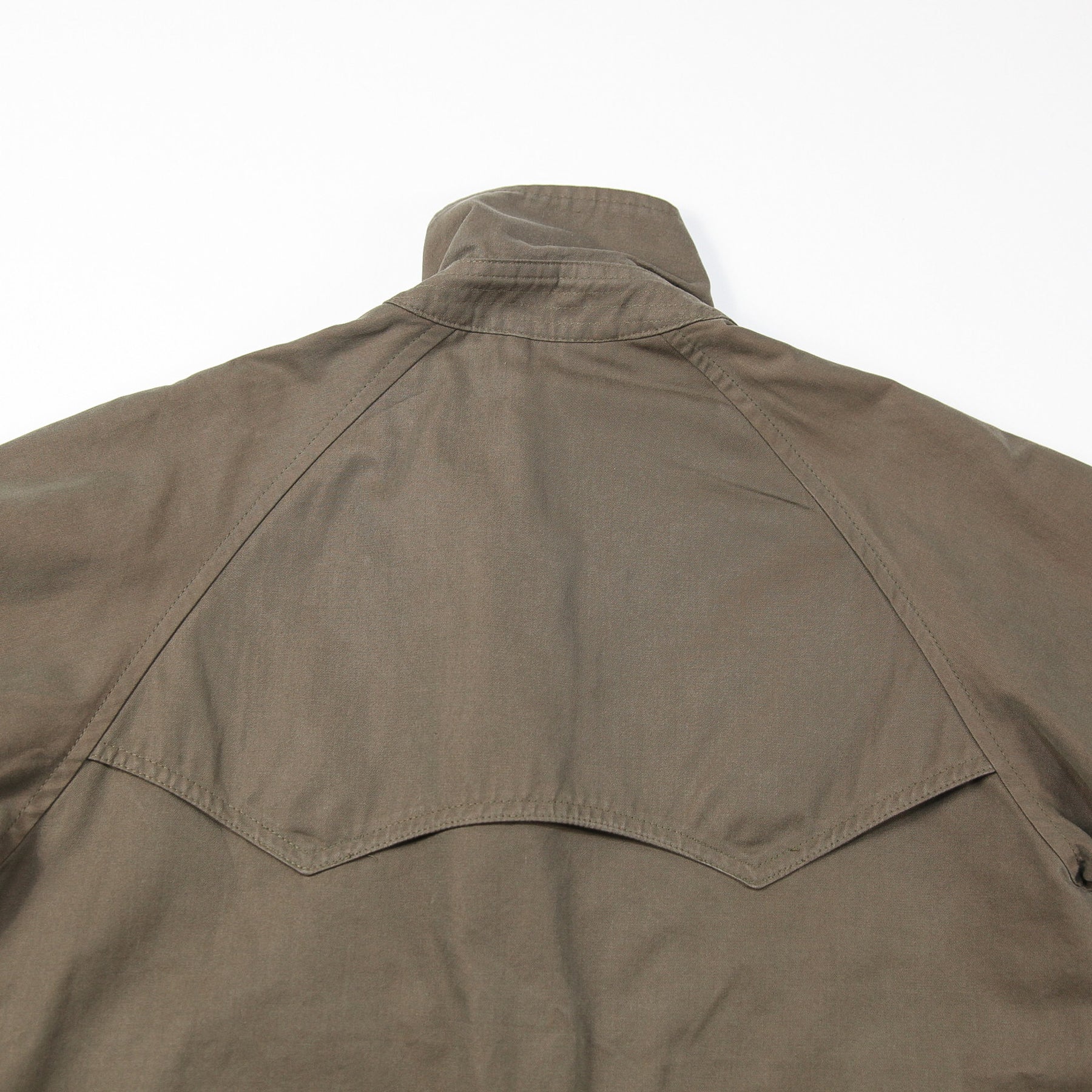 Baracutaの名作G-9をベースにしたクラシックなハリントンジャケットで、あえて逆さまに取り付けられたフラップポケットや襟裏のコーデュロイ、MRS社製のジッパーなど、細部まで拘り抜かれた仕上がり。