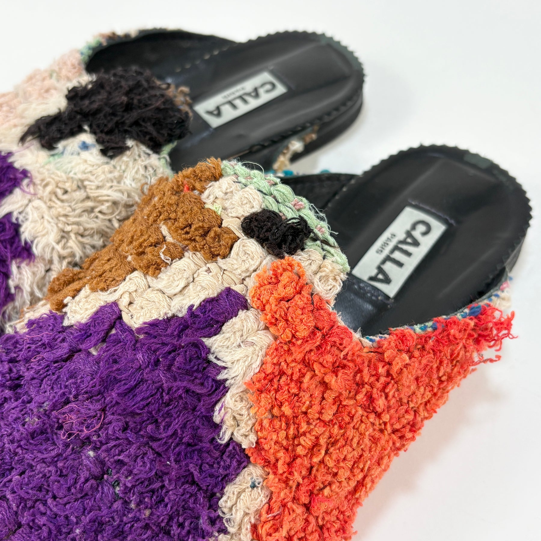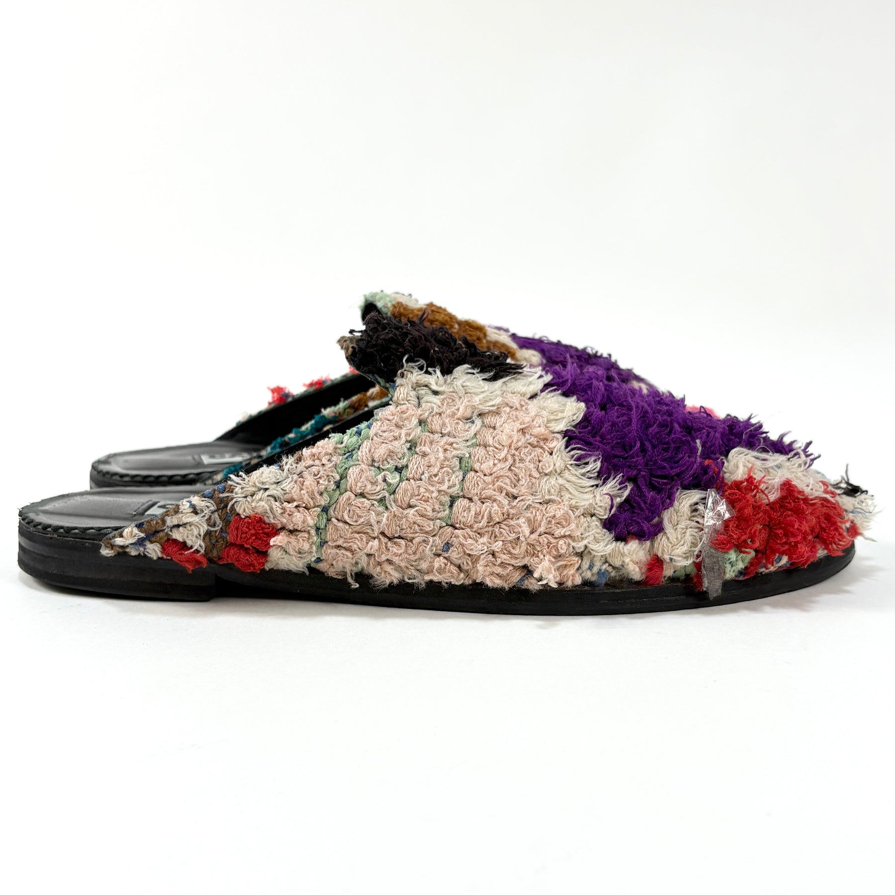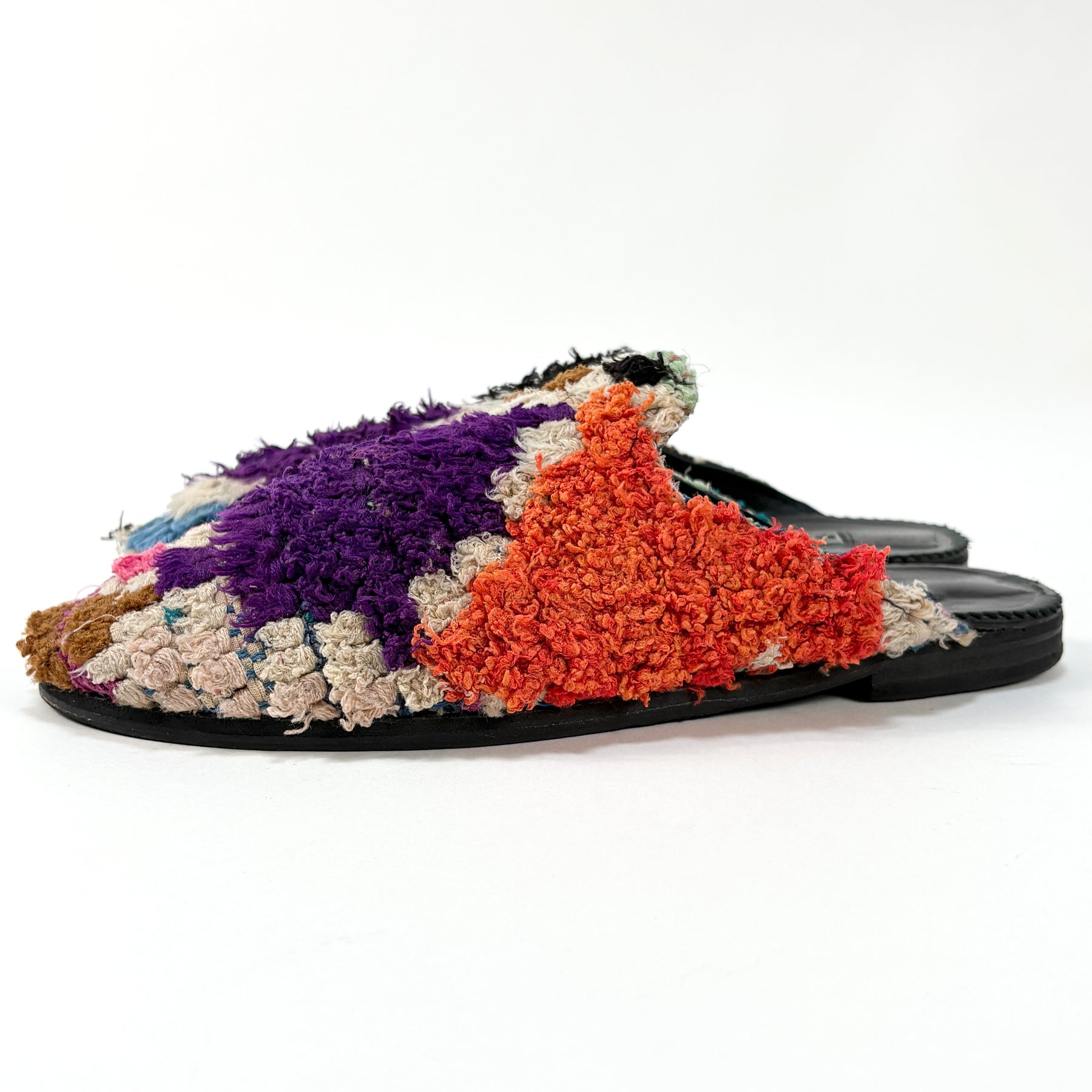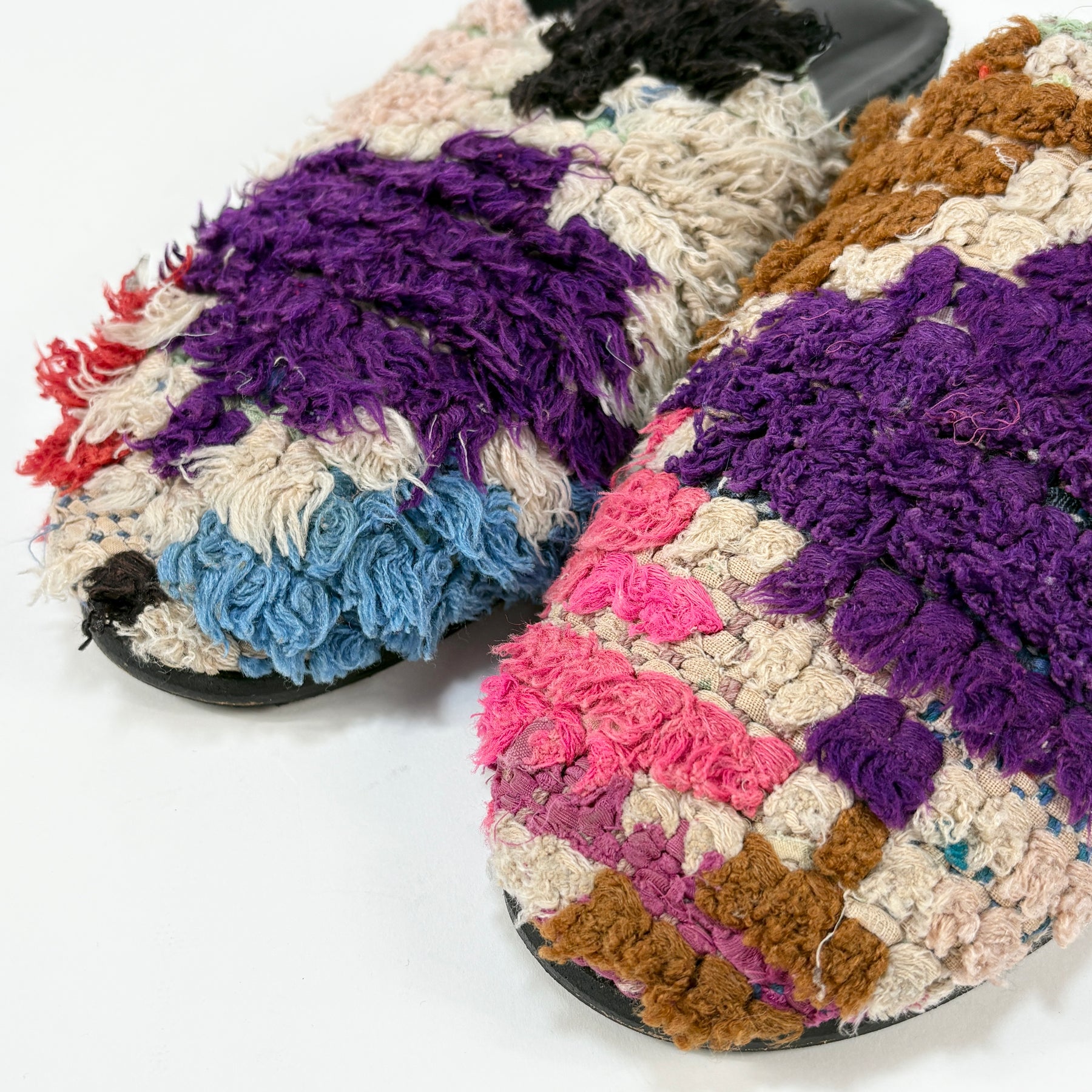 ヴィンテージのラグを再加工している為同じものが無く、全てアソートで仕上げられた一足です。