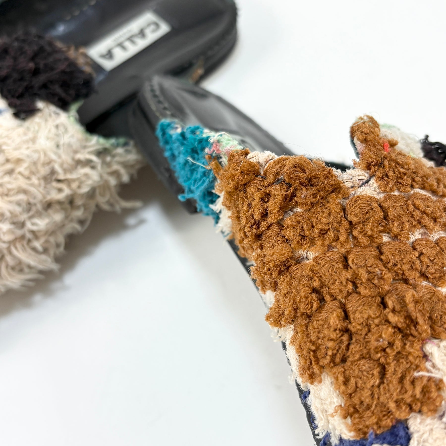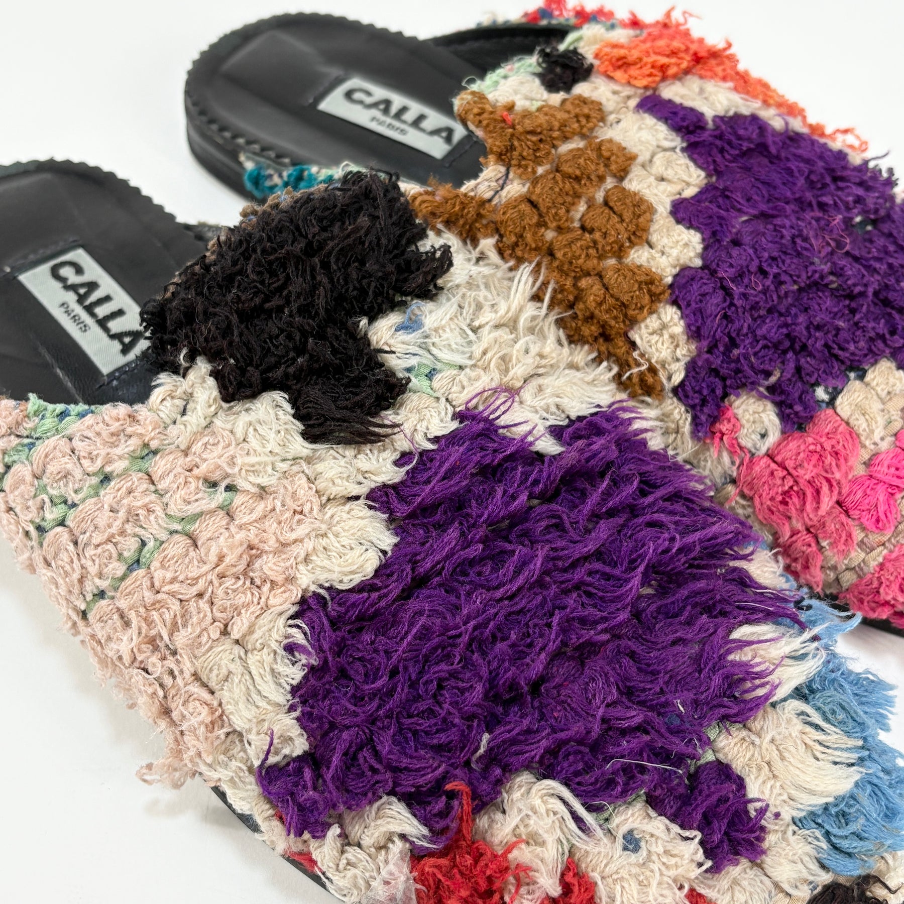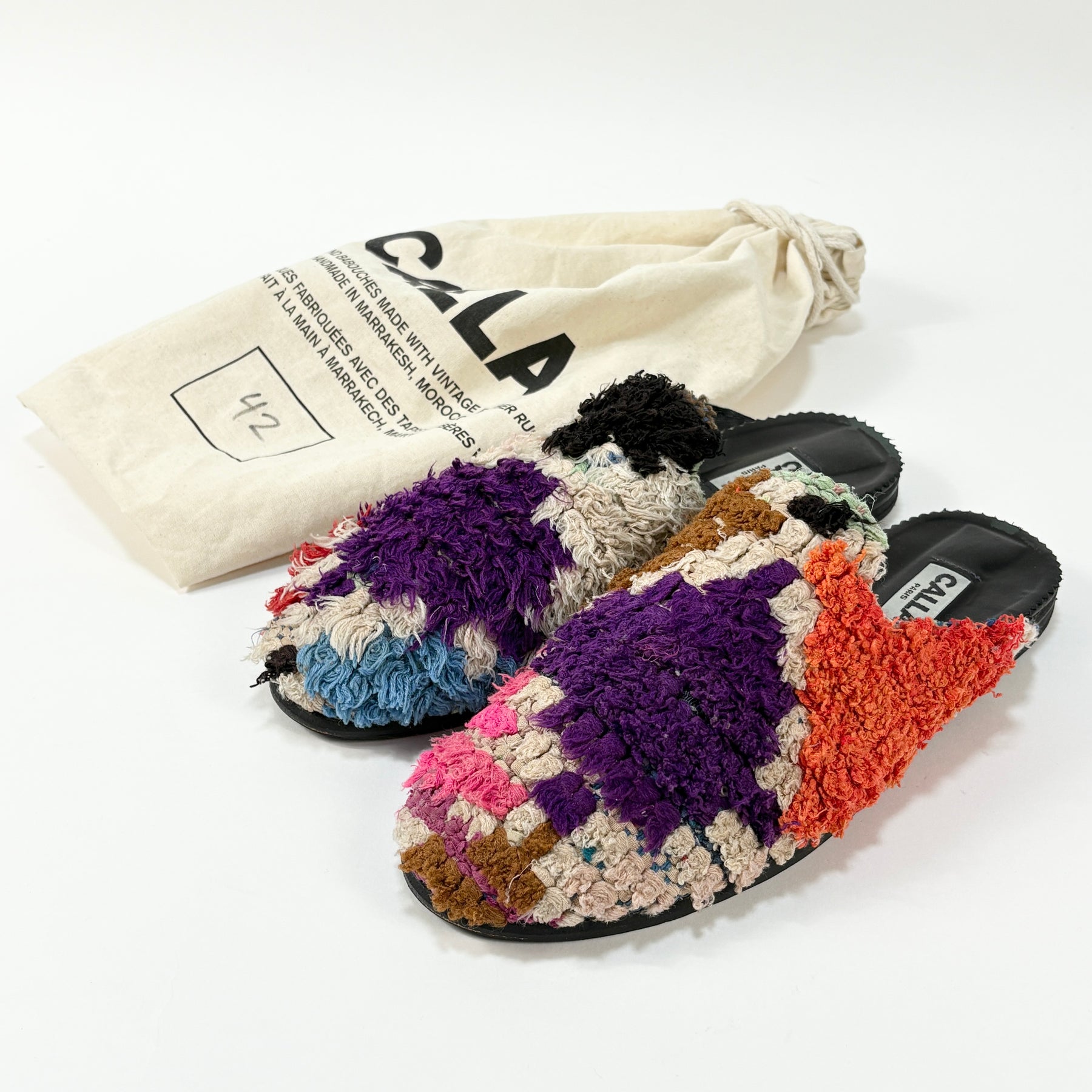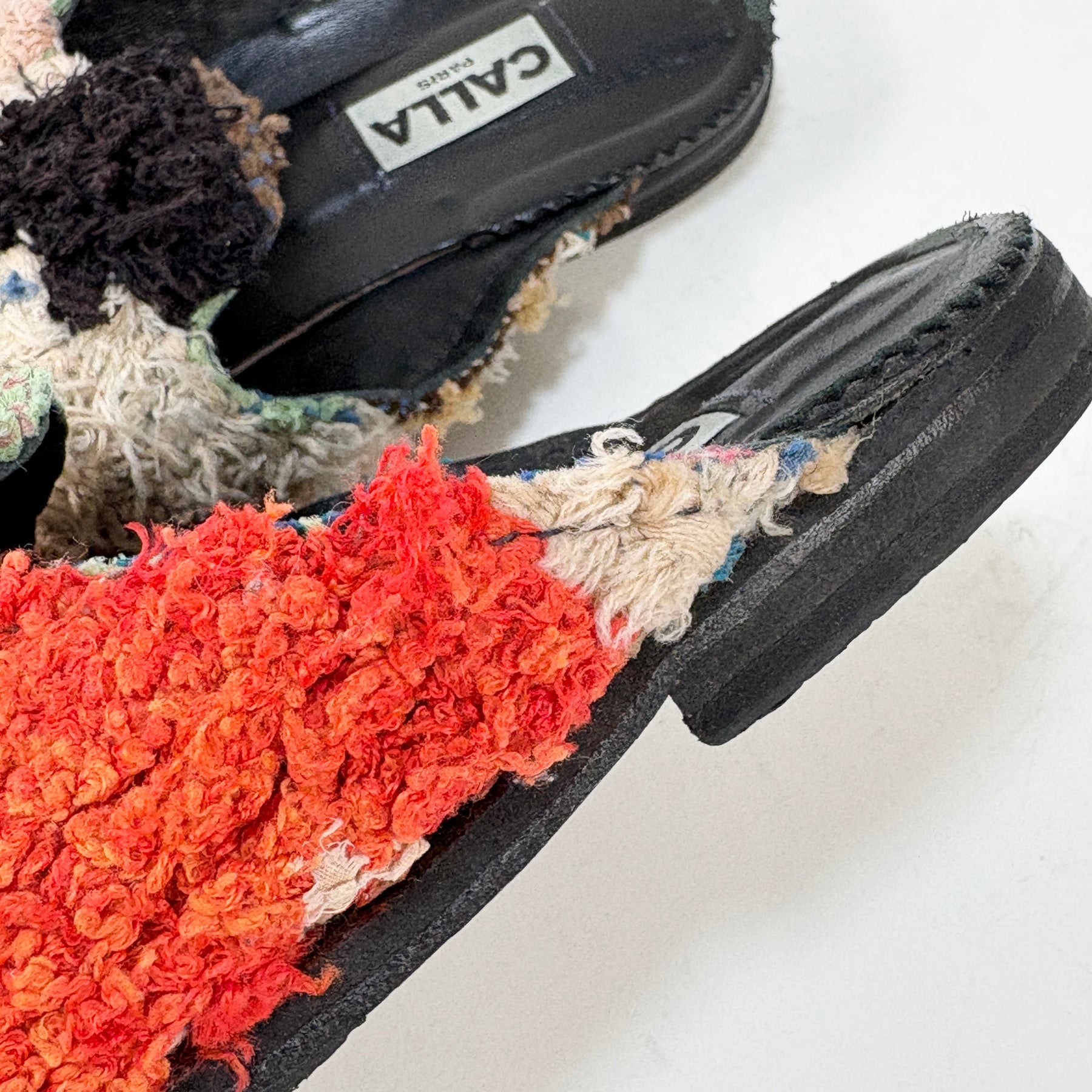 ヴィンテージのラグを再加工している為同じものが無く、全てアソートで仕上げられた一足です。