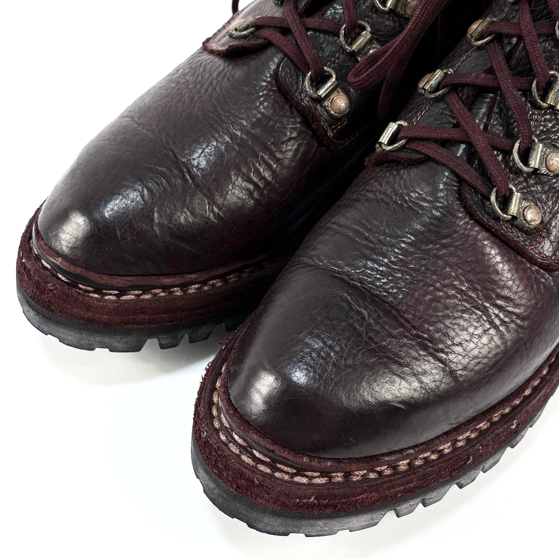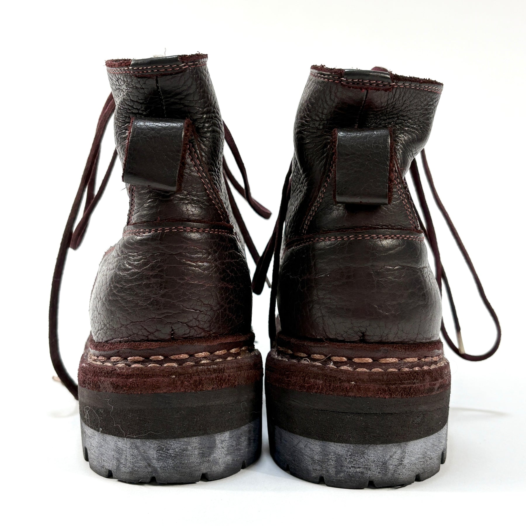 イタリア産の上質なバイソンフルグレインレザーを使用し、ソールにはVibram社製のラバーソールを採用。シボ感のある厚い質感が特徴的で、高級感のある仕上がり。