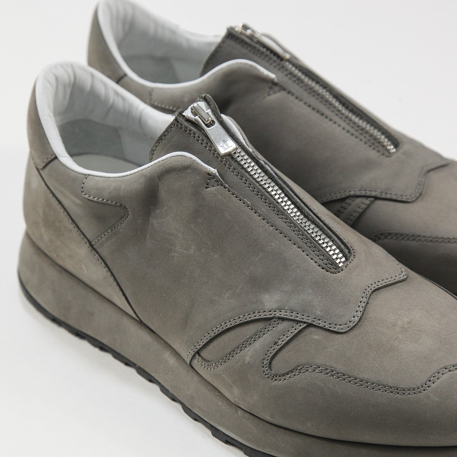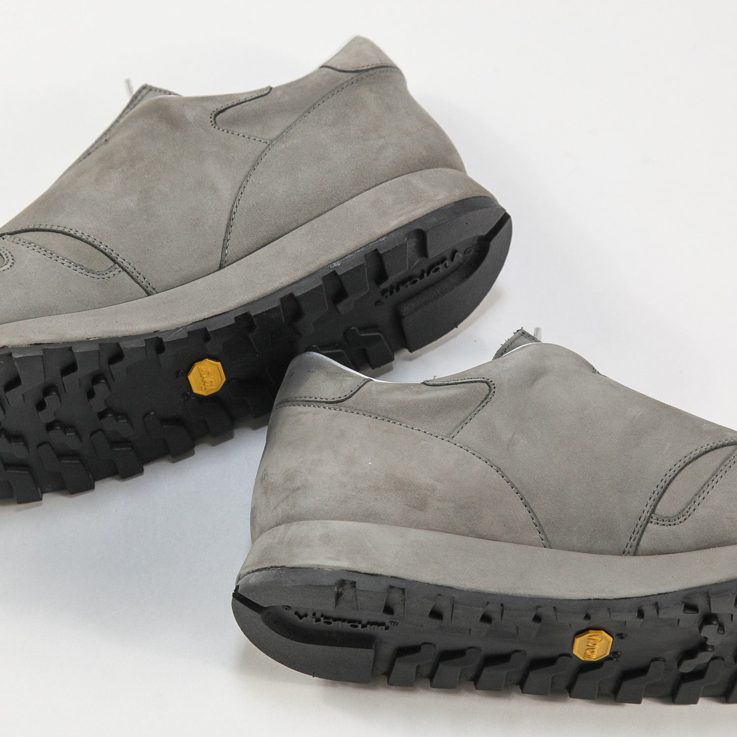 センターにYKK エクセラファスナー、アウトソールにはビブラムソールを使用しており、スニーカーでもない革靴でもないプロダクトを体現した一足。