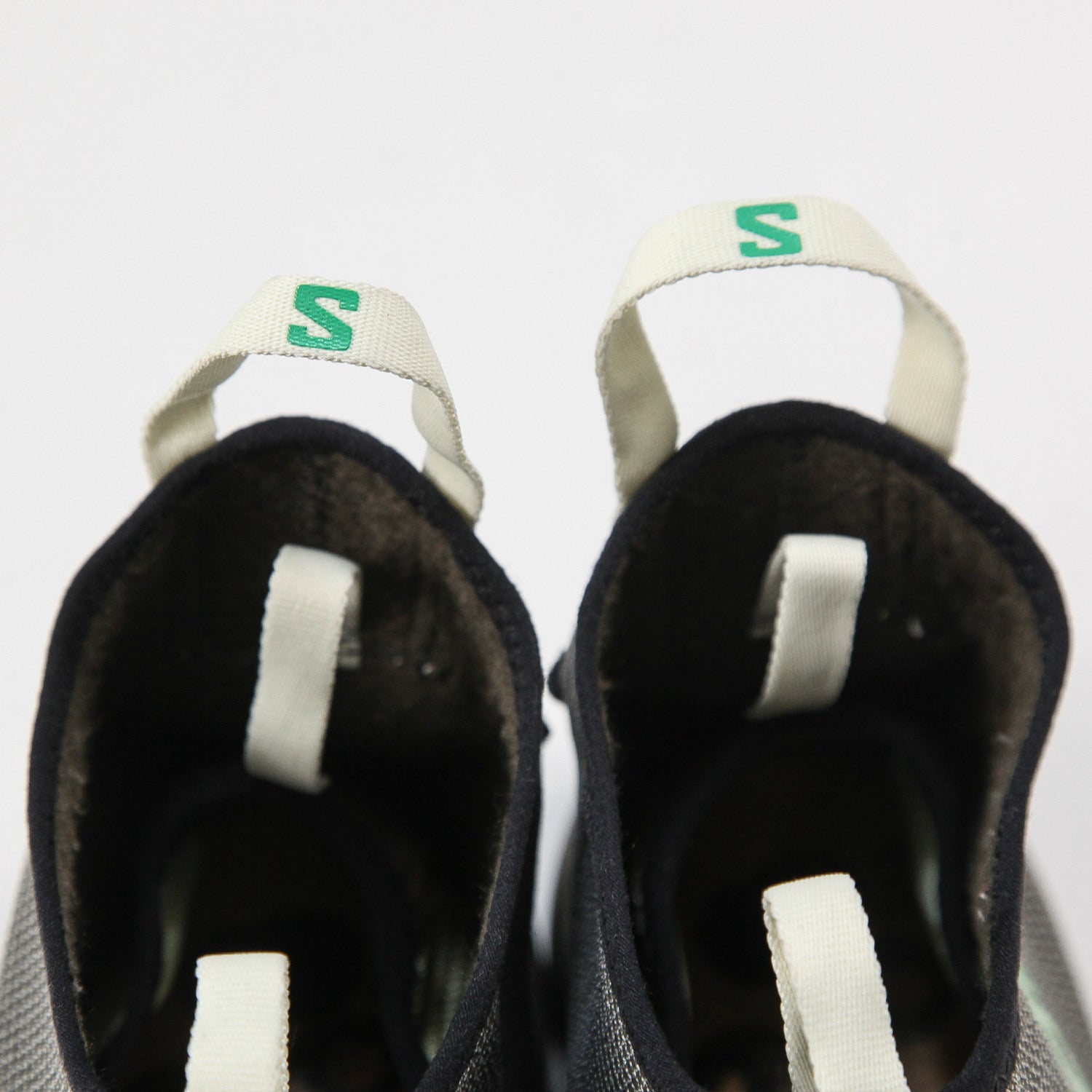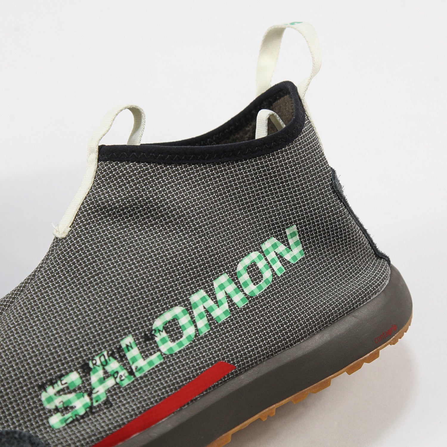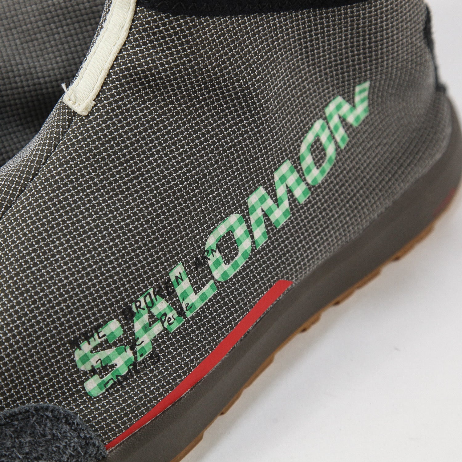 カラーは“Wren/Black/Vanilla Ice”という落ち着いたトーンを用いながらも、アッパーサイドにプリントされたブロックチェック柄の“Salomon”のロゴがほど良いアクセントになっています。