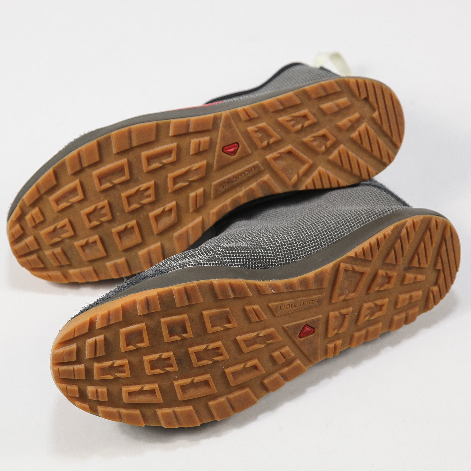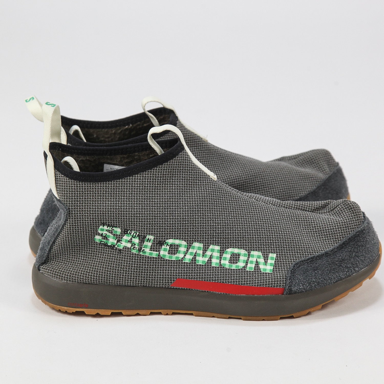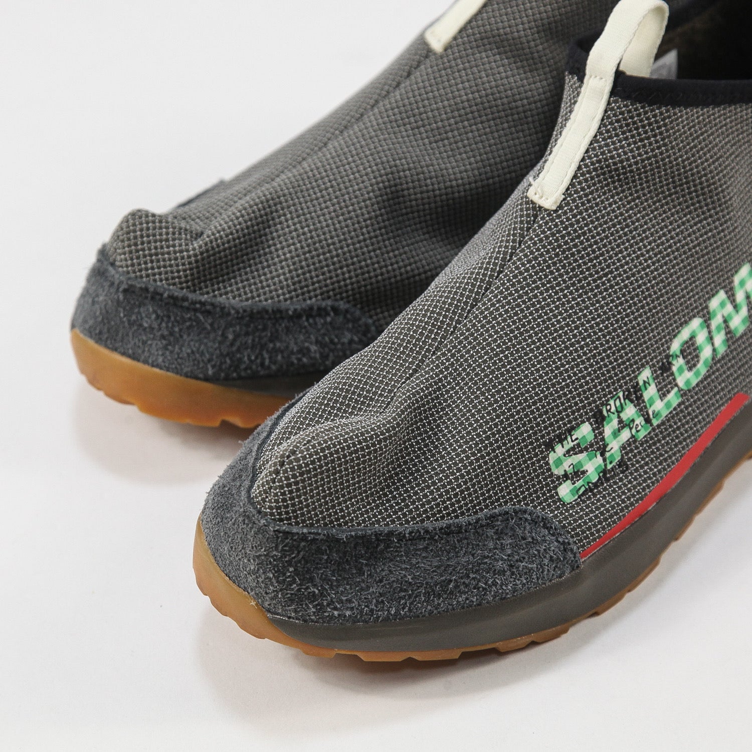 カラーは“Wren/Black/Vanilla Ice”という落ち着いたトーンを用いながらも、アッパーサイドにプリントされたブロックチェック柄の“Salomon”のロゴがほど良いアクセントになっています。