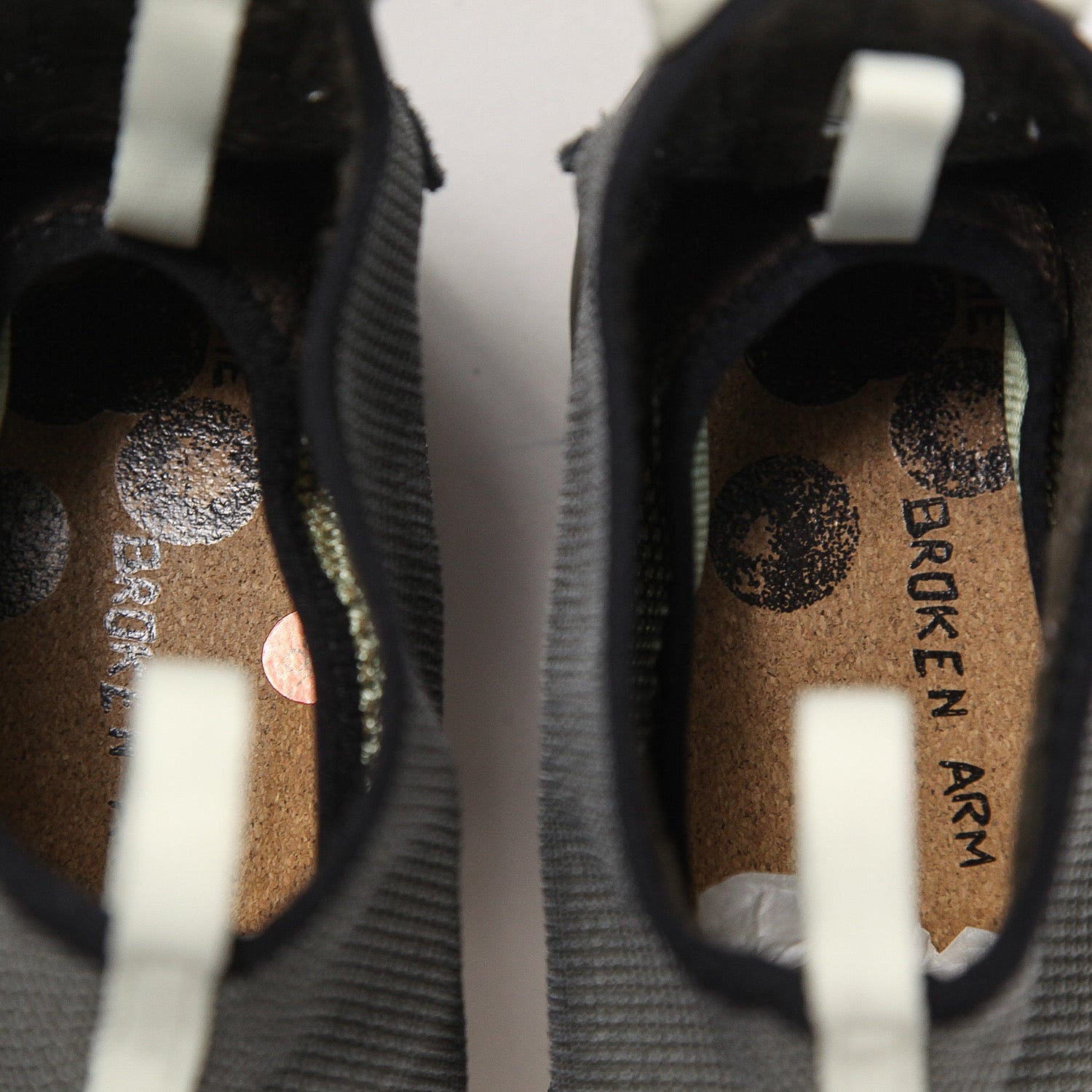 クロスカントリースキー用にデザインされたCoverbootをベースに、ブドウ園で働く農家の人々が着用する靴にヒットを得て『The Broken Arm』が再構築した1足。