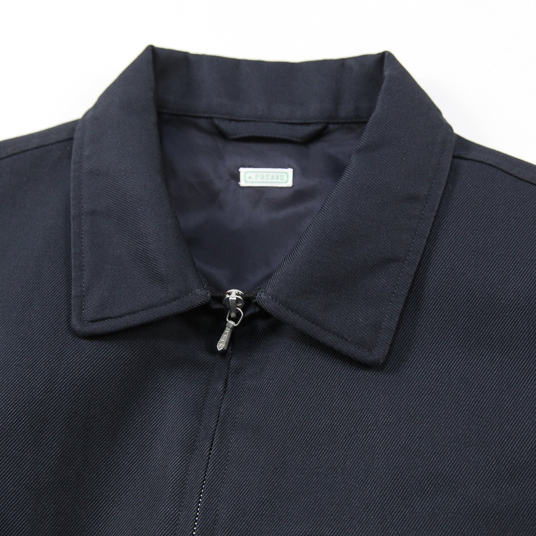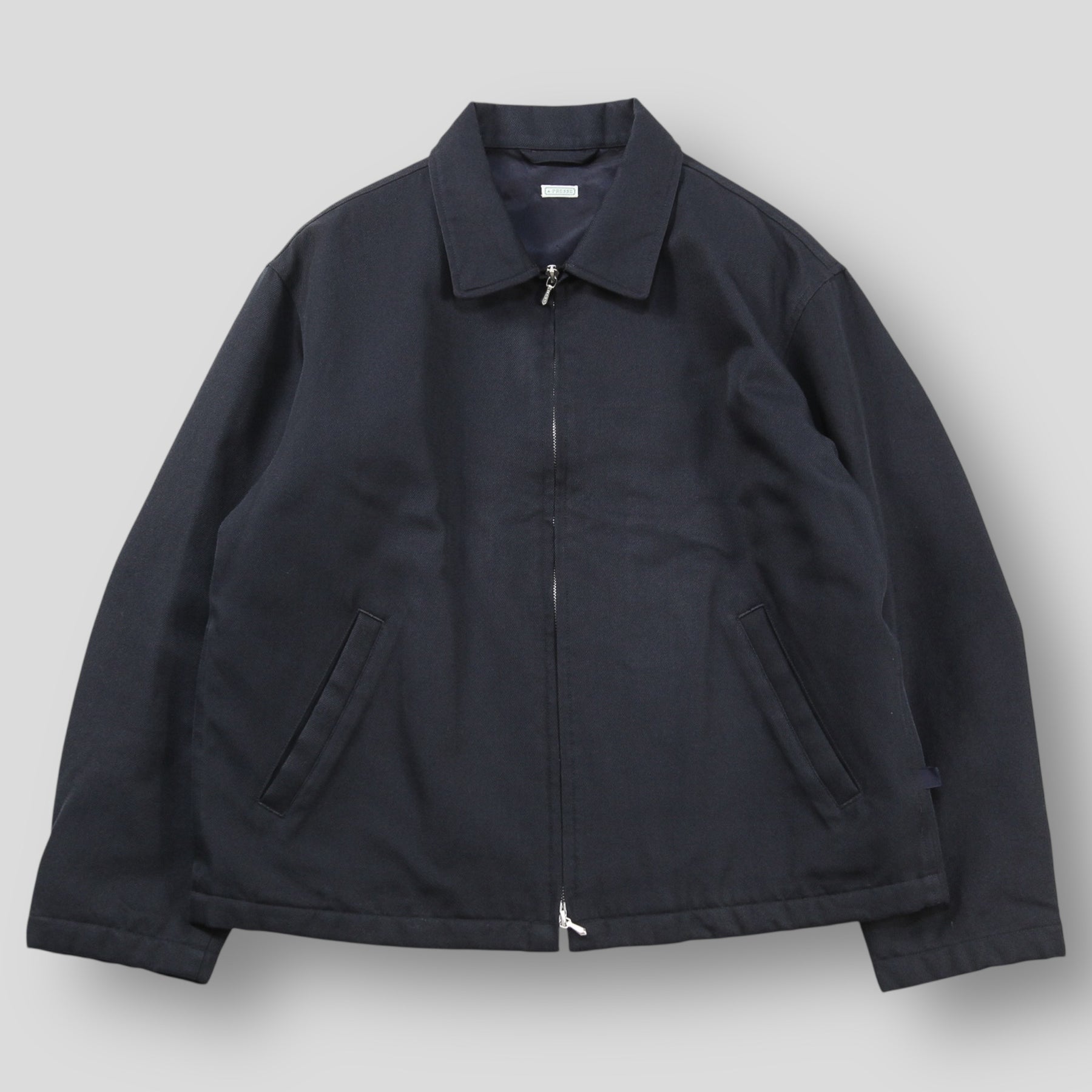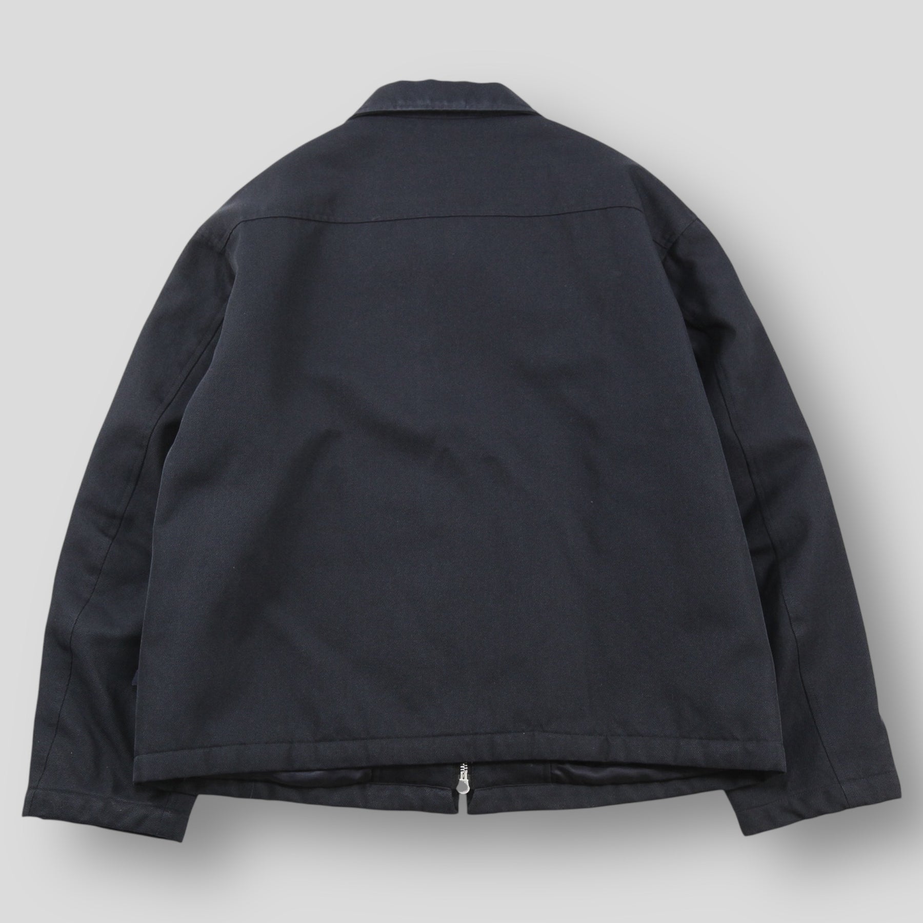 サイレントに輝くネイビーのピスタグをセットした、ダブルジップアップ仕様のワークジャケット。