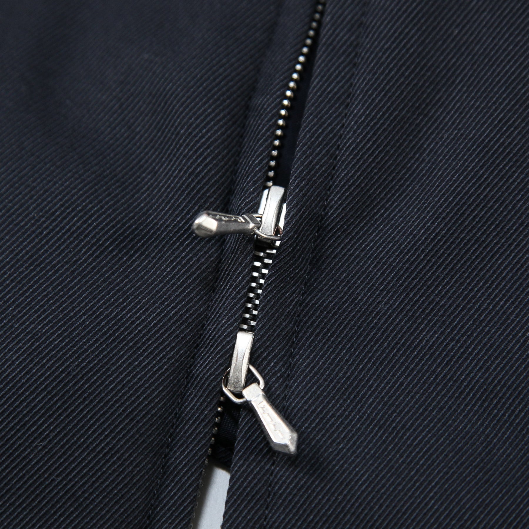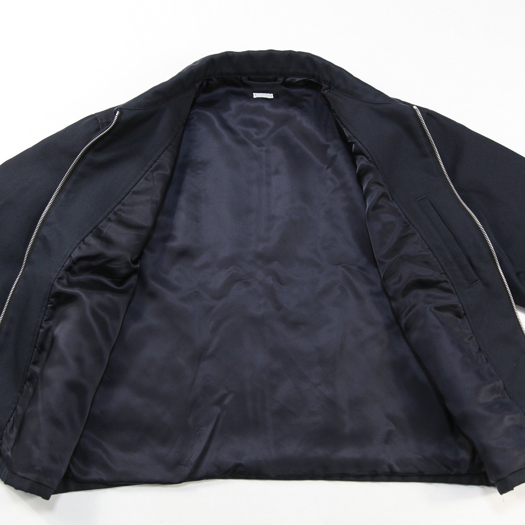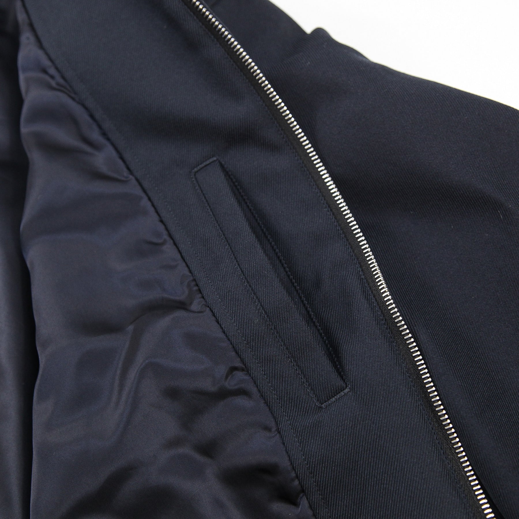 サイレントに輝くネイビーのピスタグをセットした、ダブルジップアップ仕様のワークジャケット。