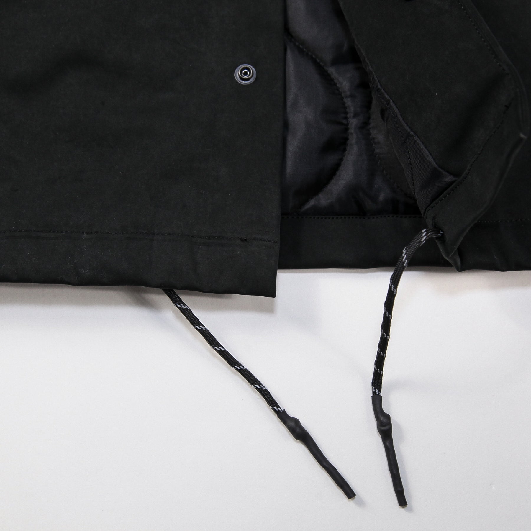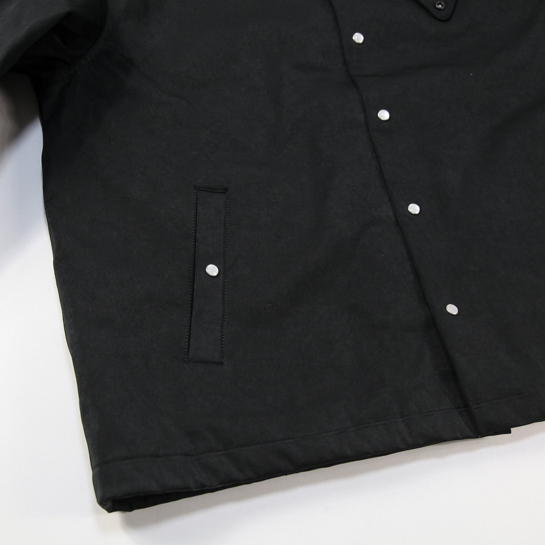 ポリエステル/ナイロン混紡のハリのある素材を使用した、コーチジャケット。