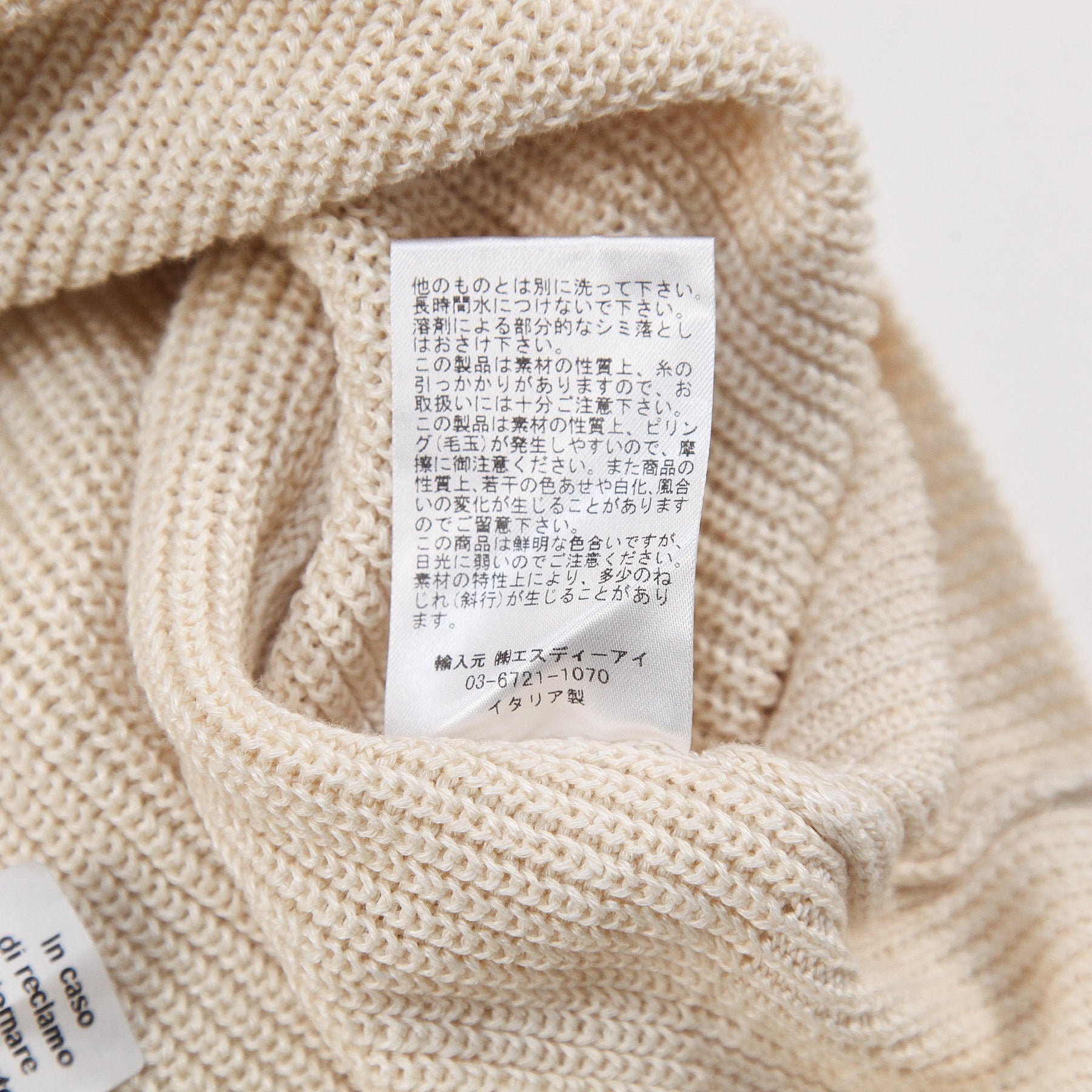 清涼感のある麻(リネン)とコットン素材を合わせた8ゲージの編地はハイゲージほどスタイリッシュな見え方にならず、ローゲージほど肉感を漂わせない使いやすい一枚です。