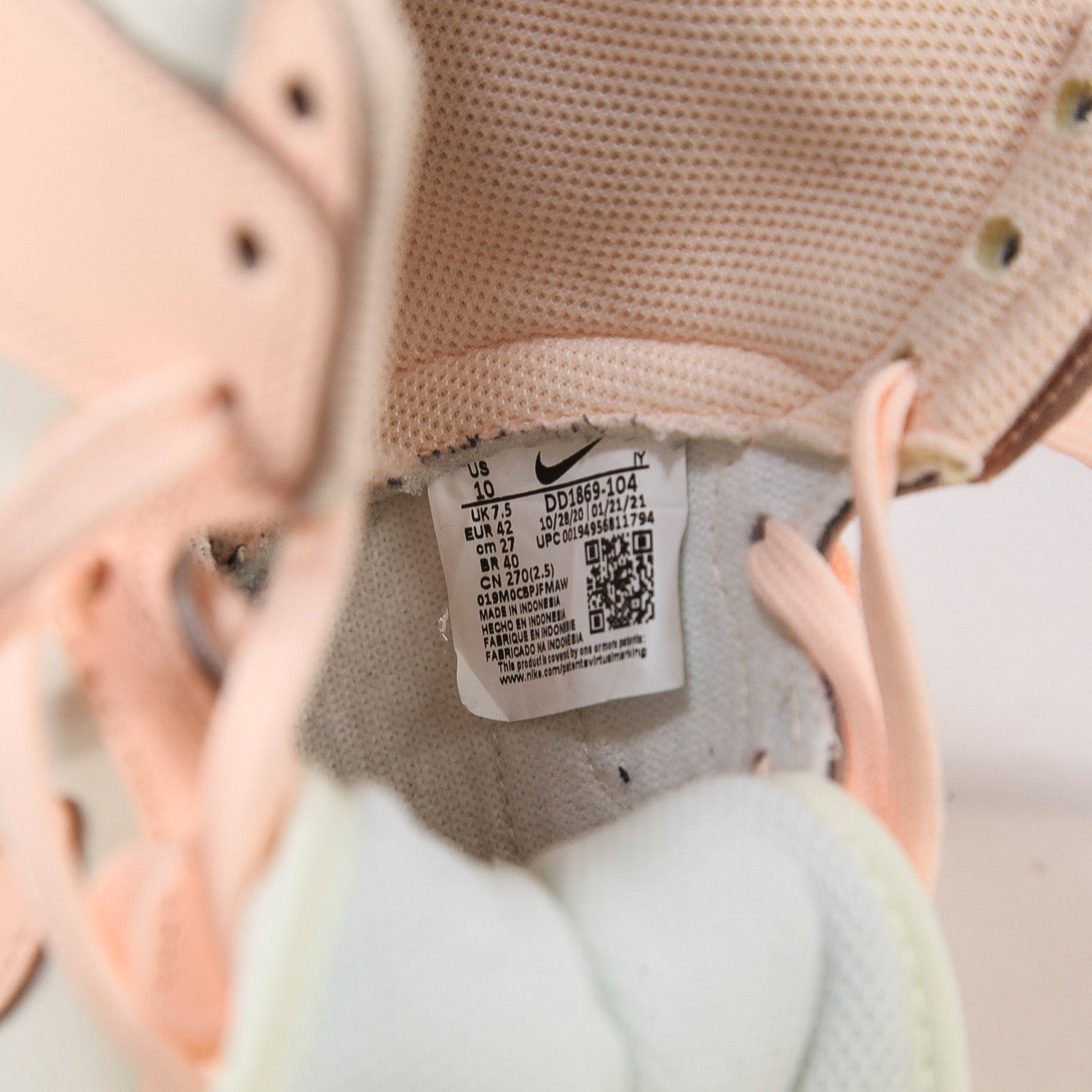 優しげなピンクをキーカラーに添え、アッパーは上品なセイルカラーでまとめ、補強パーツやスウッシュ、アウトソールは儚げな"クリムゾンティント"で彩色。